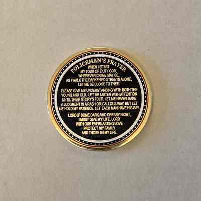 Gold and black double-sided coin commemorating the 100th anniversary of the South River Police Department, 1917 - 2017. The reverse side of the coin bears the “Policeman’s Prayer.”