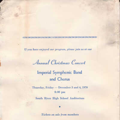 The back cover has an advertisement for the Annual Christmas Concert, Imperial Symphonic Band and Chorus, to be held on December 3 and 4, 1970.