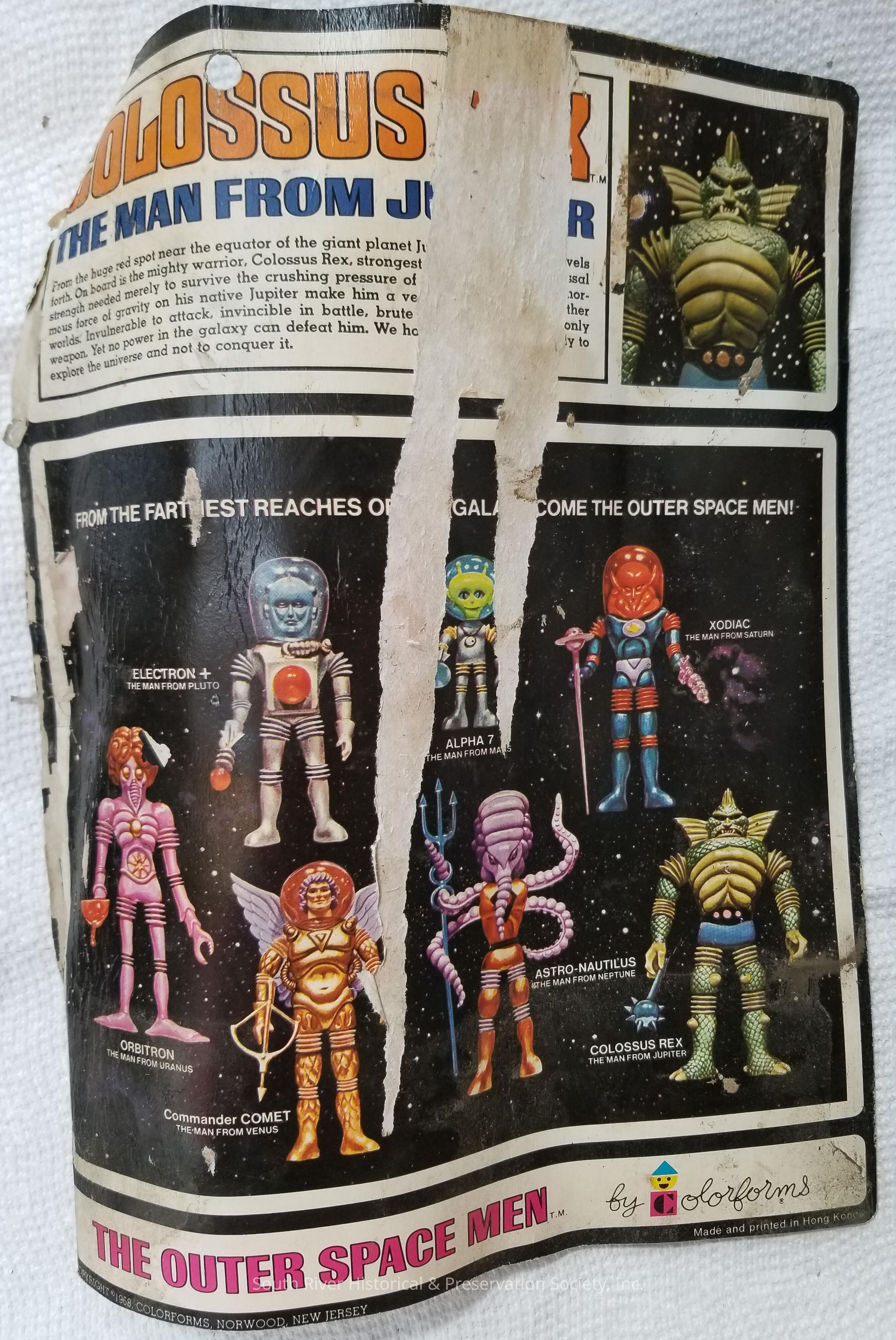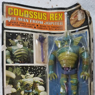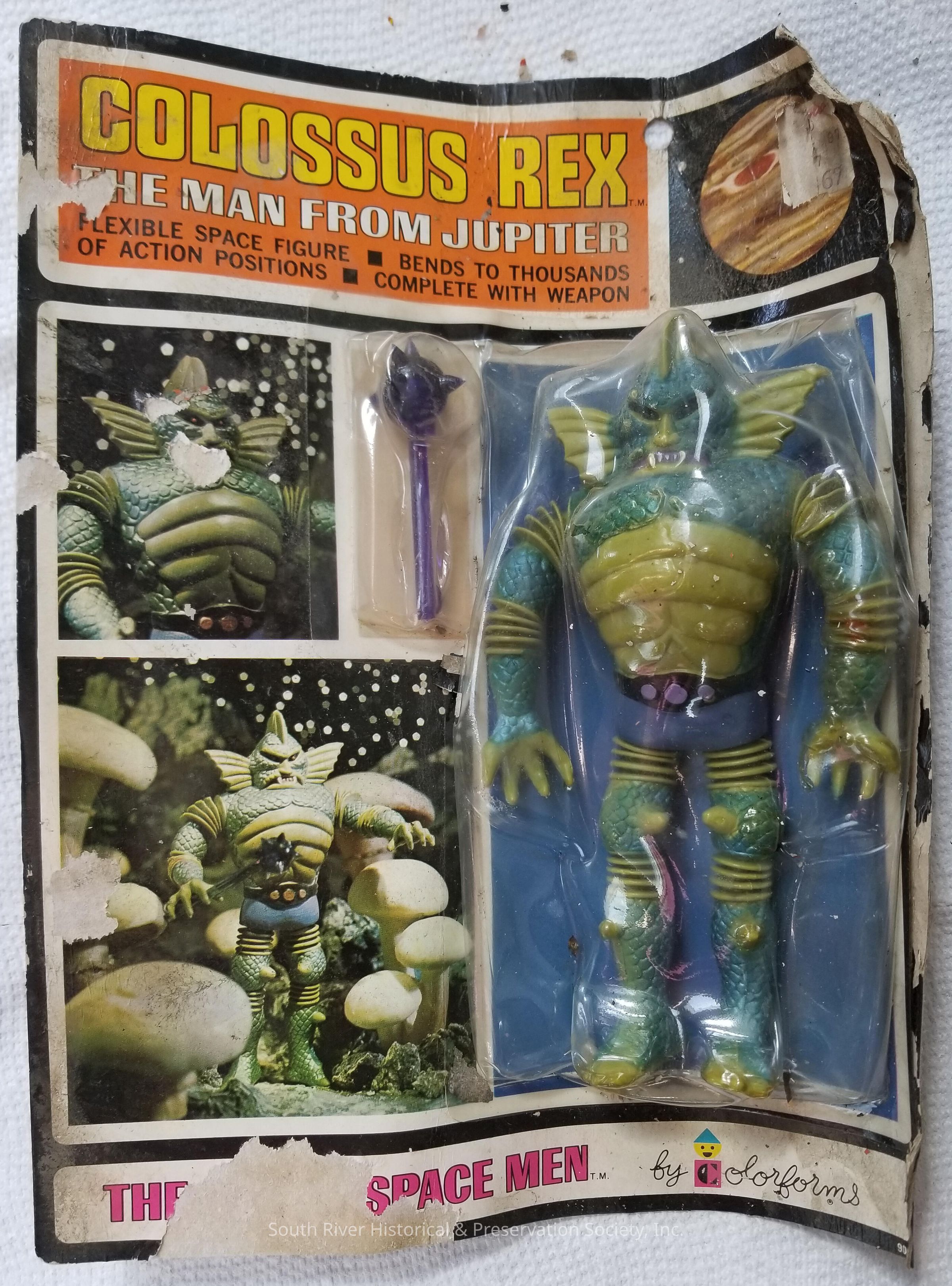 Colossus Rex, the Man from Jupiter flexible action figure with morning star weapon. One of "The Outer Space Men" collection by Colorforms.