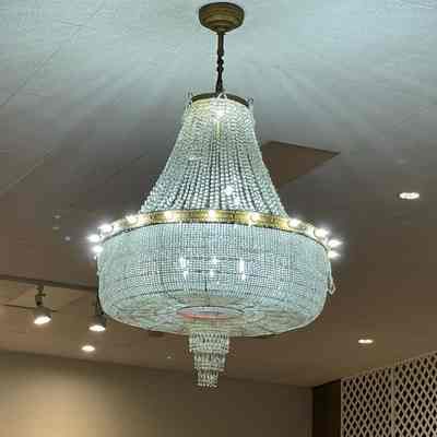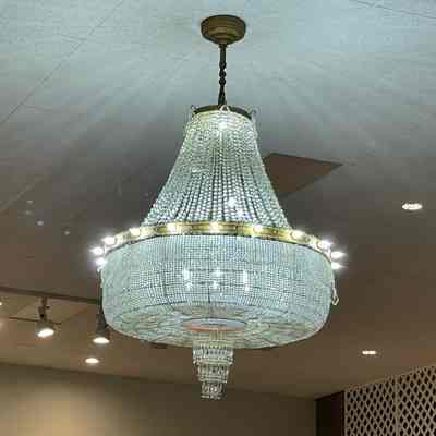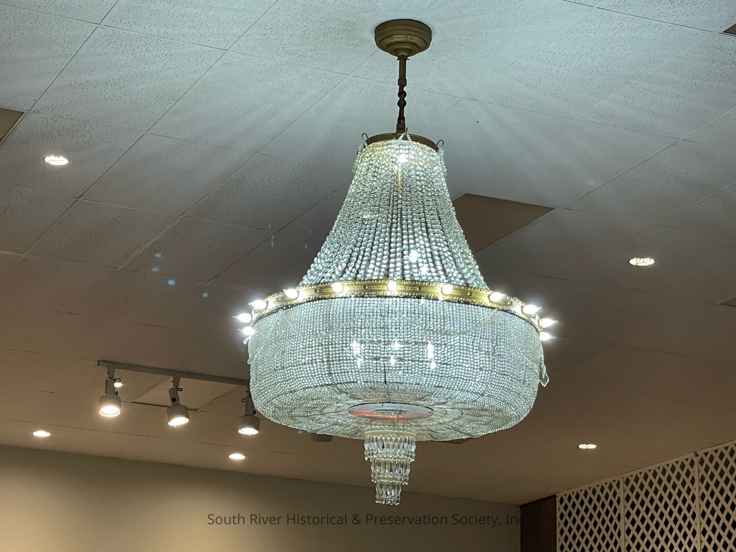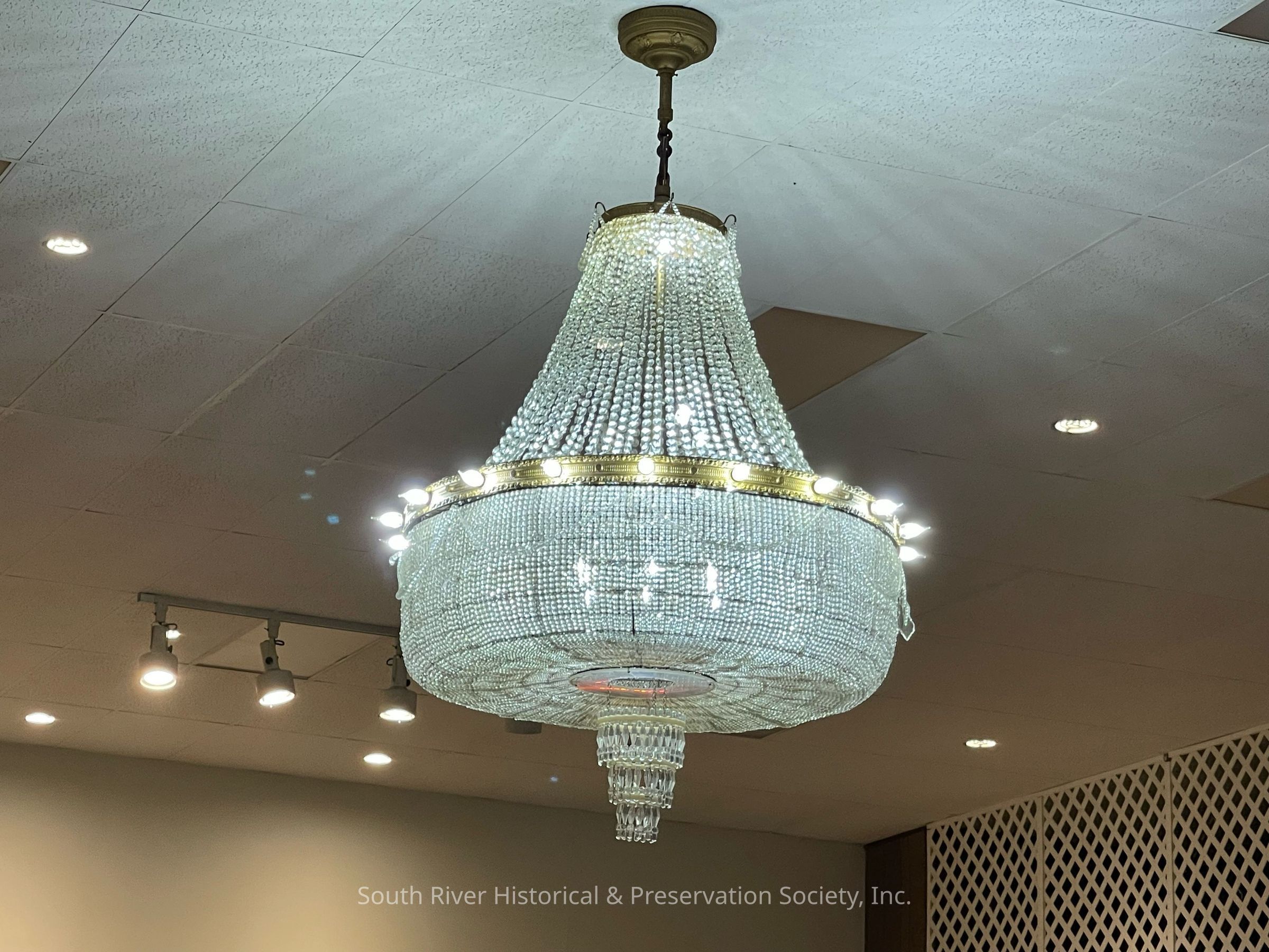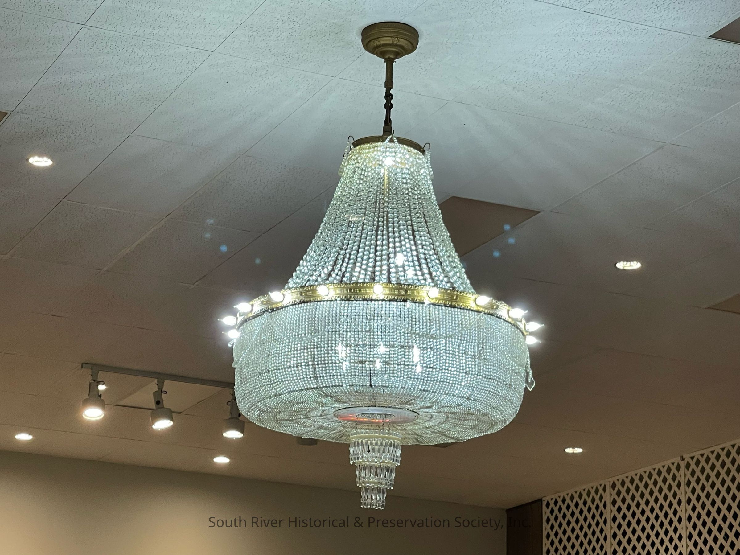 Three digital color photographs of the chandelier at the Imperial Music Center on Appleby Avenue. Originally located in the main auditorium of the Capitol Theatre on Main Street, the chandelier was salvaged after the theater closed in 1968. After being cleaned, polished, painted, and rewired, it was installed at the Imperial Music Center.Photograph Details