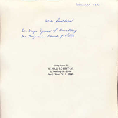 "Photography by Harold Rosenthal, 37 Washington Street, South River, NJ 08882" is stamped on the back in black ink.