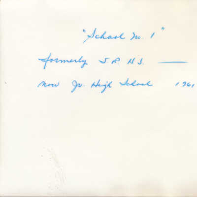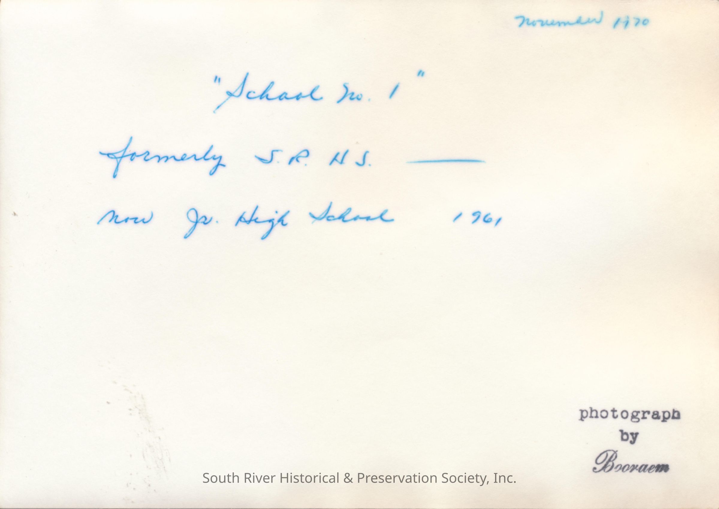 A note handwritten on the back in blue ink reads "November 1970; "School No. 1" formerly S.R.H.S - now Jr. High School 1961."