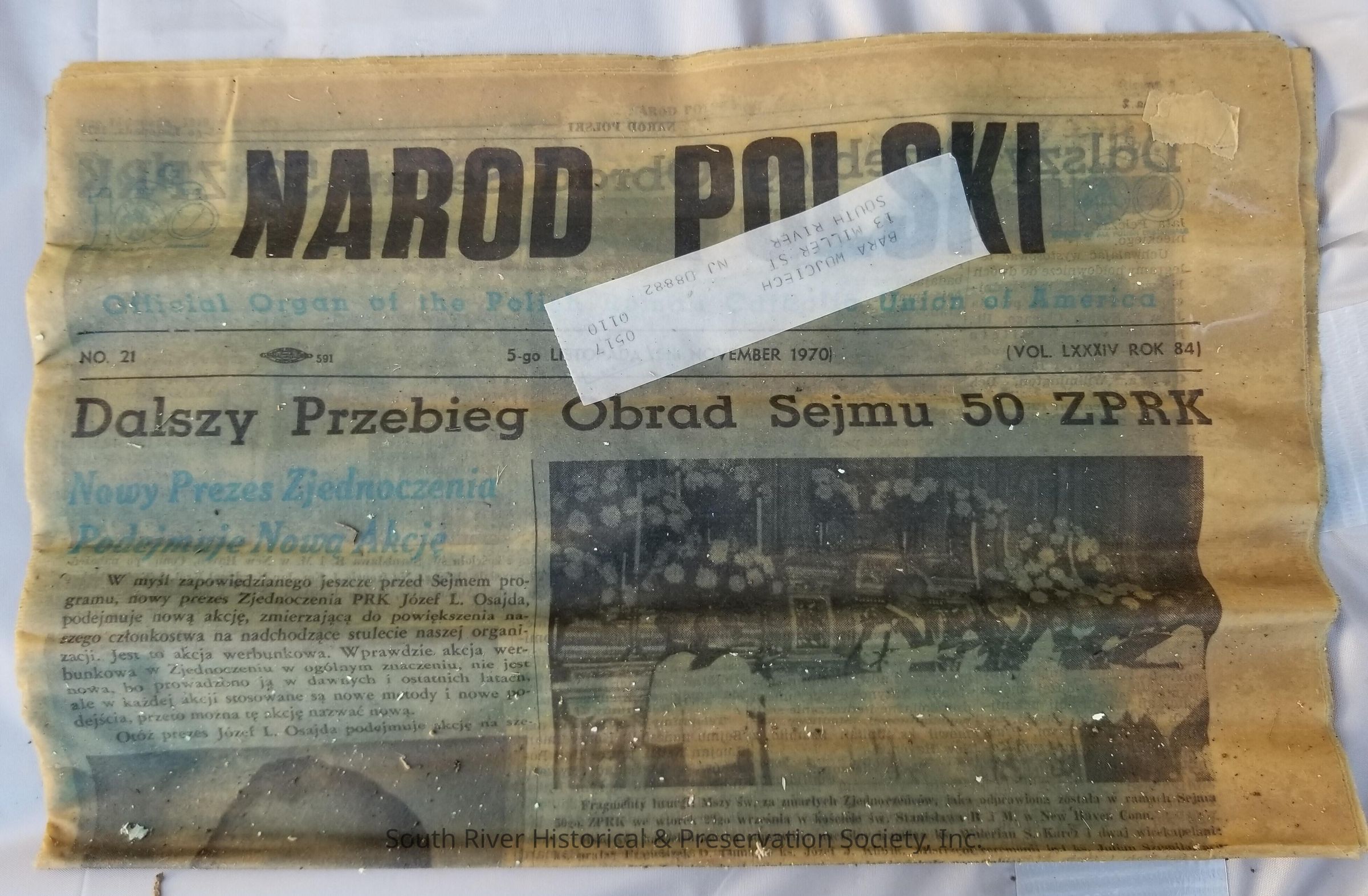 A postal address label over the masthead reads "Bara Wojciech, 13 Miller St., South River NJ 08882."