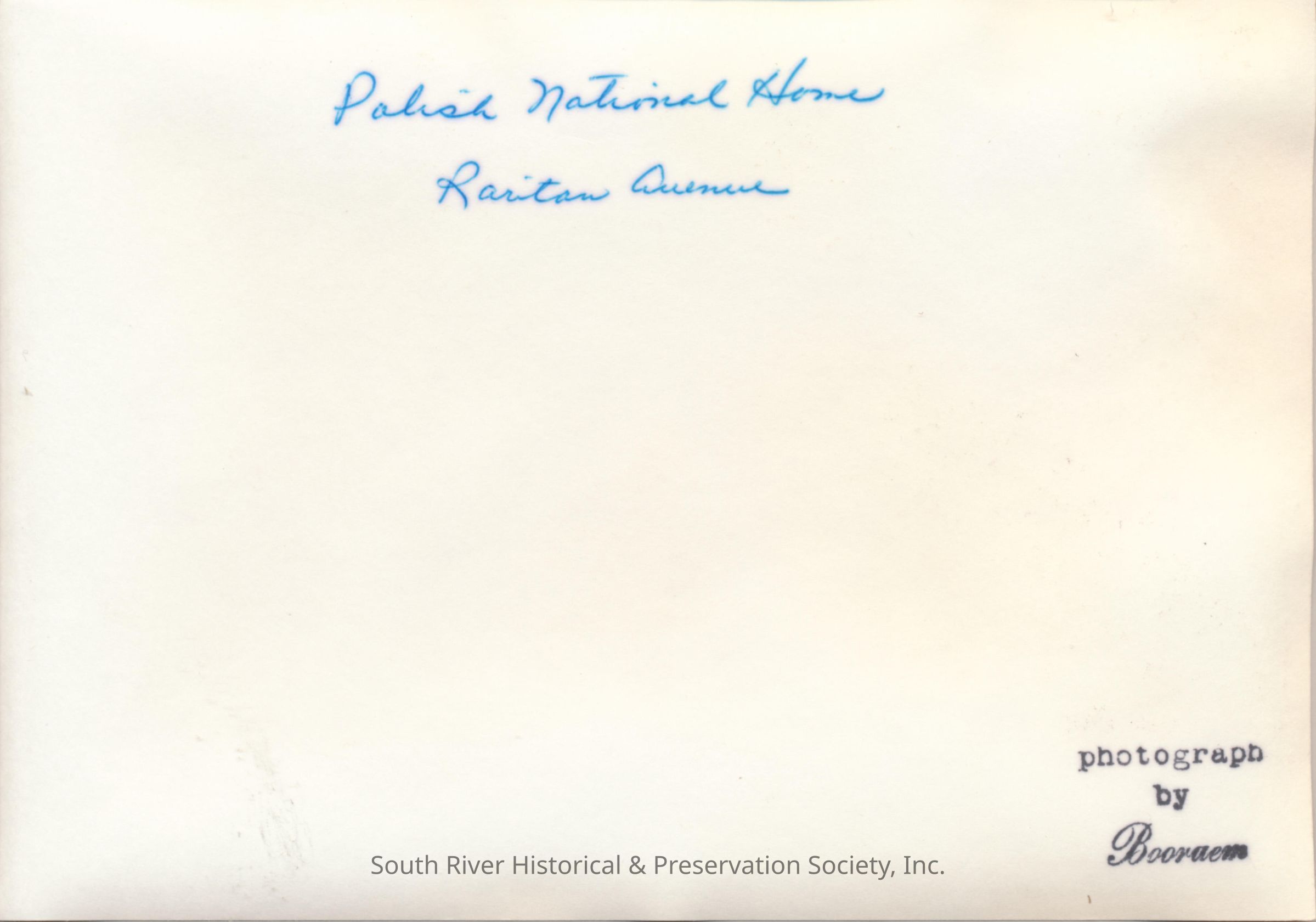 A note handwritten on the back in blue ink reads "Polish National Home, Raritan Avenue."
