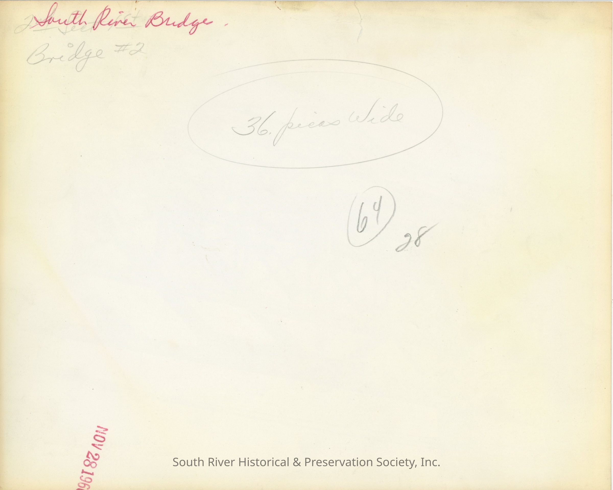 The back of the photograph has a handwritten note that reads, "South River Bridge." A date is also stamped in red, "Nov 28,1966."