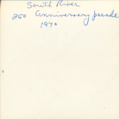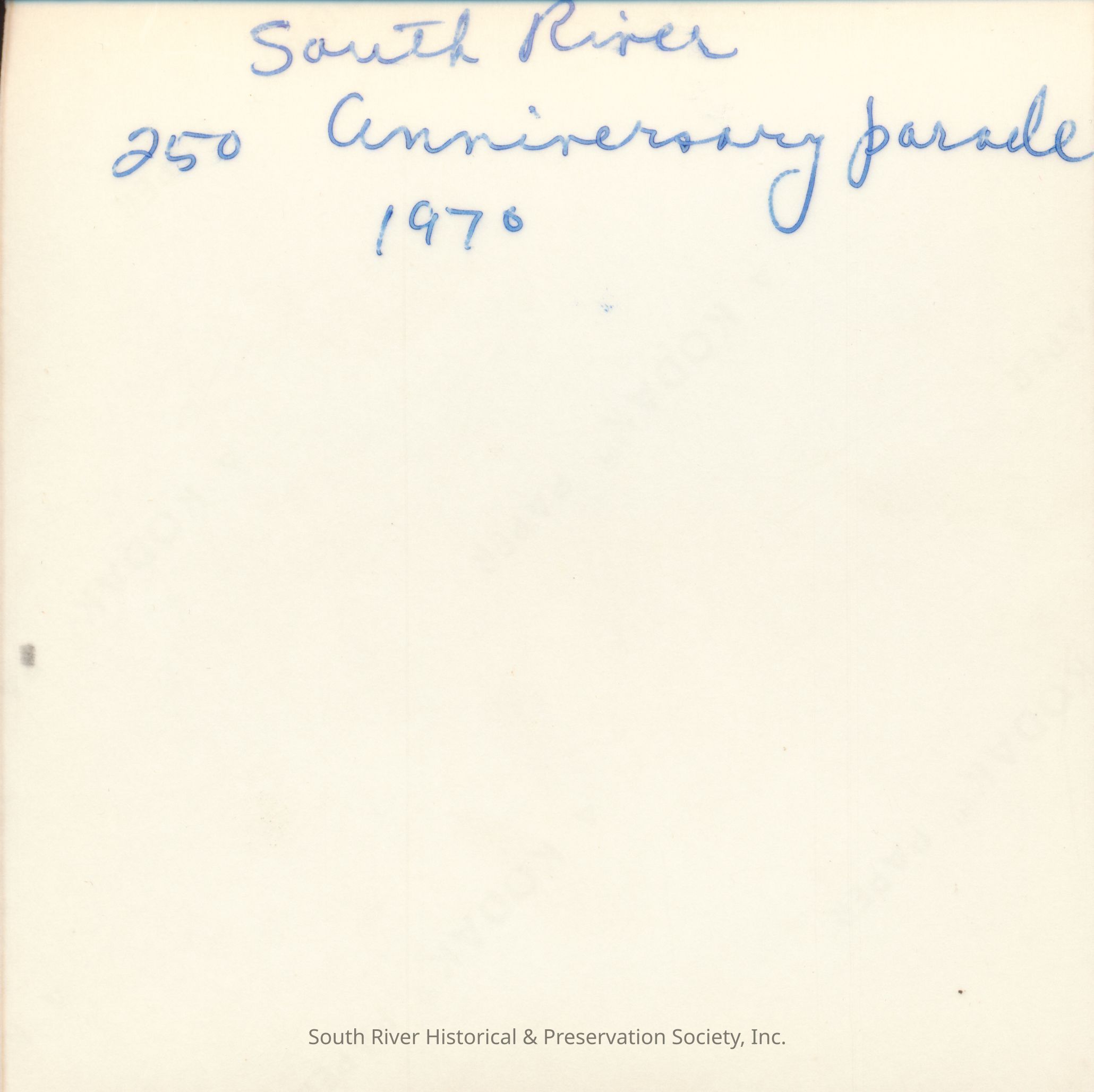The back of the photo has a note handwritten in blue ink that reads, "South River, 250 Anniversary Parade, 1970."