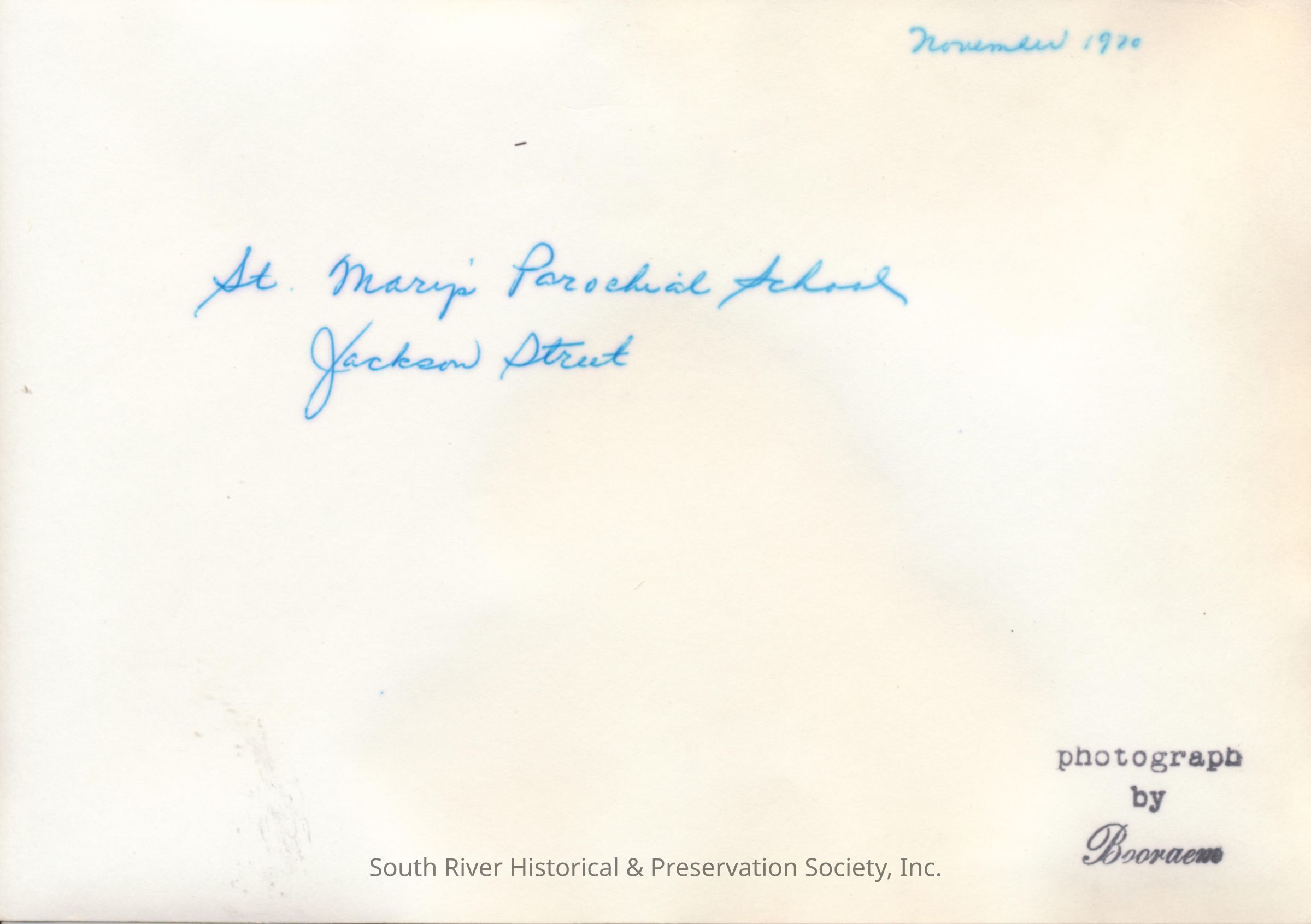 A note handwritten on the back in blue ink reads "November 1970; St. Mary's Parochial School, Jackson Street."