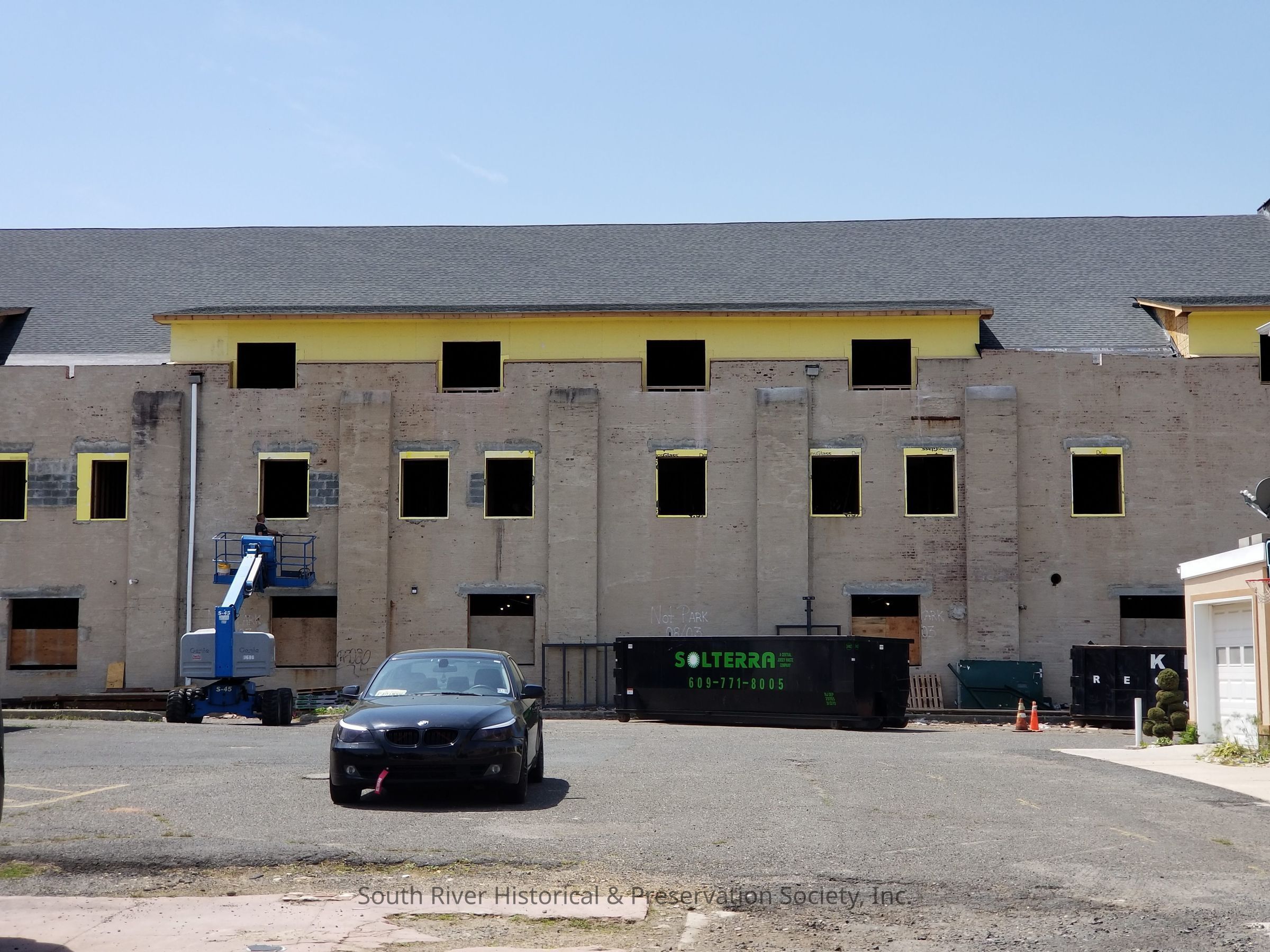 Digital color photograph of the DA-Green Electronics building at 37 Main Street undergoing renovations to convert it into the Capitol Building. The view is from Reid Street.