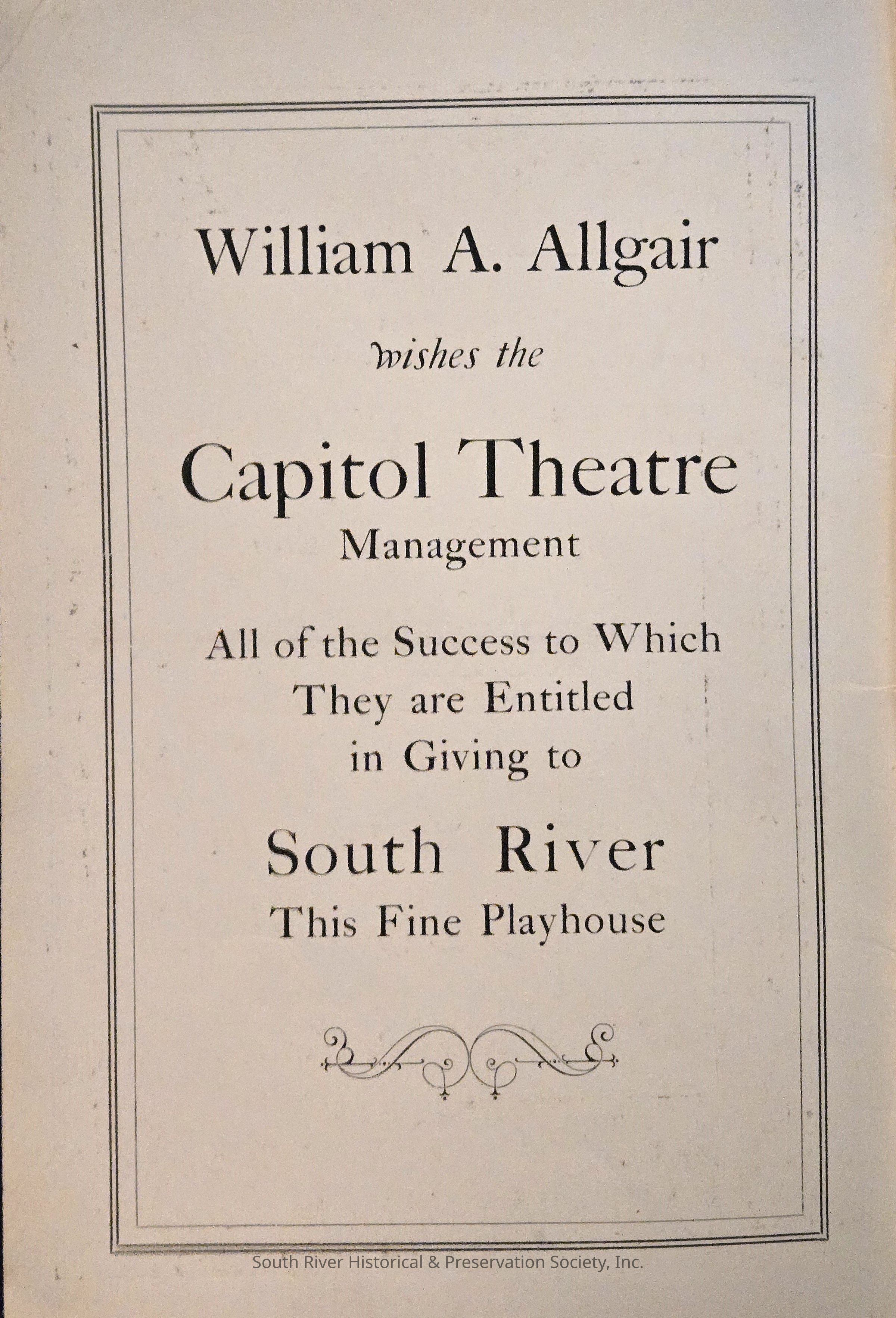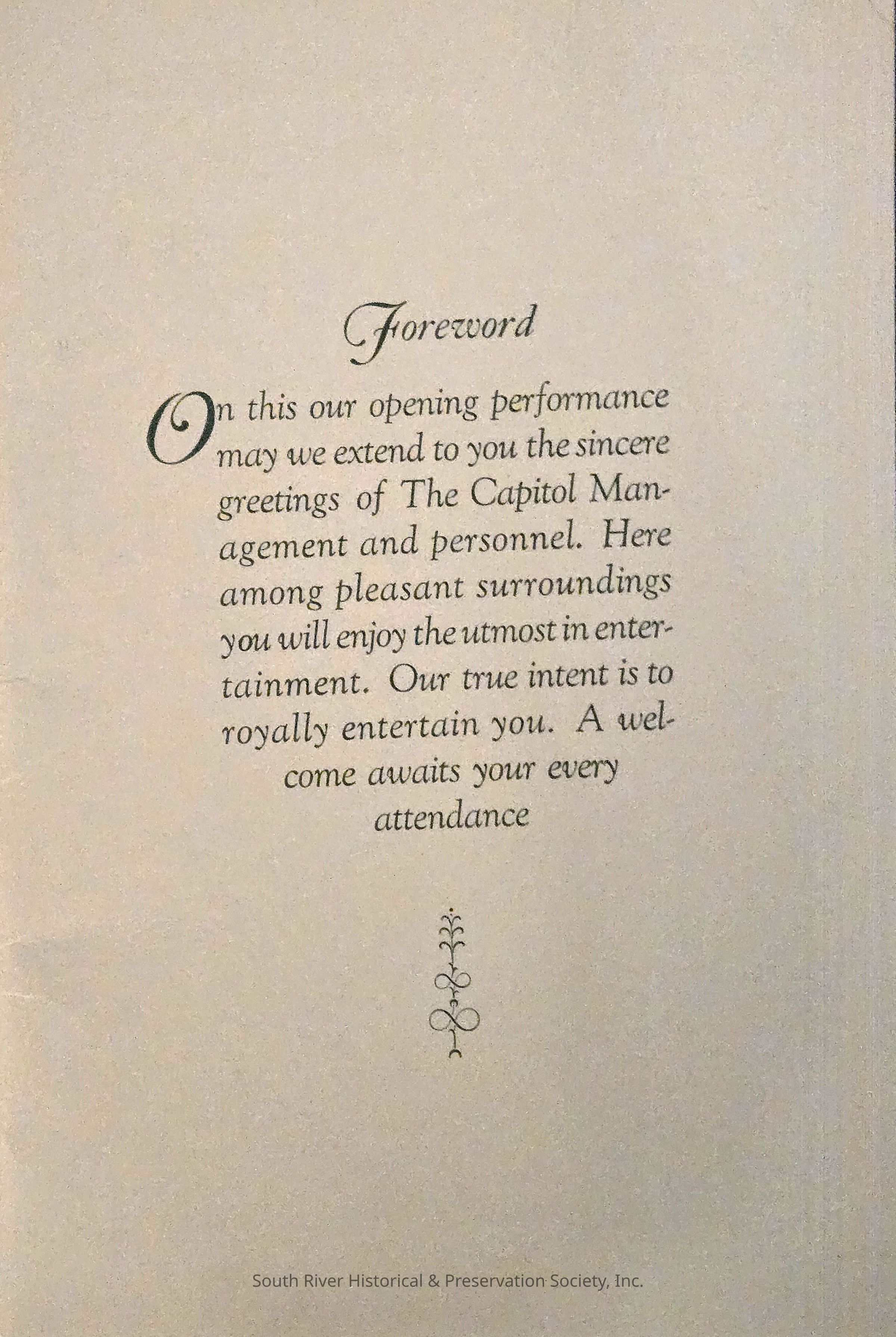 Souvenir program from the opening of the Capitol Theatre, South River, NJ, January 20, 1928.