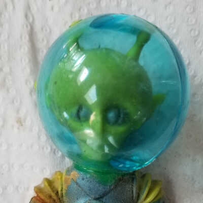 Approximately 3 1/2" tall. The helmet is loose and may be intended to be removable.Acquisition
