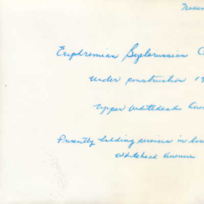 A note handwritten on the back in blue ink reads "November 1970; Euphremian Byelorussian Church, under construction 1970, upper Whitehead Avenue; Presently holding services in lower Whitehead Avenue."