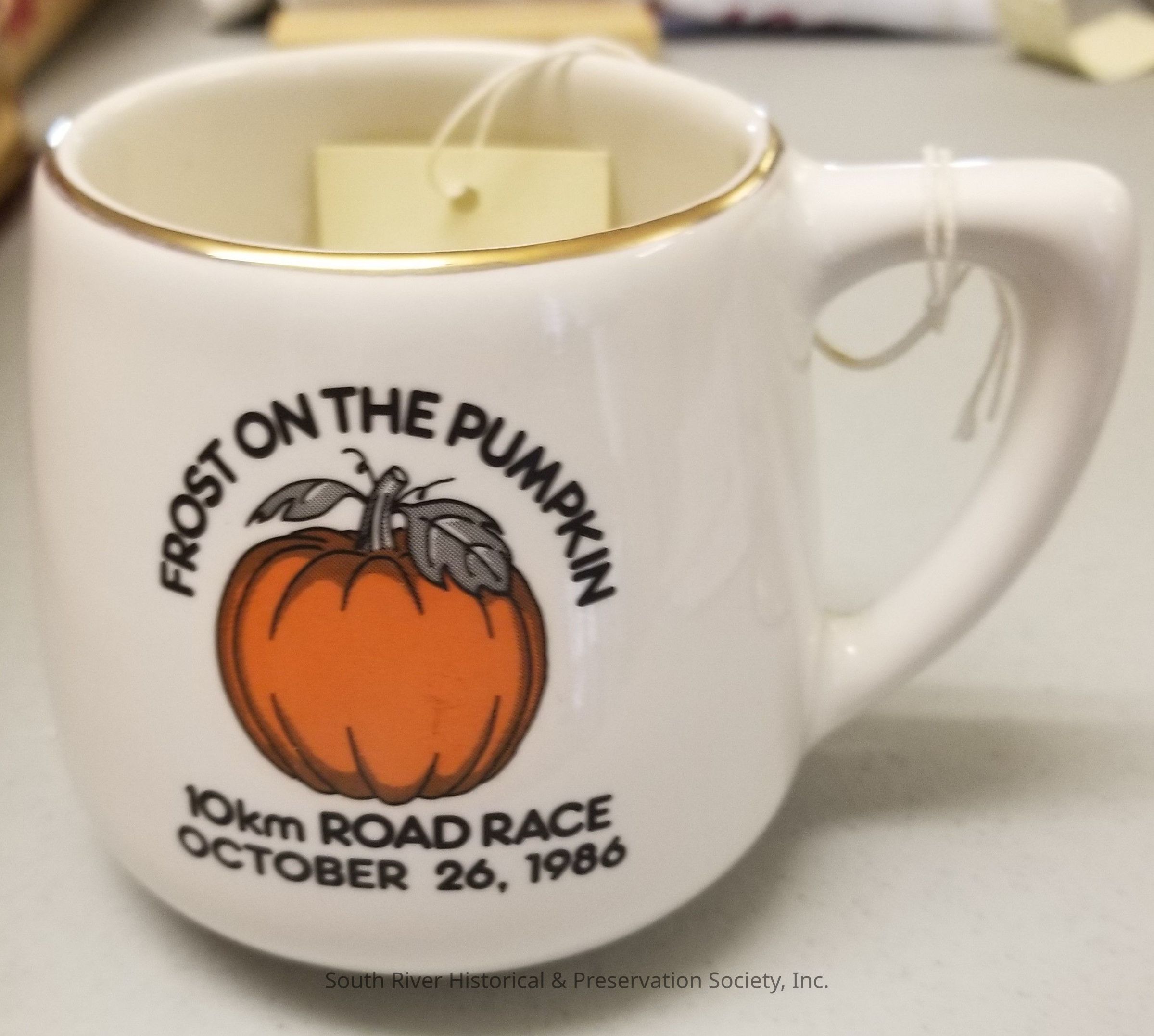 Frost on the Pumpkin 10km Road Race souvenir mug commemorating the event held in South River on October 26, 1986.