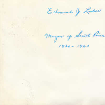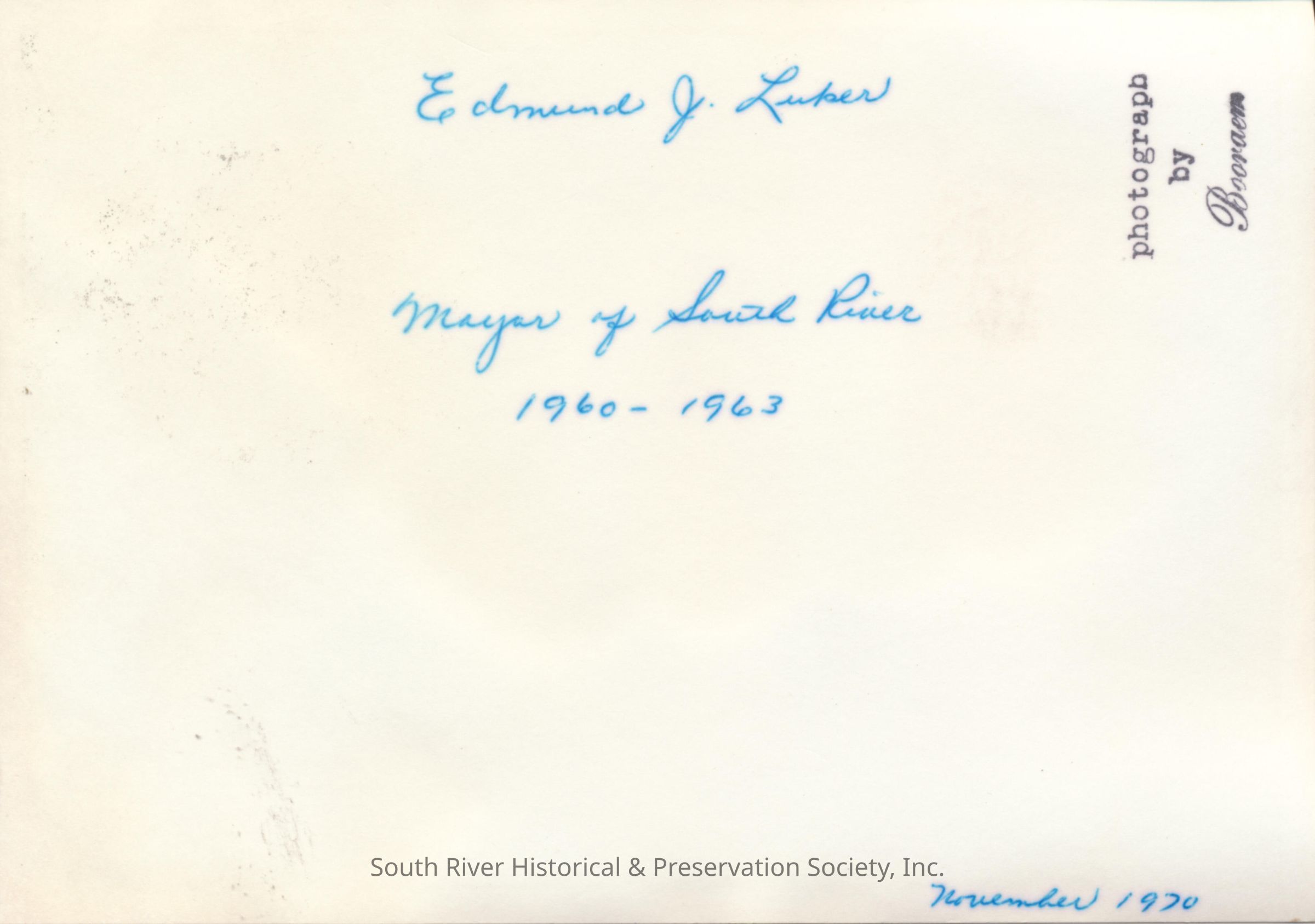 A note handwritten on the back in blue ink reads "Edmund J. Luker, Mayor of South River, 1960-1963; November 1970."