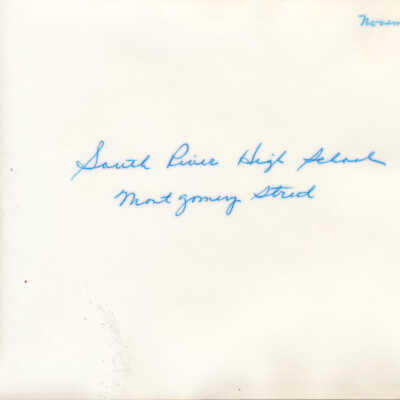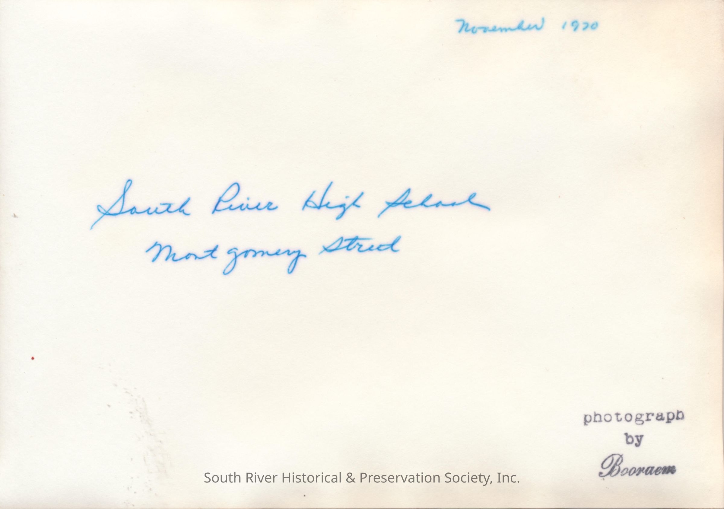 A note handwritten on the back in blue ink reads "November 1970; South River High School, Montgomery Street."
