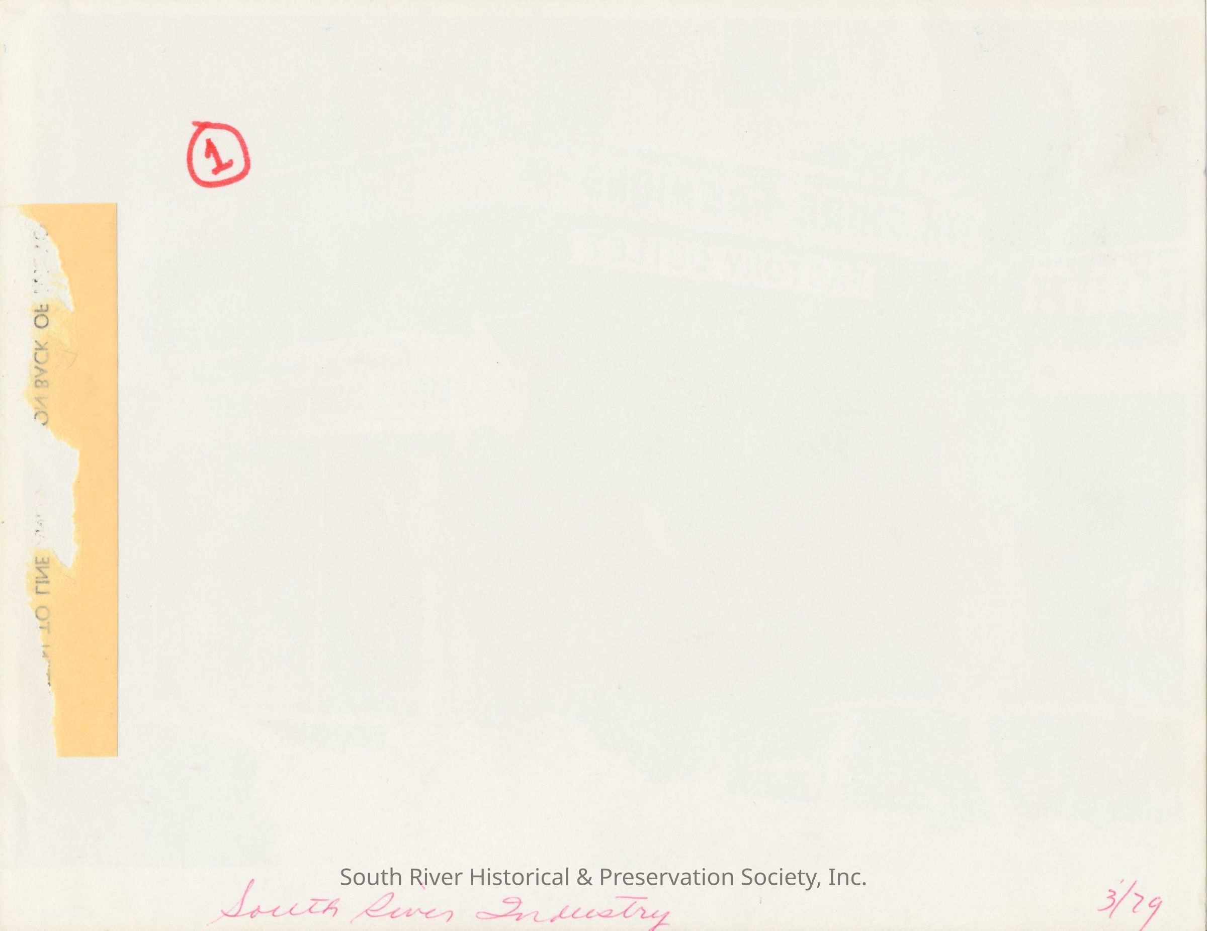 The back of the photograph has handwritten notes in red ink: "1," "South River Industry," and "3/79."