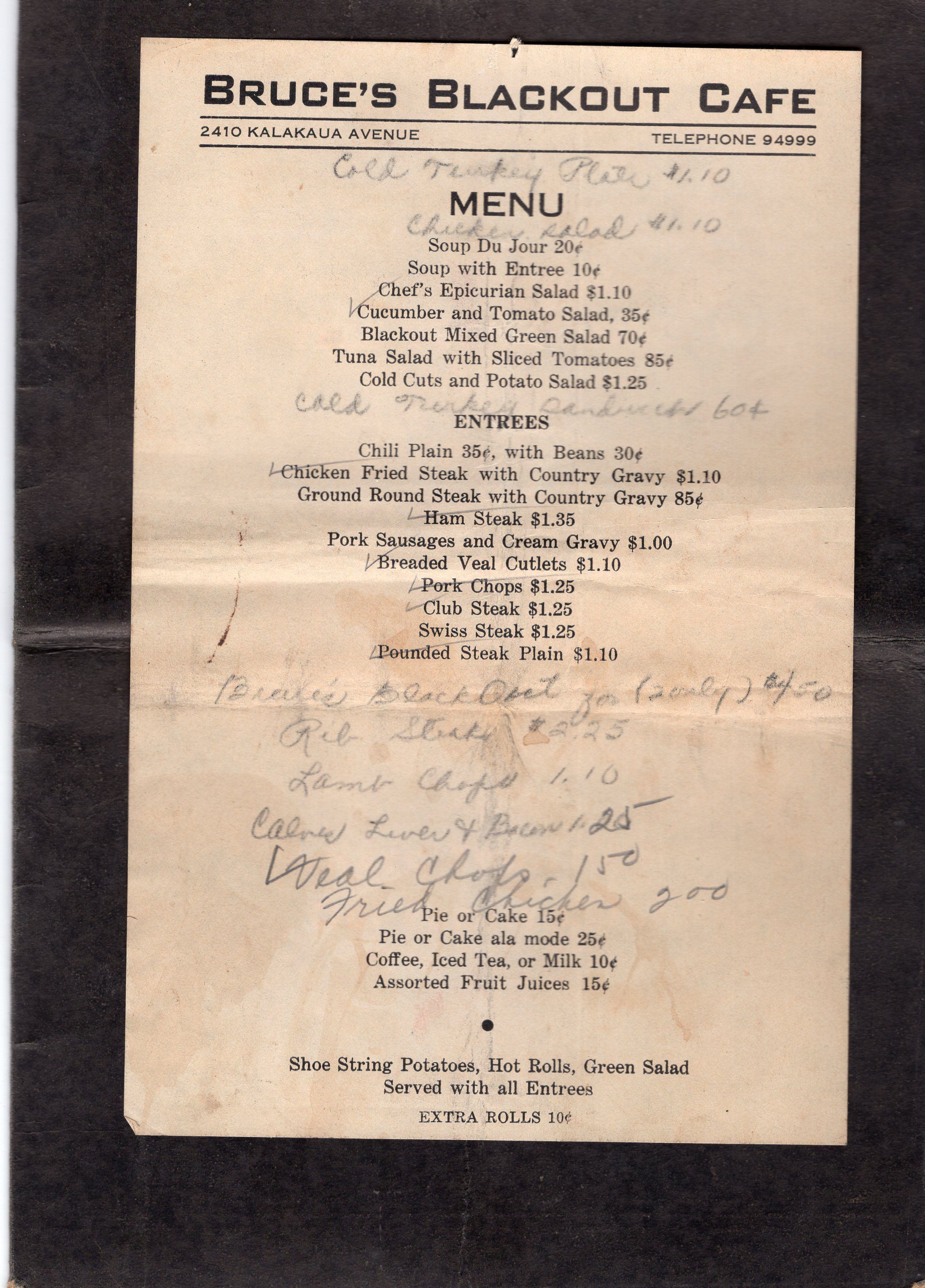 Bruce's Blackout Cafe Menu, HawaiiEntry/Object ID