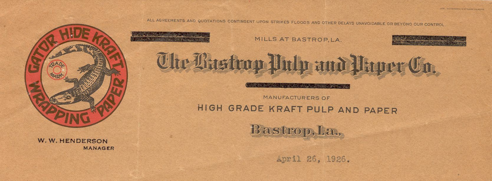 The Bastrop Pulp and Paper Company began operations during the mid 1920s. The company was forced to closed once all of the lumber ran out in Bastrop, Louisiana.Collection