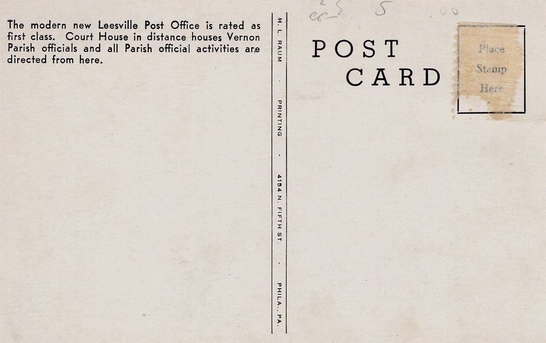 Postcard- Leesville, La- U. S. Post Office and Courthouse