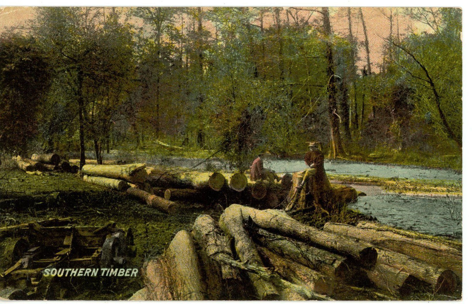 colorized photo logging by the river for Southern Timber; series 836-12; blank on backCollection