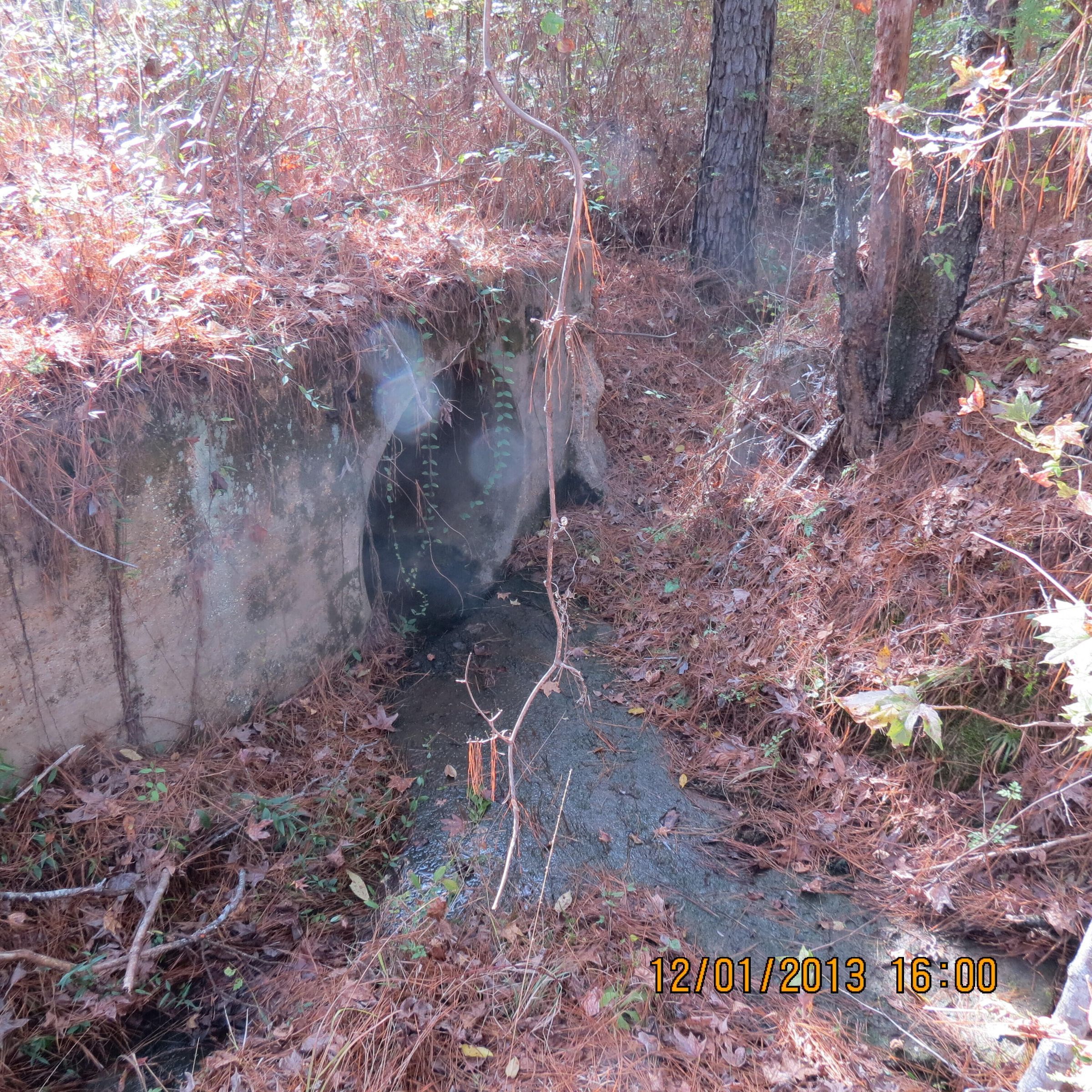 ruins of the Prisoners of War (POW) camp at Camp Claiborne; a culvert and an eye boltPhotograph Details