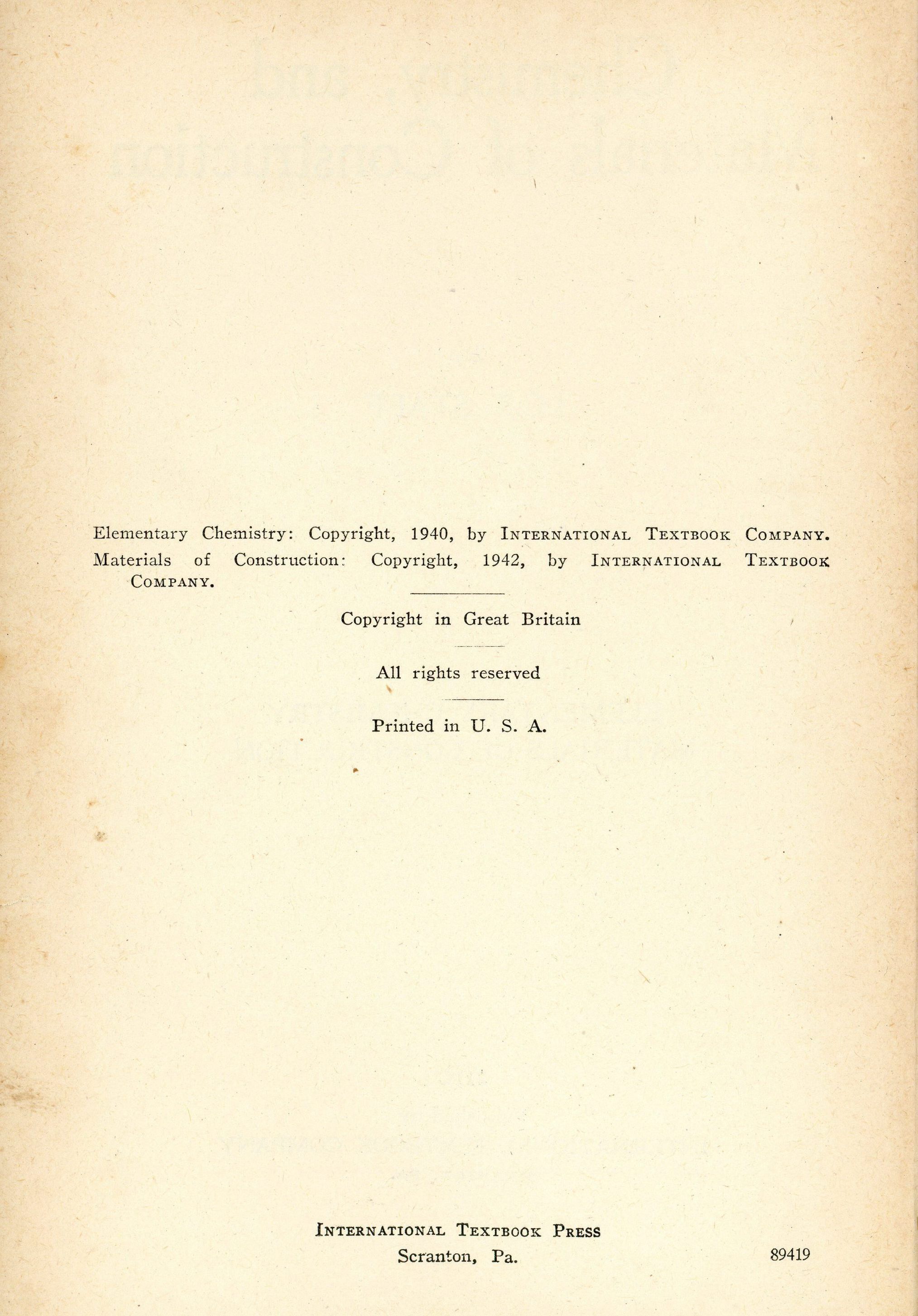 Chemistry, And Materials of ConstructionEntry/Object ID