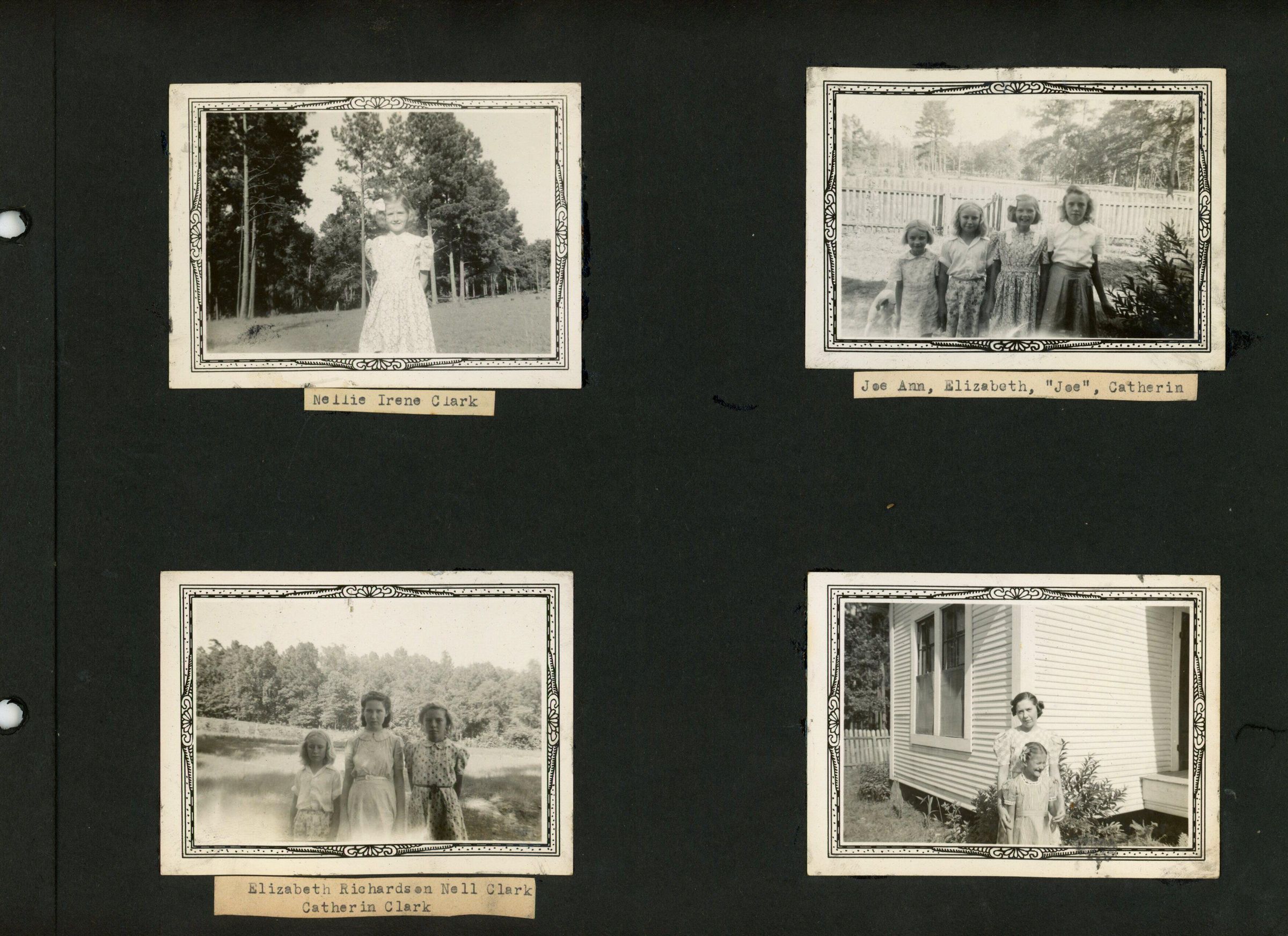 Nellie Irene Clark, group:Joe Ann, Elizabeth, “Joe” Catherin and group: Elizabeth Richardson, Nell Clark, and Catherin Clark