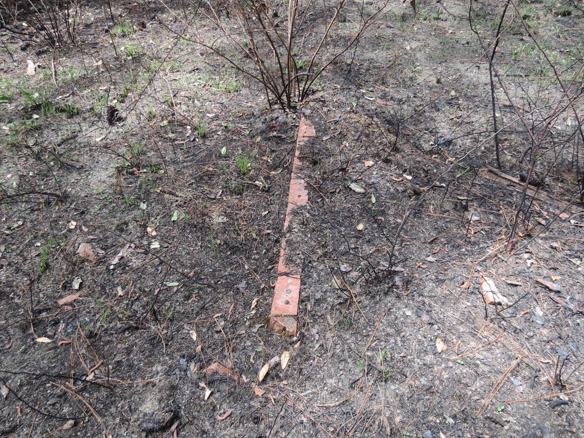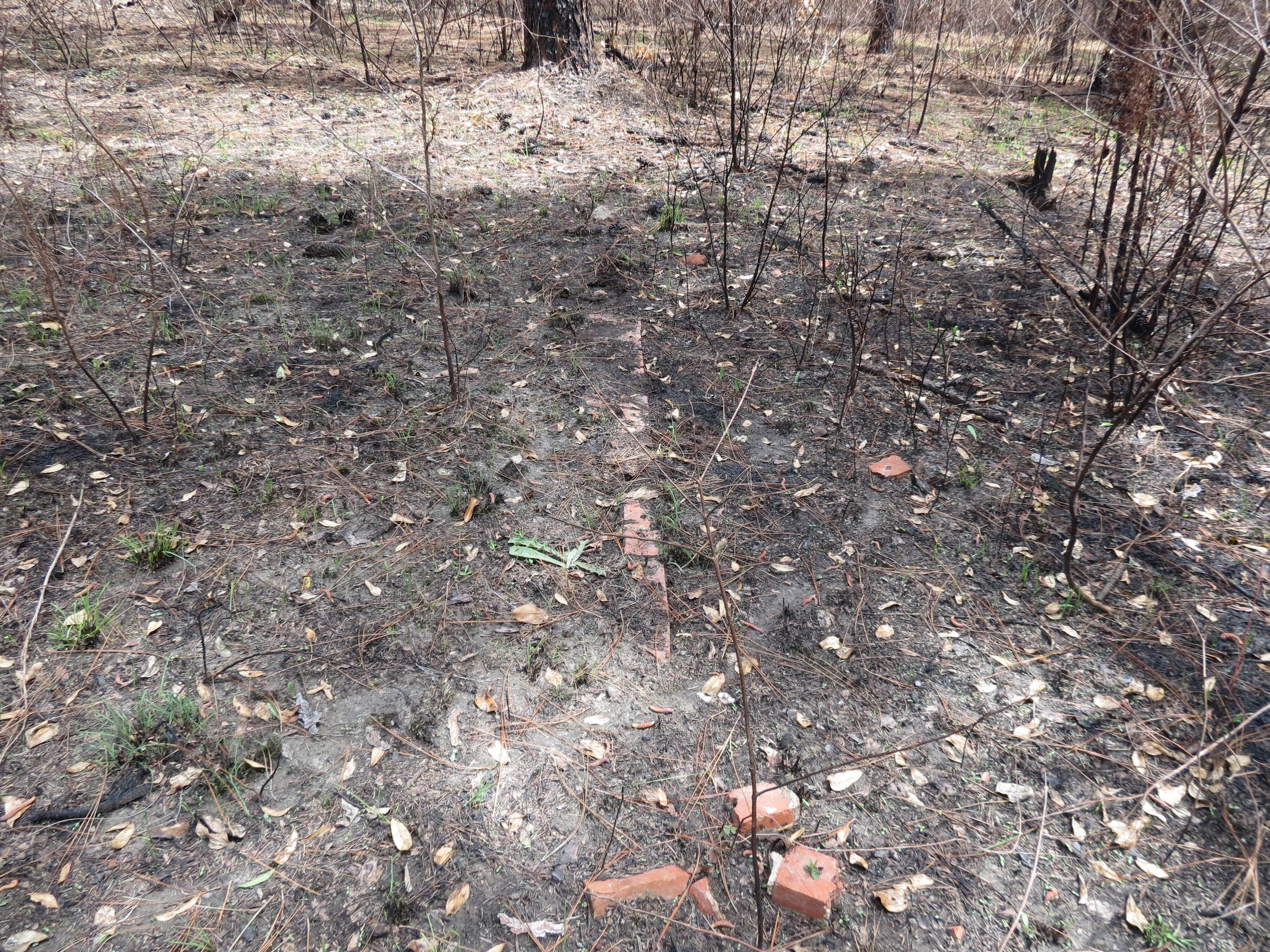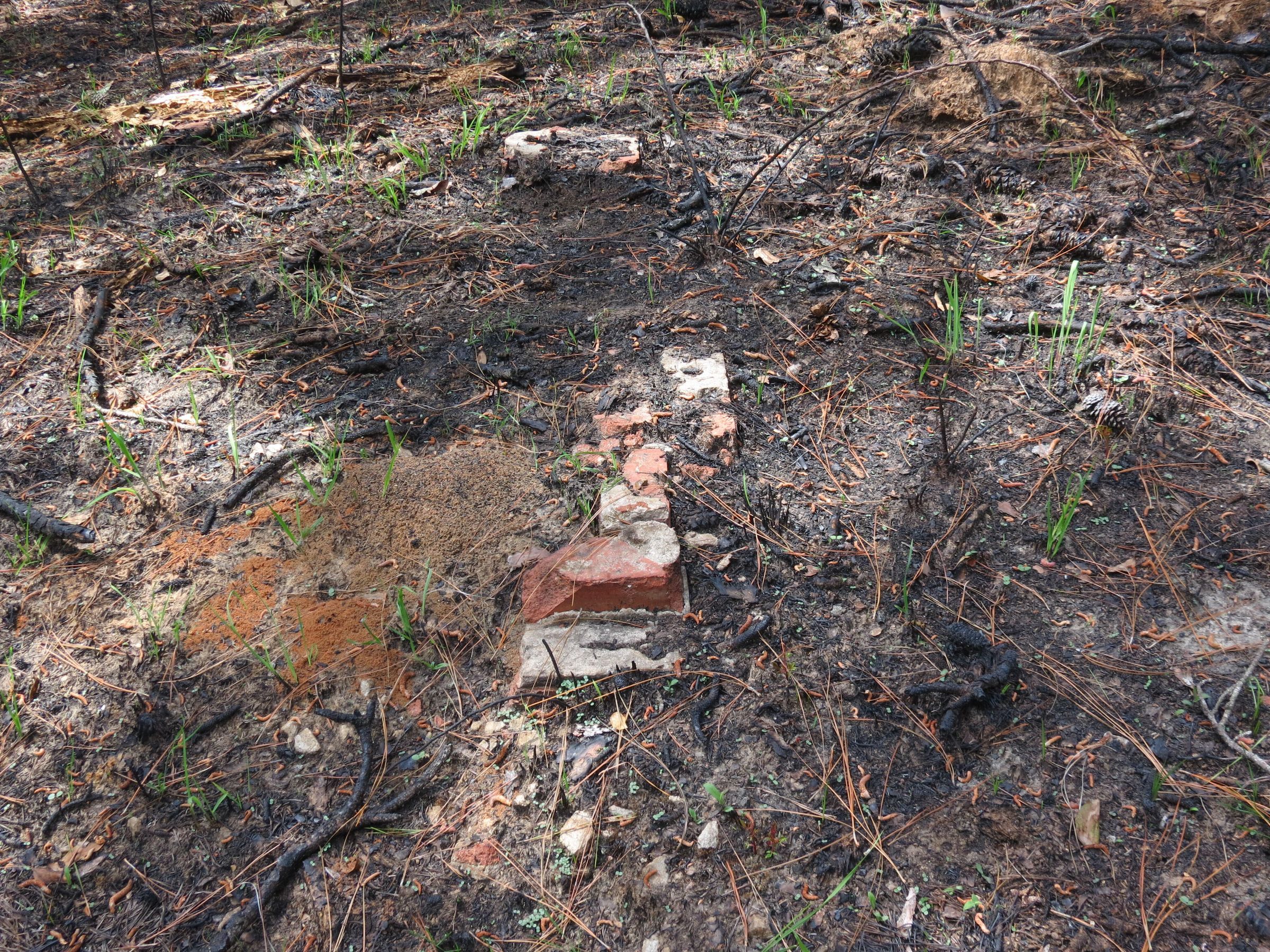 Scattered brick fragments of pavalion floor