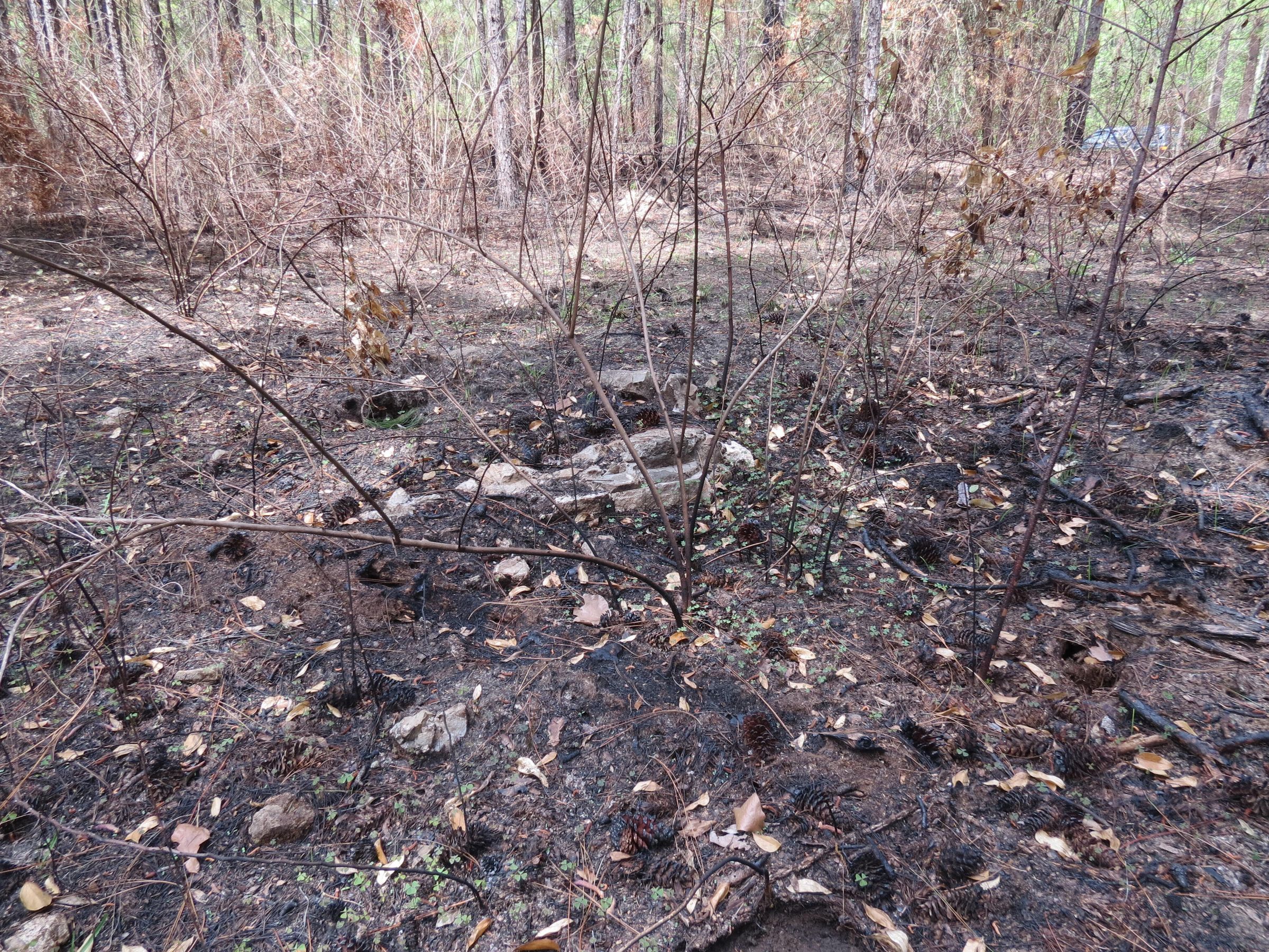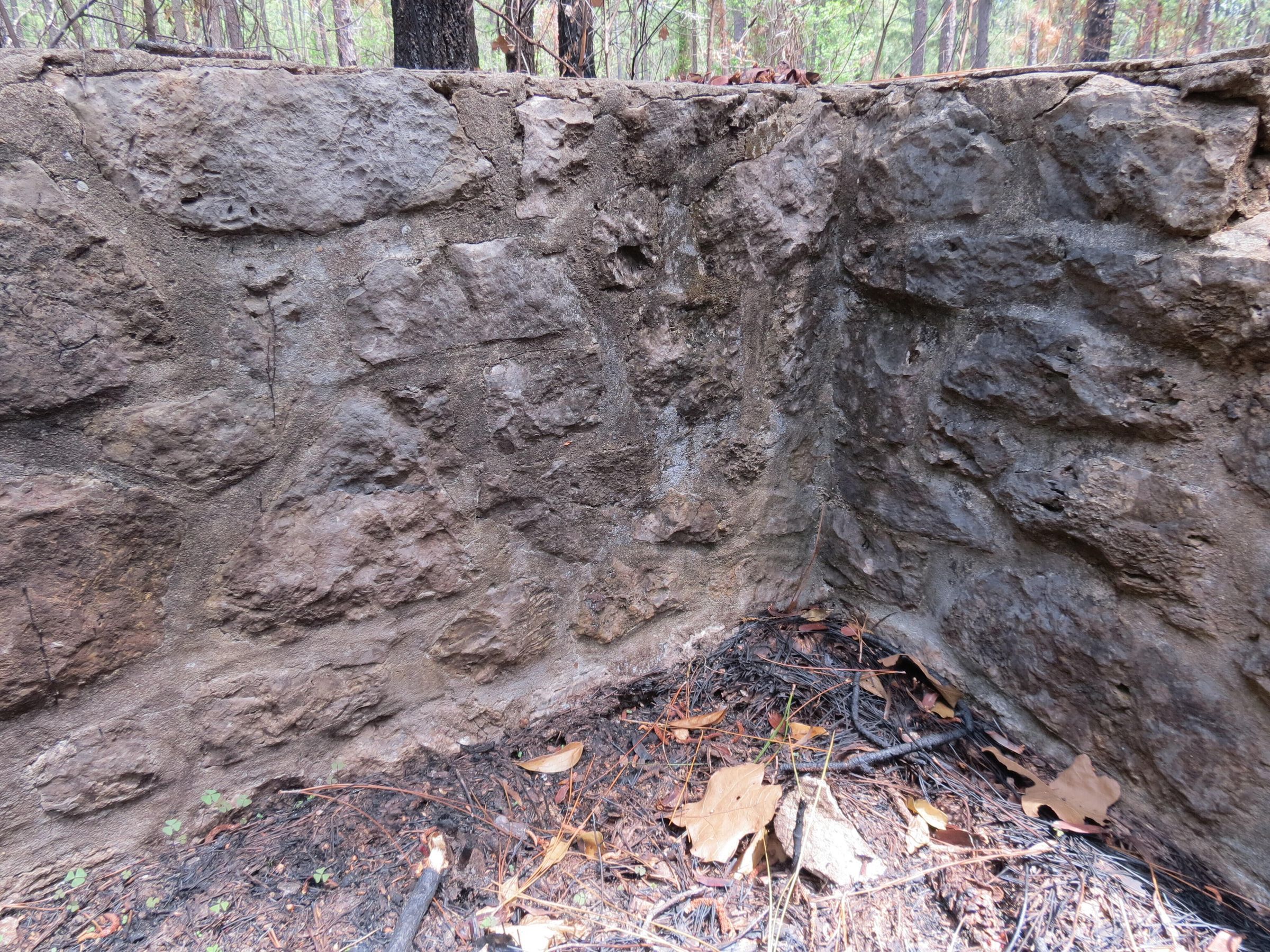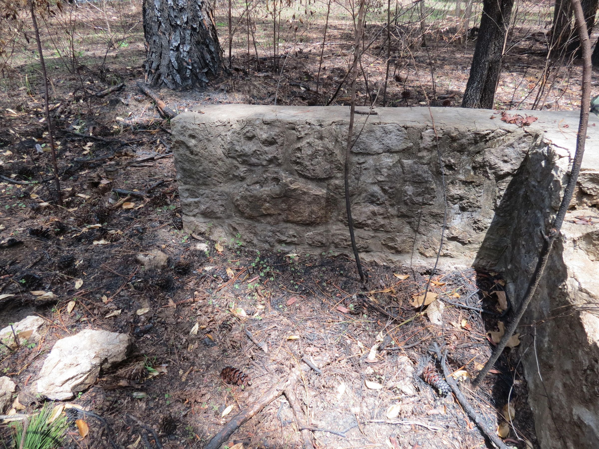 the ruins of the pavilion in the Black troop area at Camp Claiborne; the outer walls; broken up bricks of the flooring for the pavilionPhotograph Details