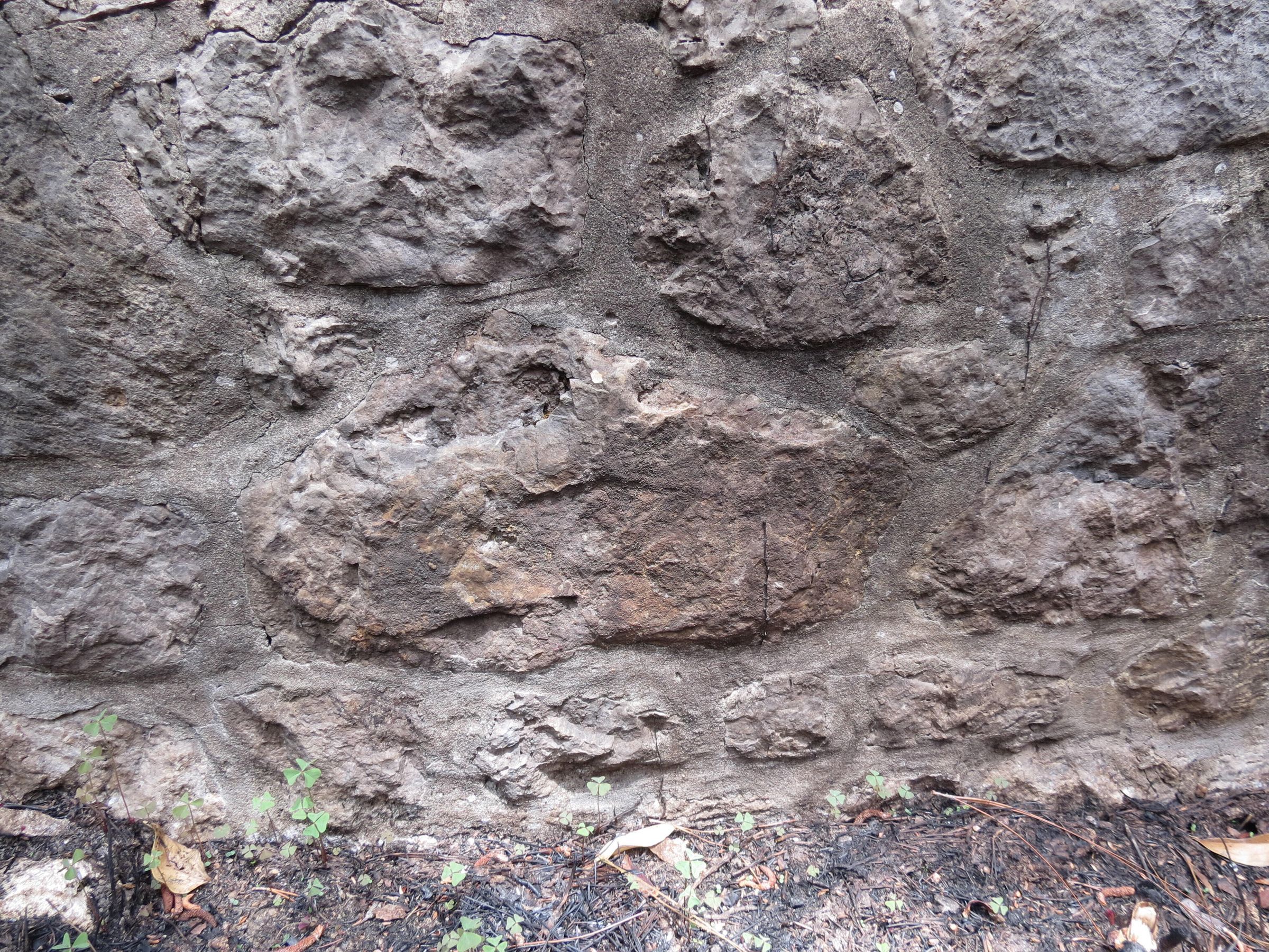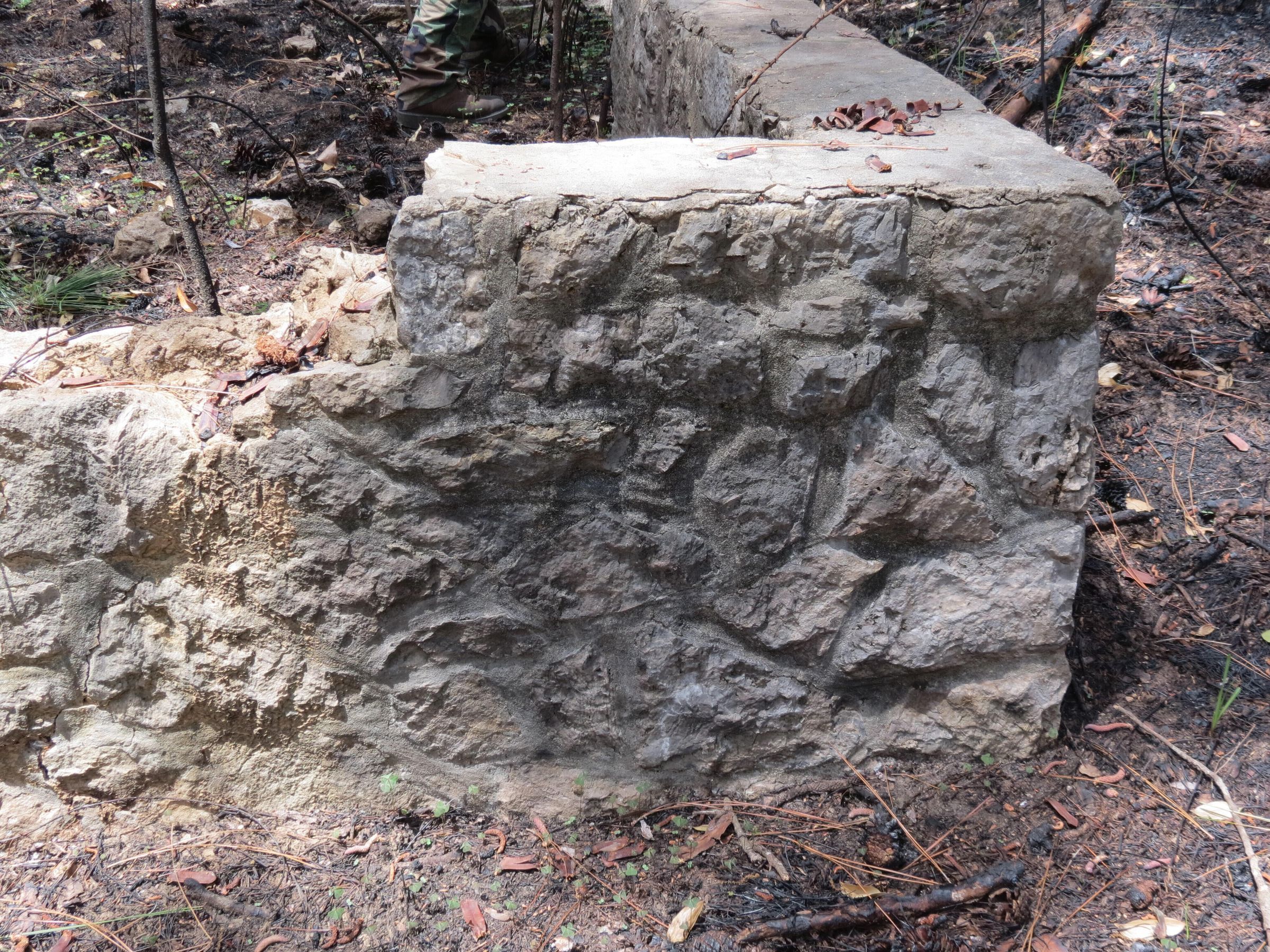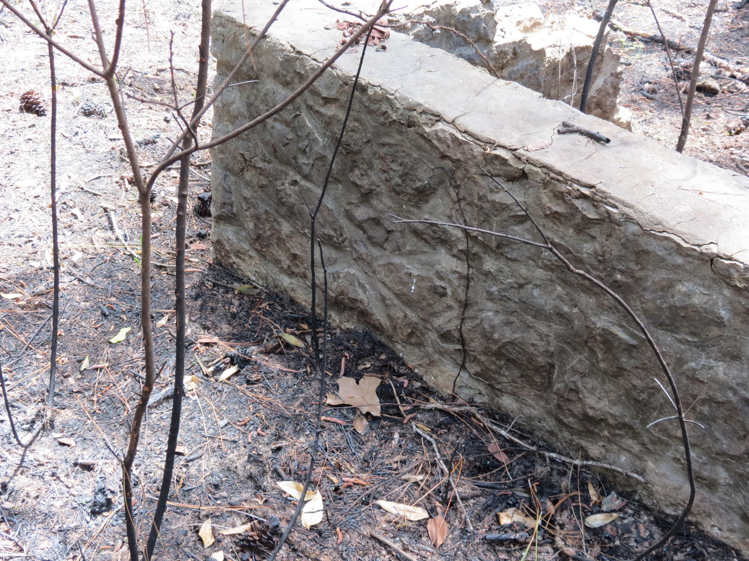 the ruins of the pavilion in the Black troop area at Camp Claiborne; the outer walls; broken up bricks of the flooring for the pavilionPhotograph Details