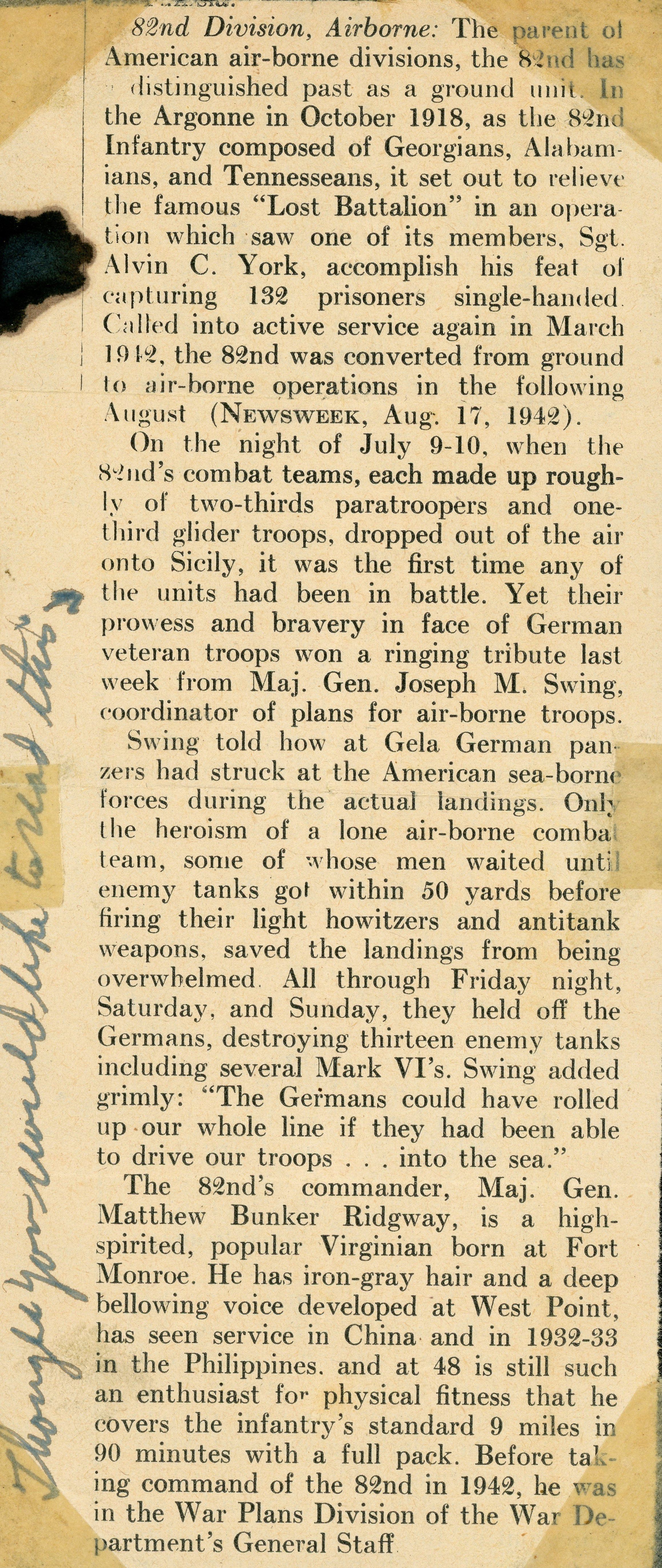 Clipping about the "Lost Battalion" and Sgt. Alvin C. YorkDescription