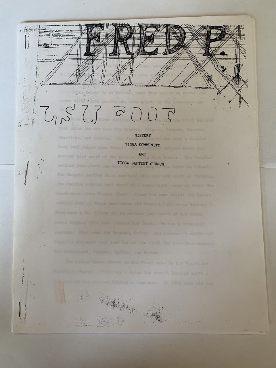 History of Tioga Community and the Tioga Baptist ChurchEntry/Object ID