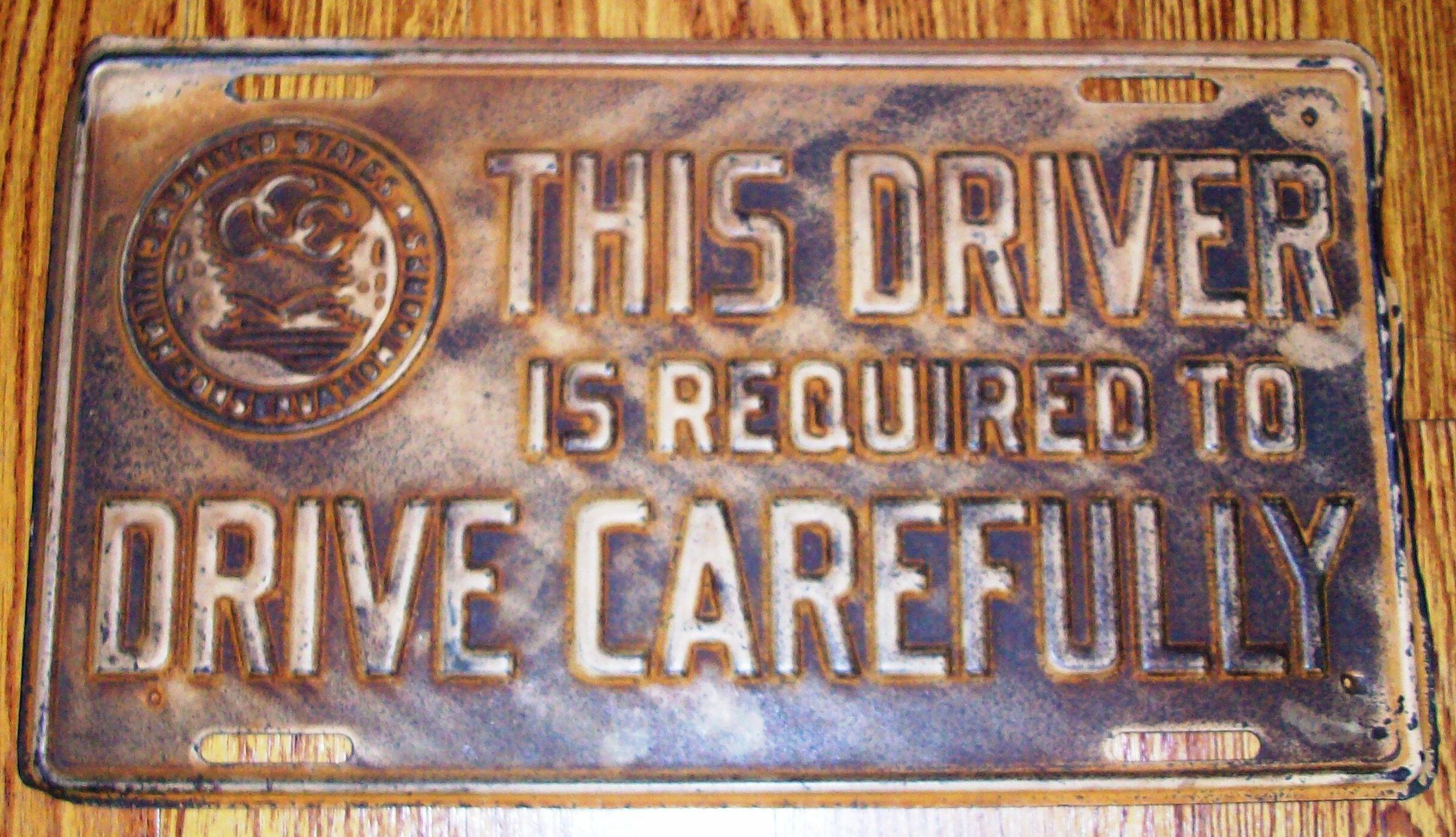 a CCC vehicle tag; engraved: This Driver is Required to Drive Carefully; CCC logo in left cornerPhotograph Details