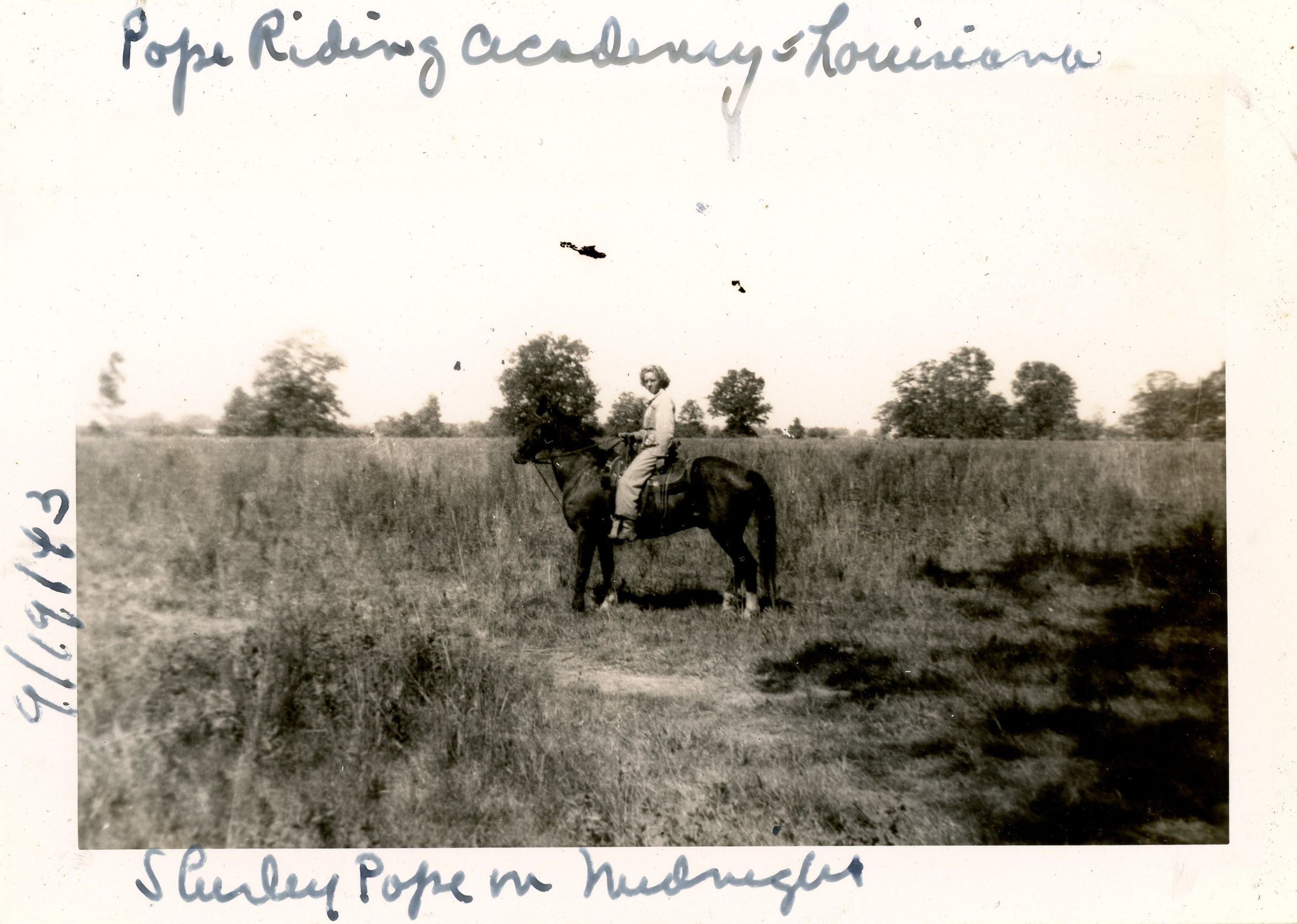 Pope's Riding Academy - Louisiana; 9/19/43; Shirley Pope on MidnightMaterial/Technique