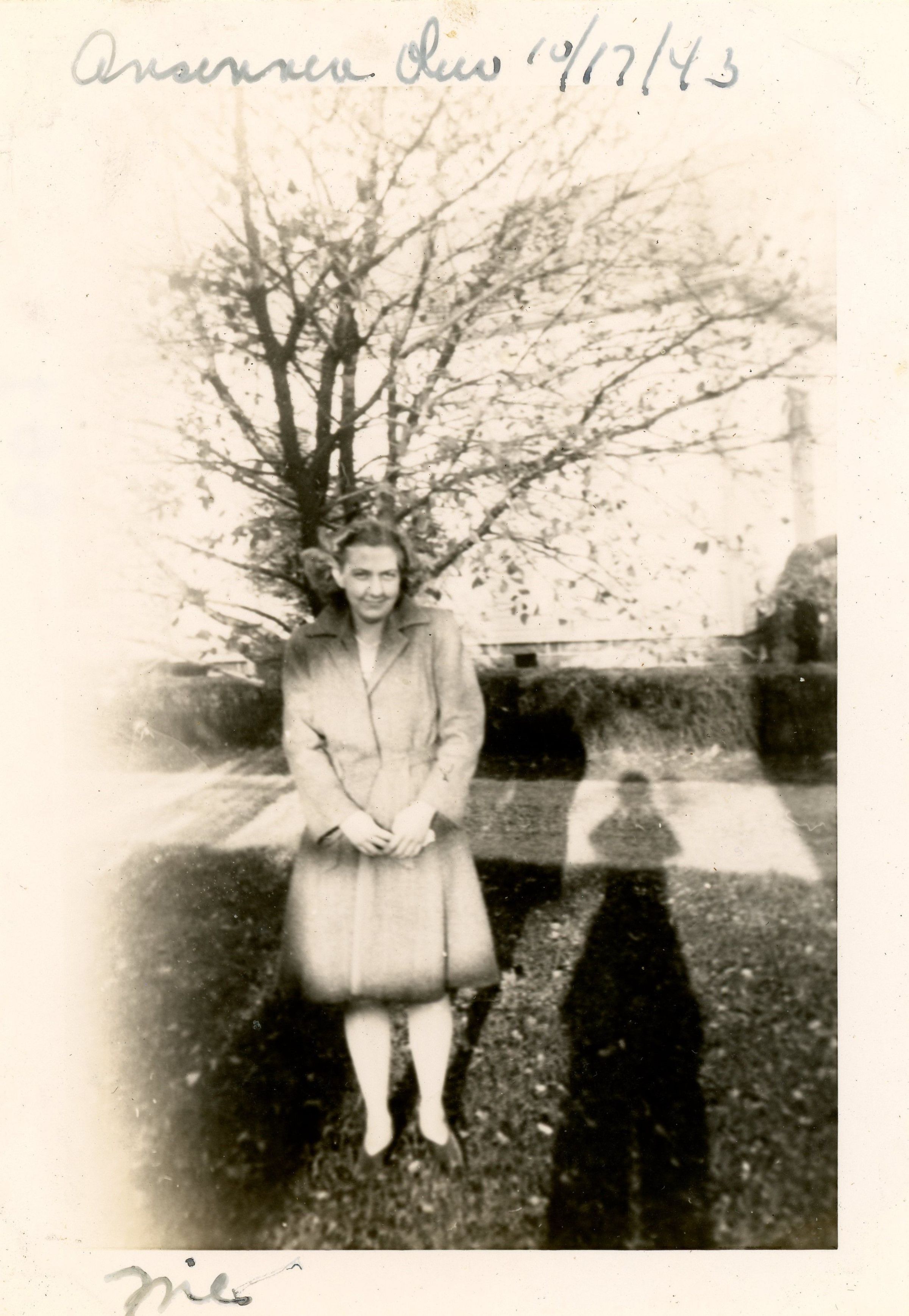 Photo taken in Ansonia (misspelled Ansonnea), Ohio, Oct. 17, 1943. Titled "Me," thought to potentially be Dorothy Brown.Photograph Details