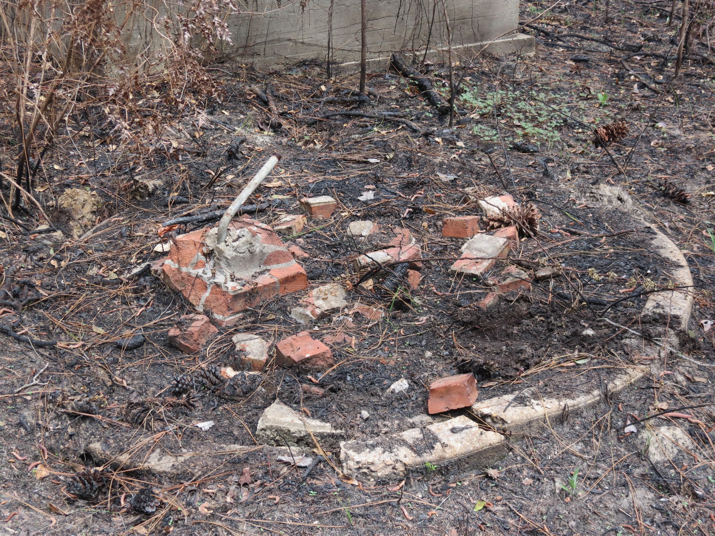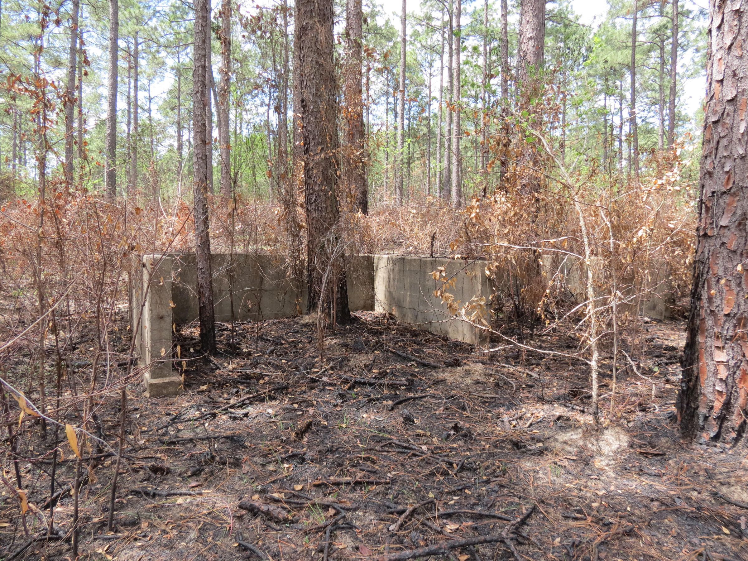 an unknown ruin of a building with bins and circular wash areas in Camp ClaibornePhotograph Details