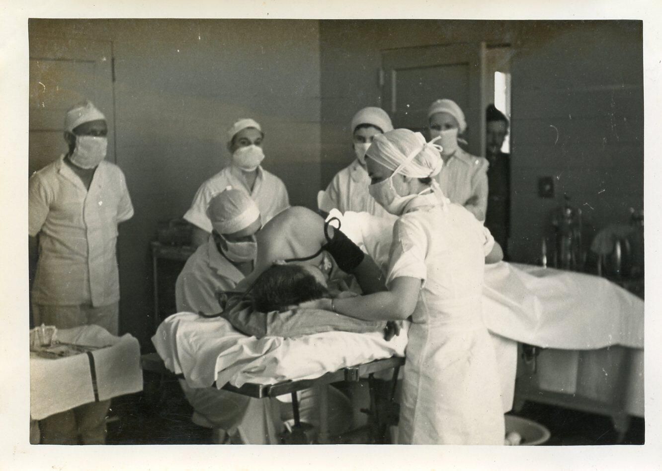 Anesthetic being applied spinally to a man about to undergo an AppendectomyPhotograph Details
