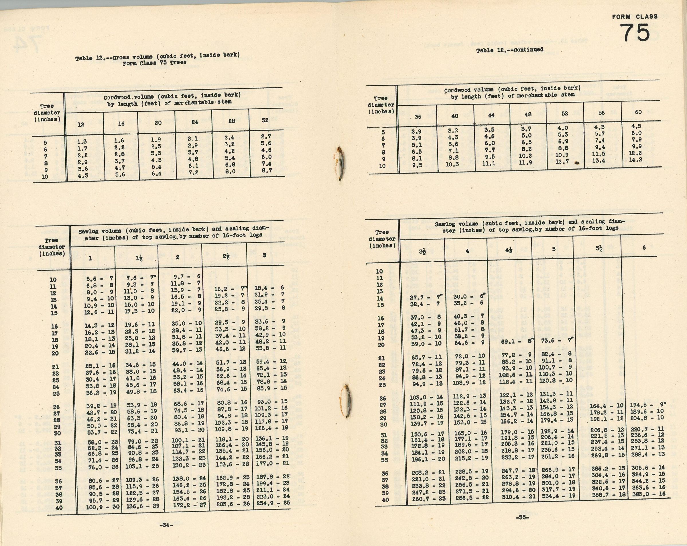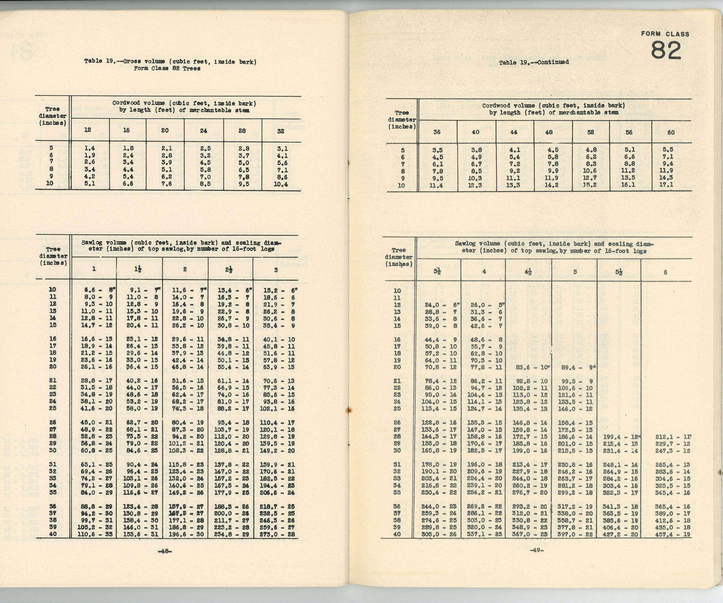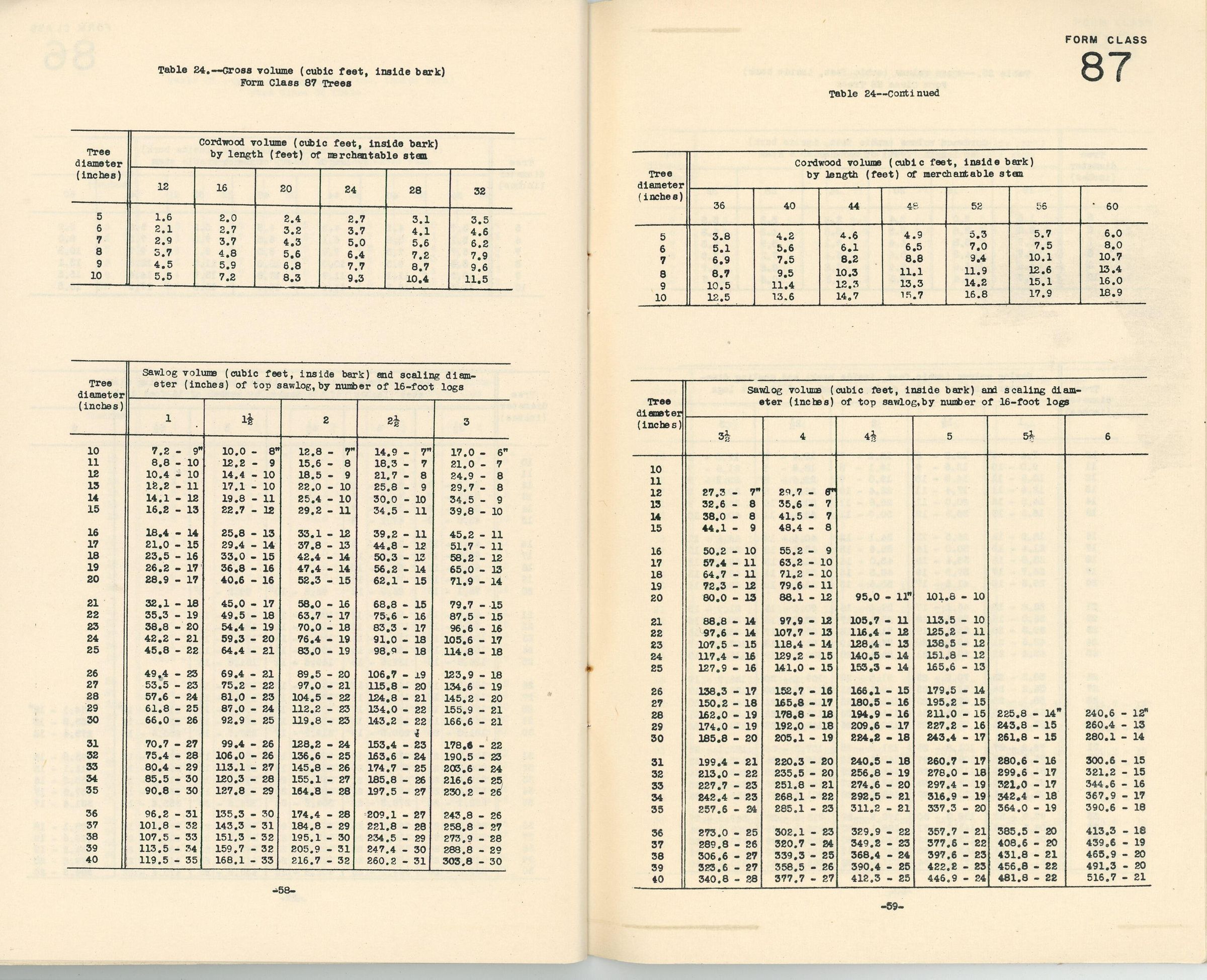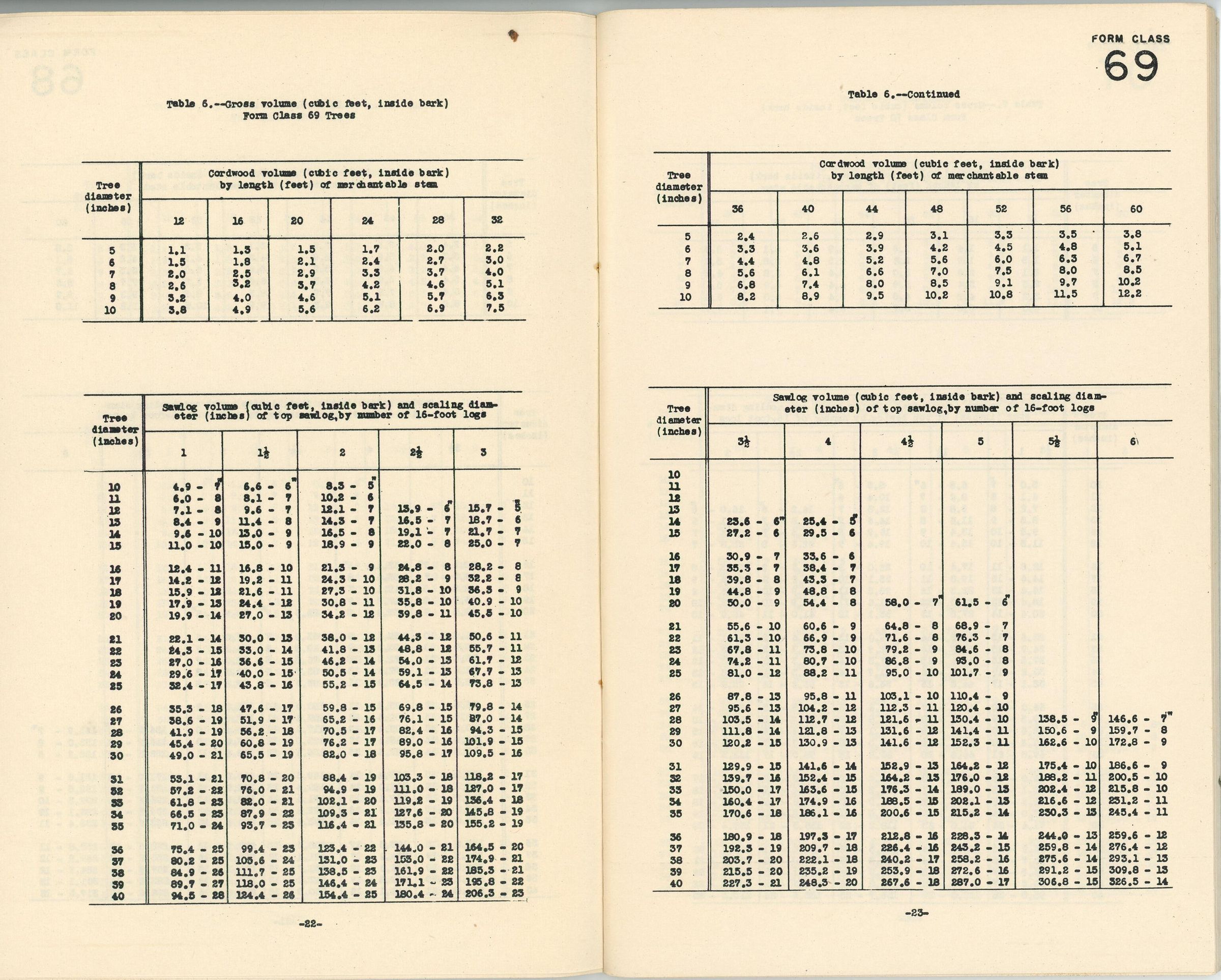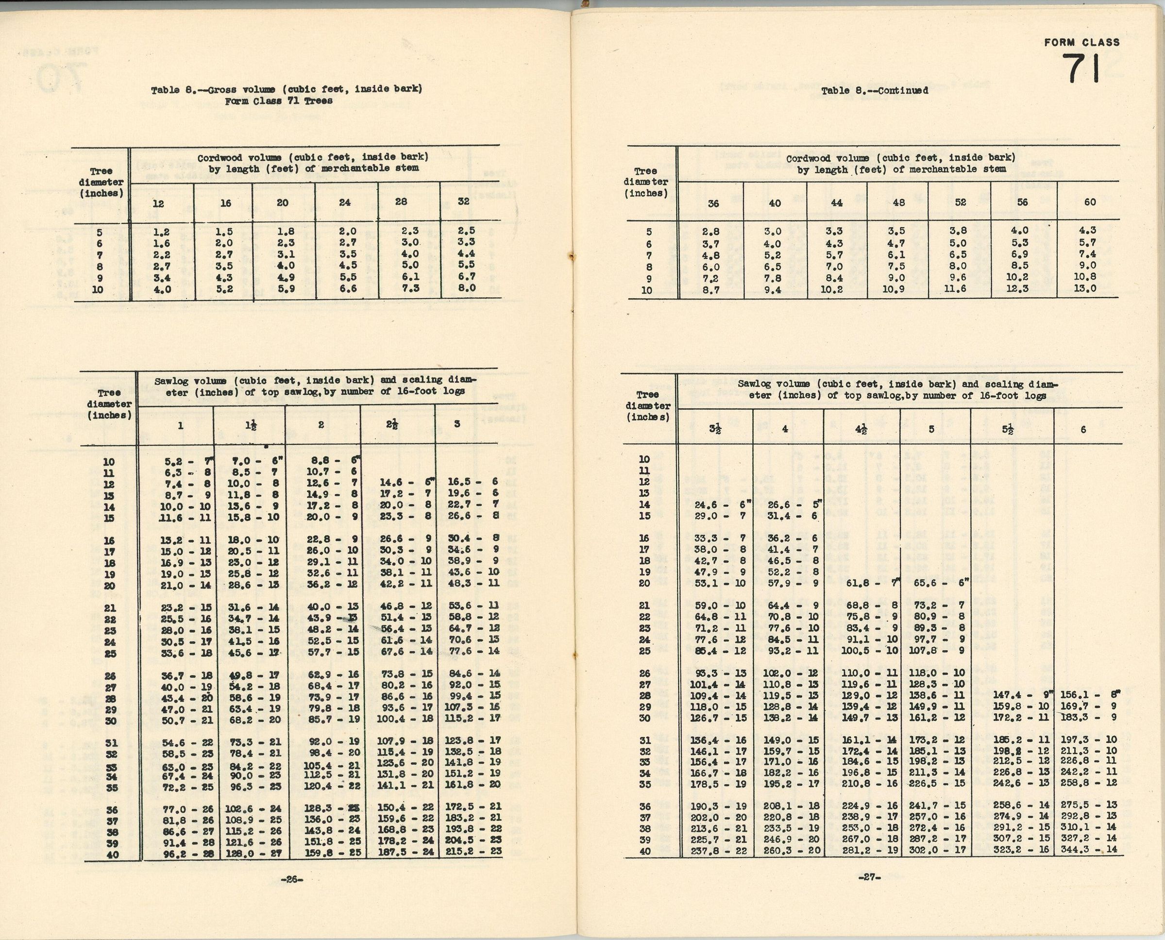 complied for the use of estimating the cubic-foot of standing timber; mainly for southern softwoods and eastern hardwoodsCollection