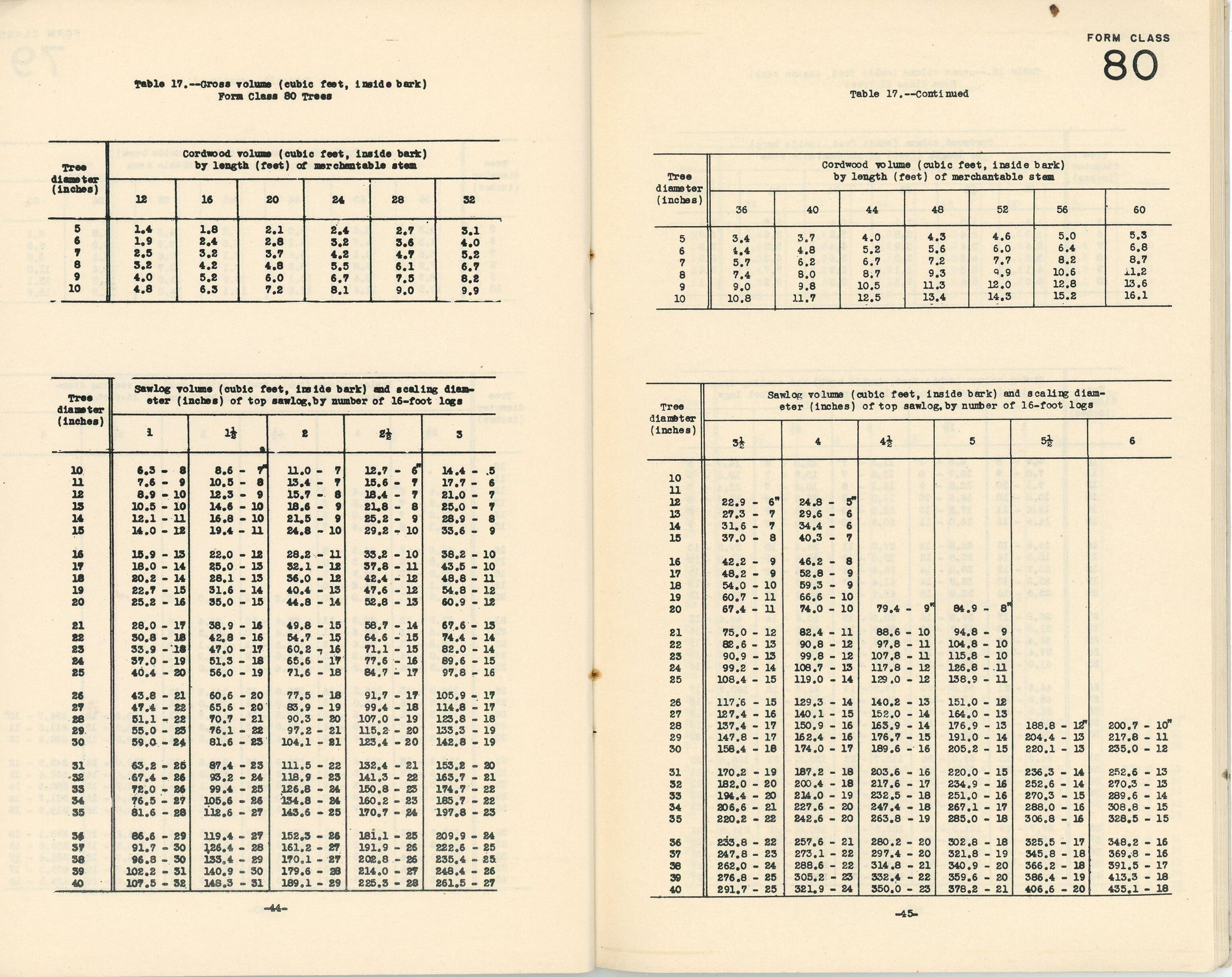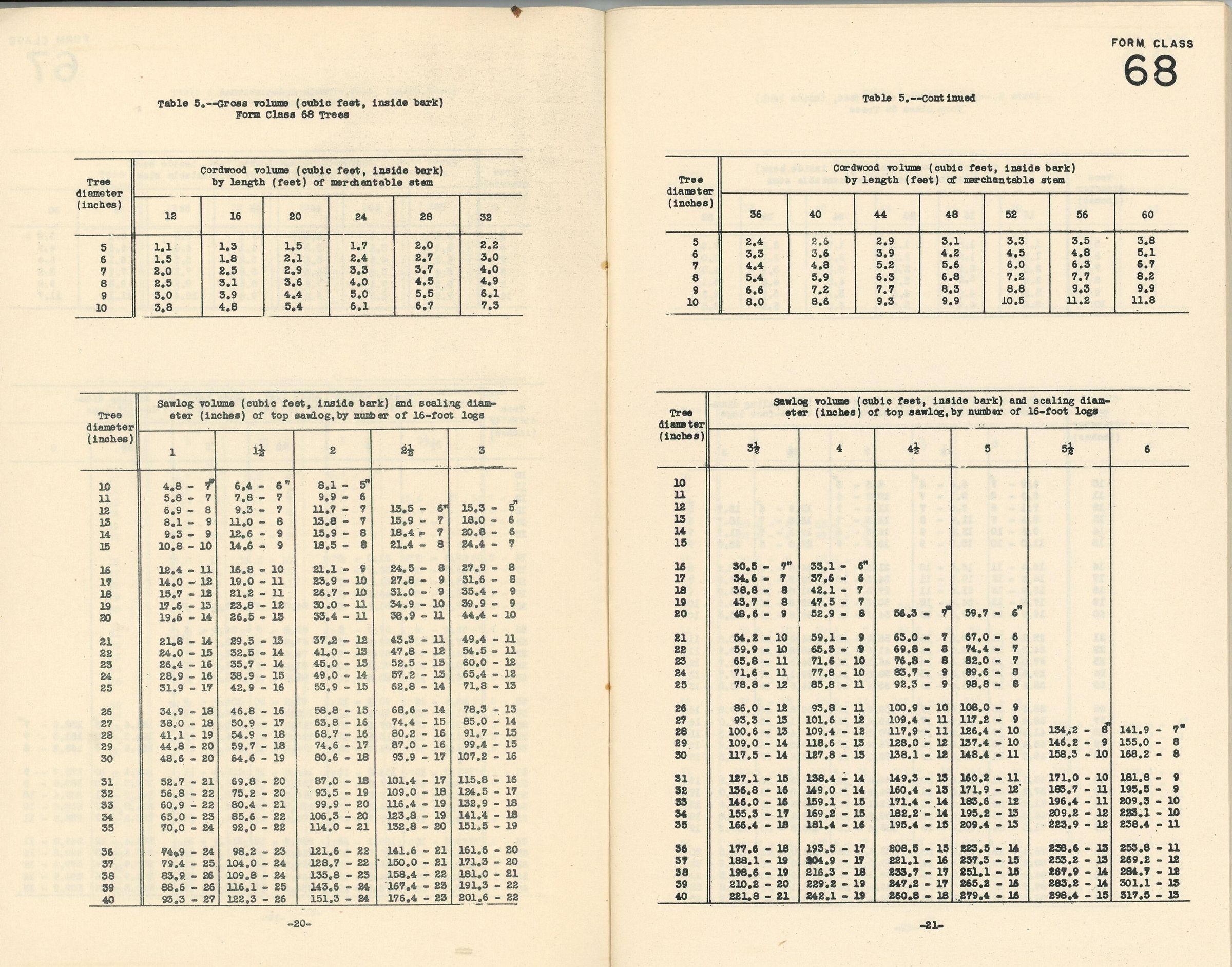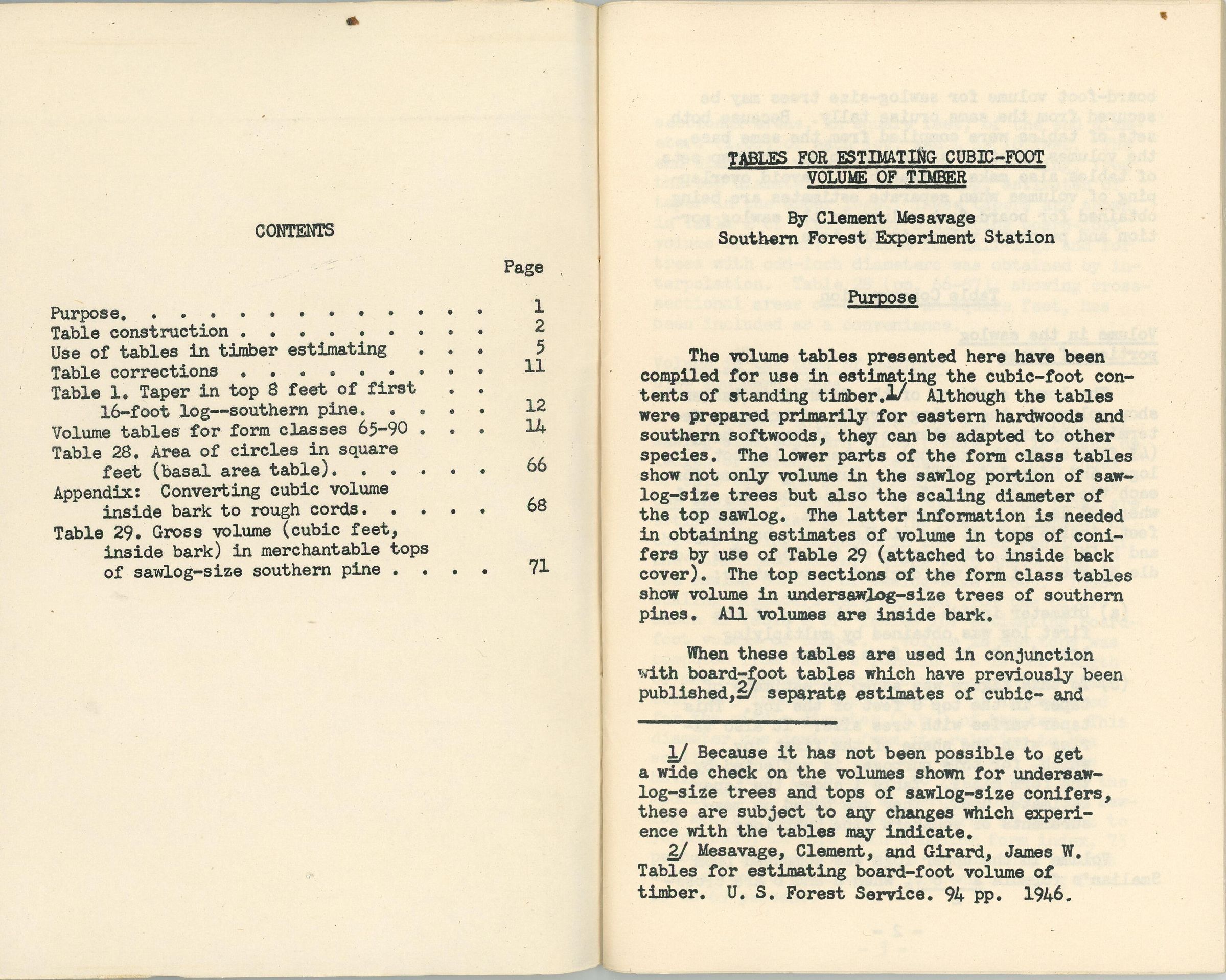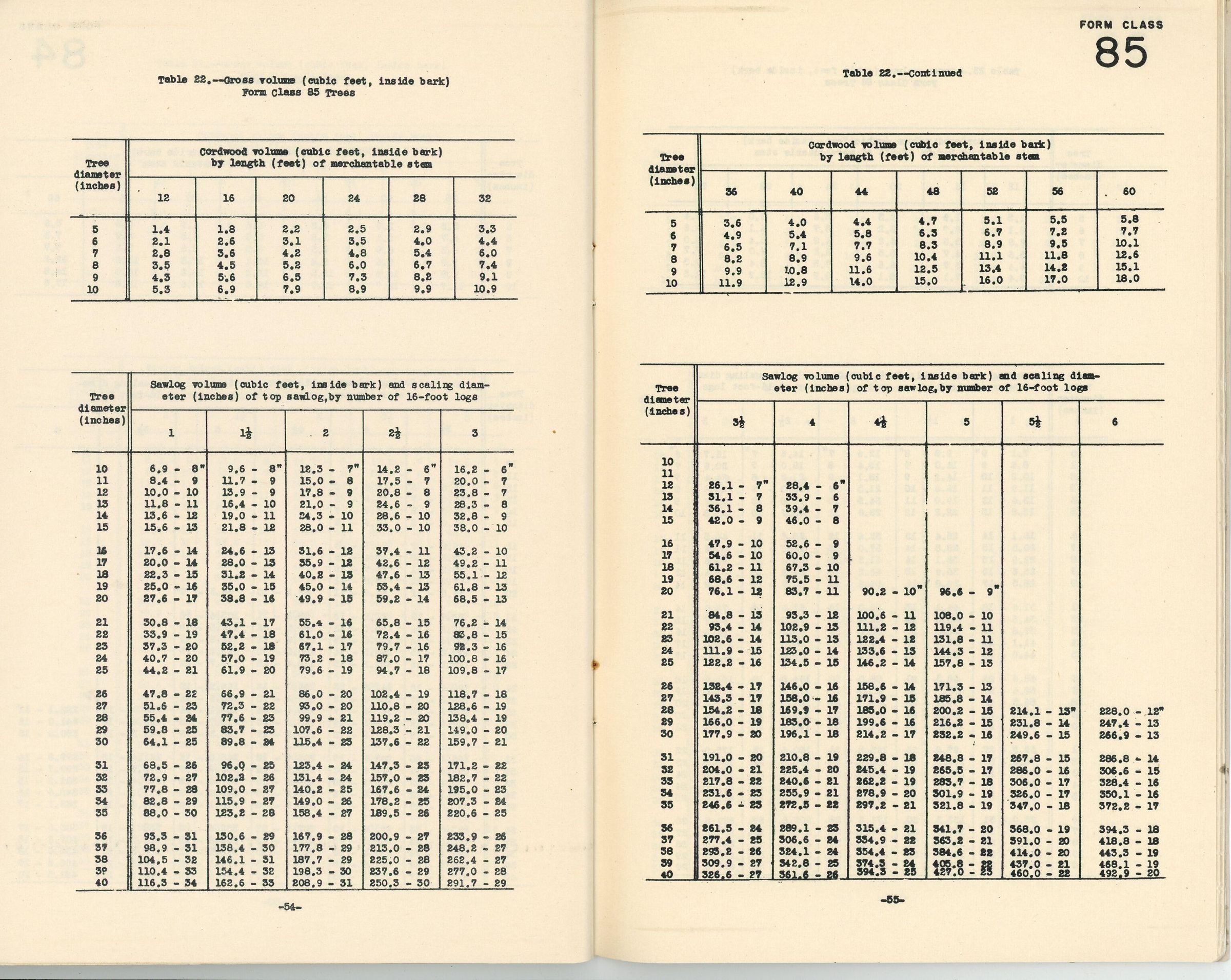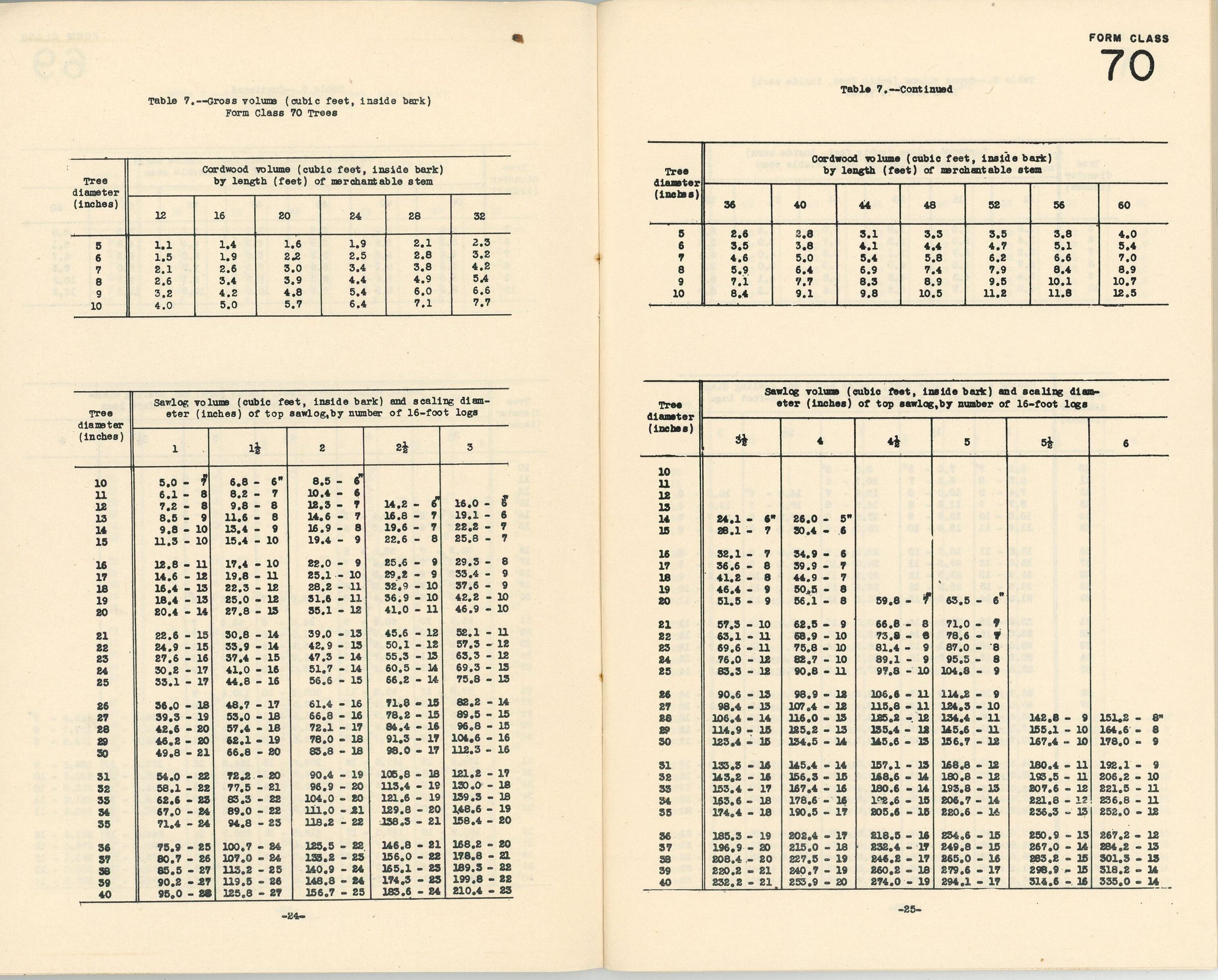 complied for the use of estimating the cubic-foot of standing timber; mainly for southern softwoods and eastern hardwoodsCollection
