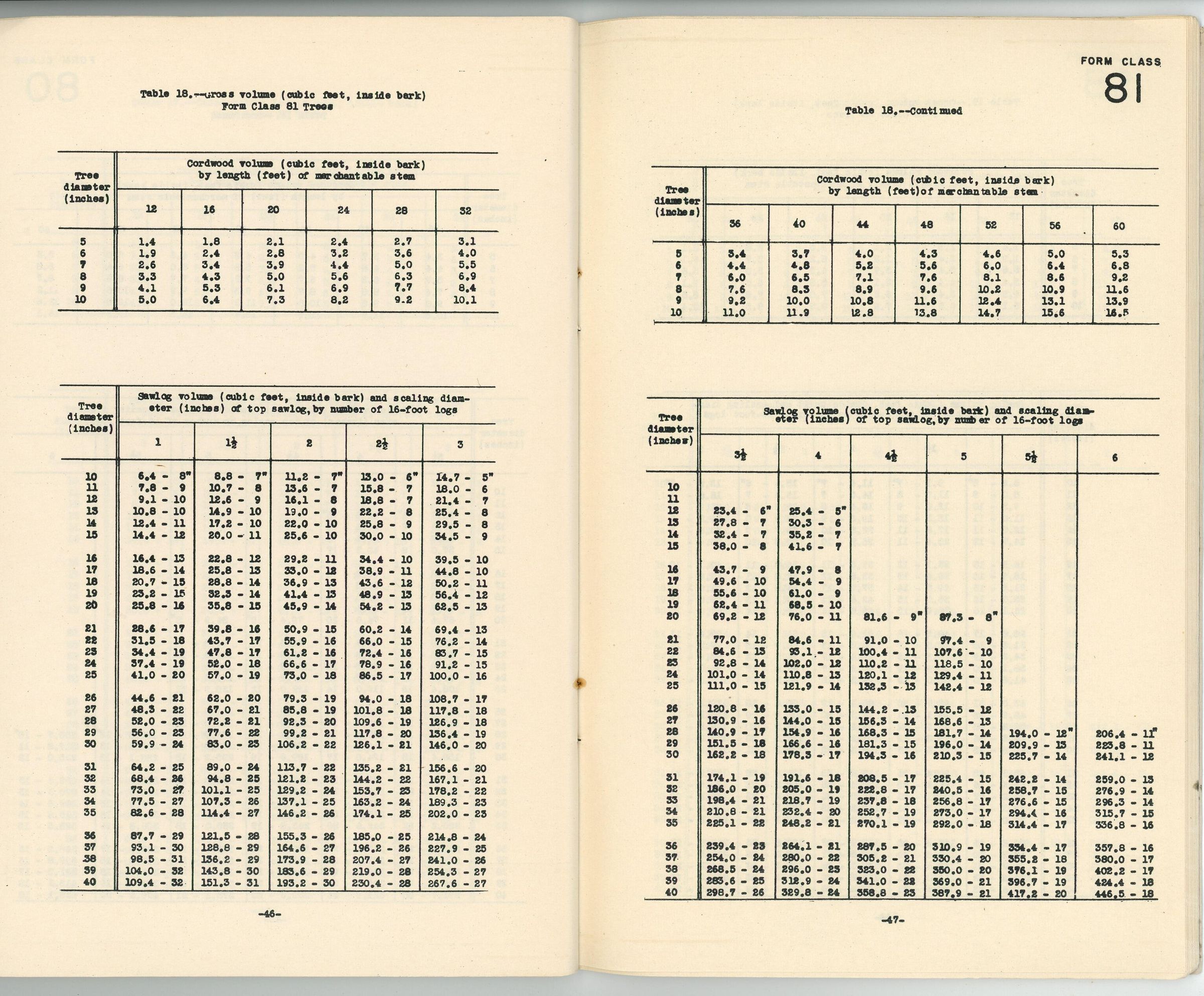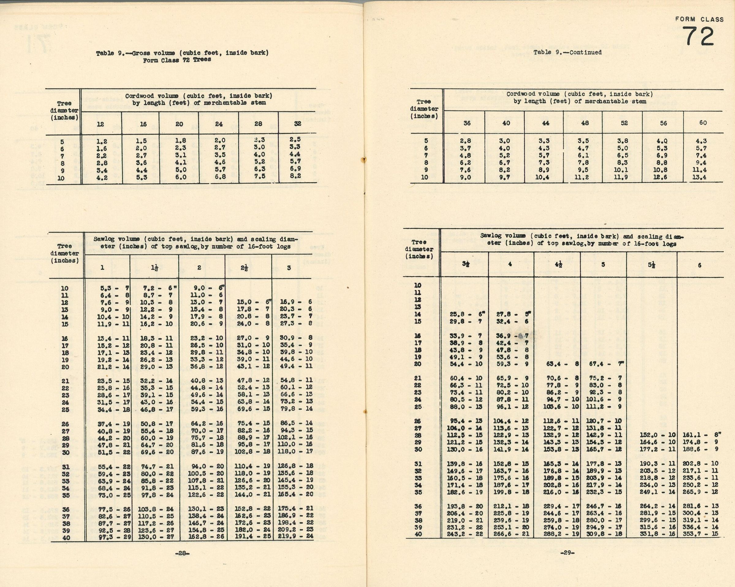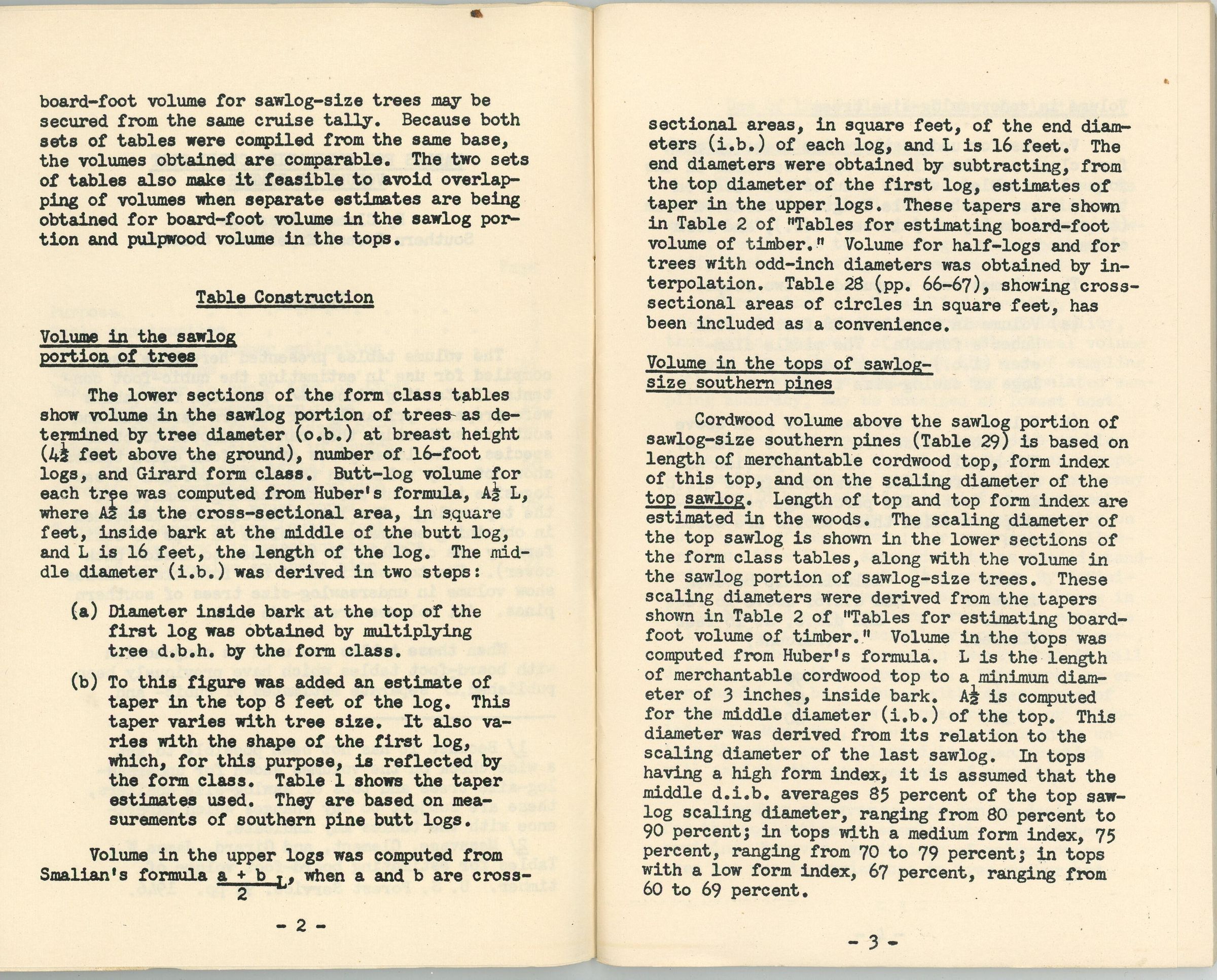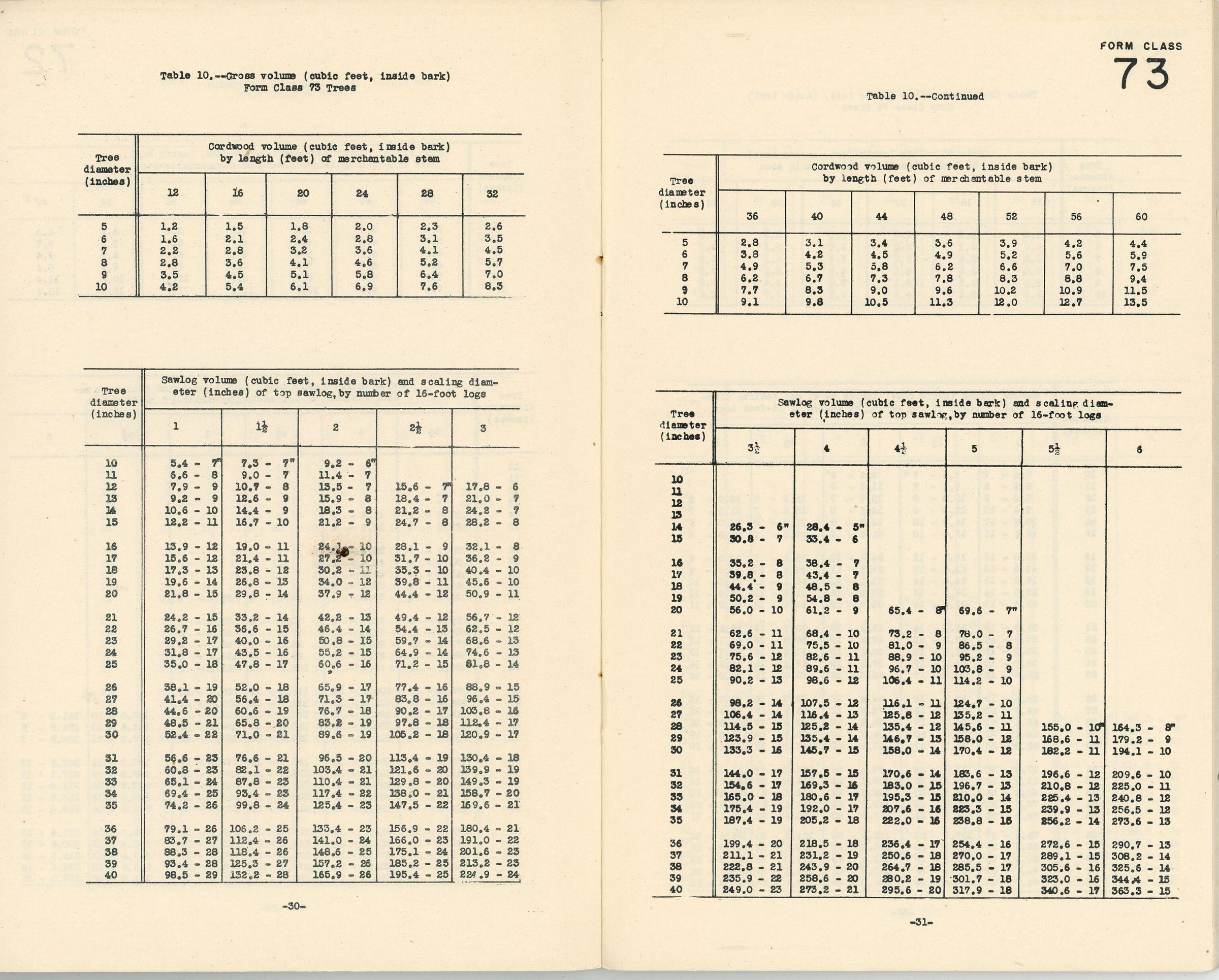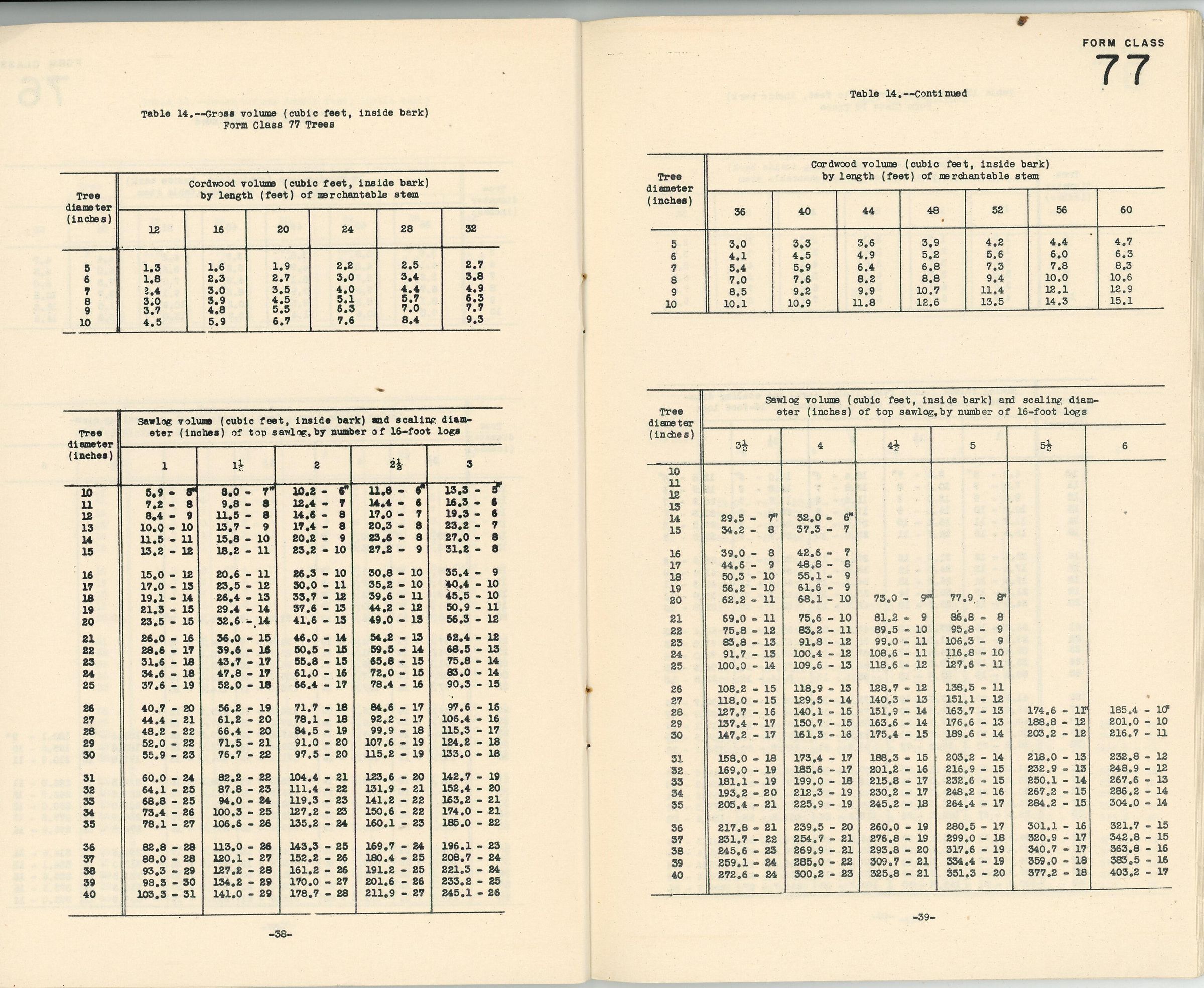 complied for the use of estimating the cubic-foot of standing timber; mainly for southern softwoods and eastern hardwoodsCollection