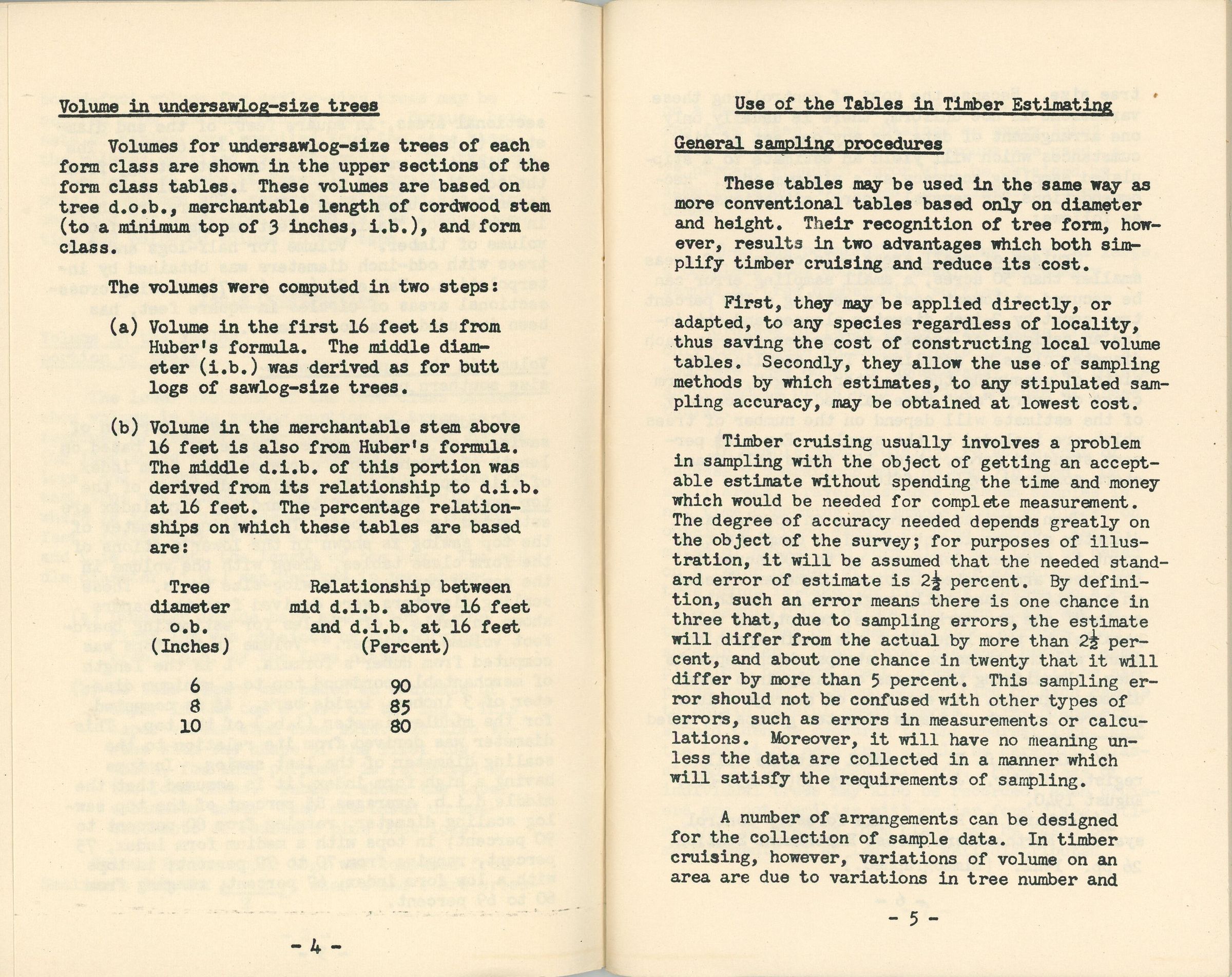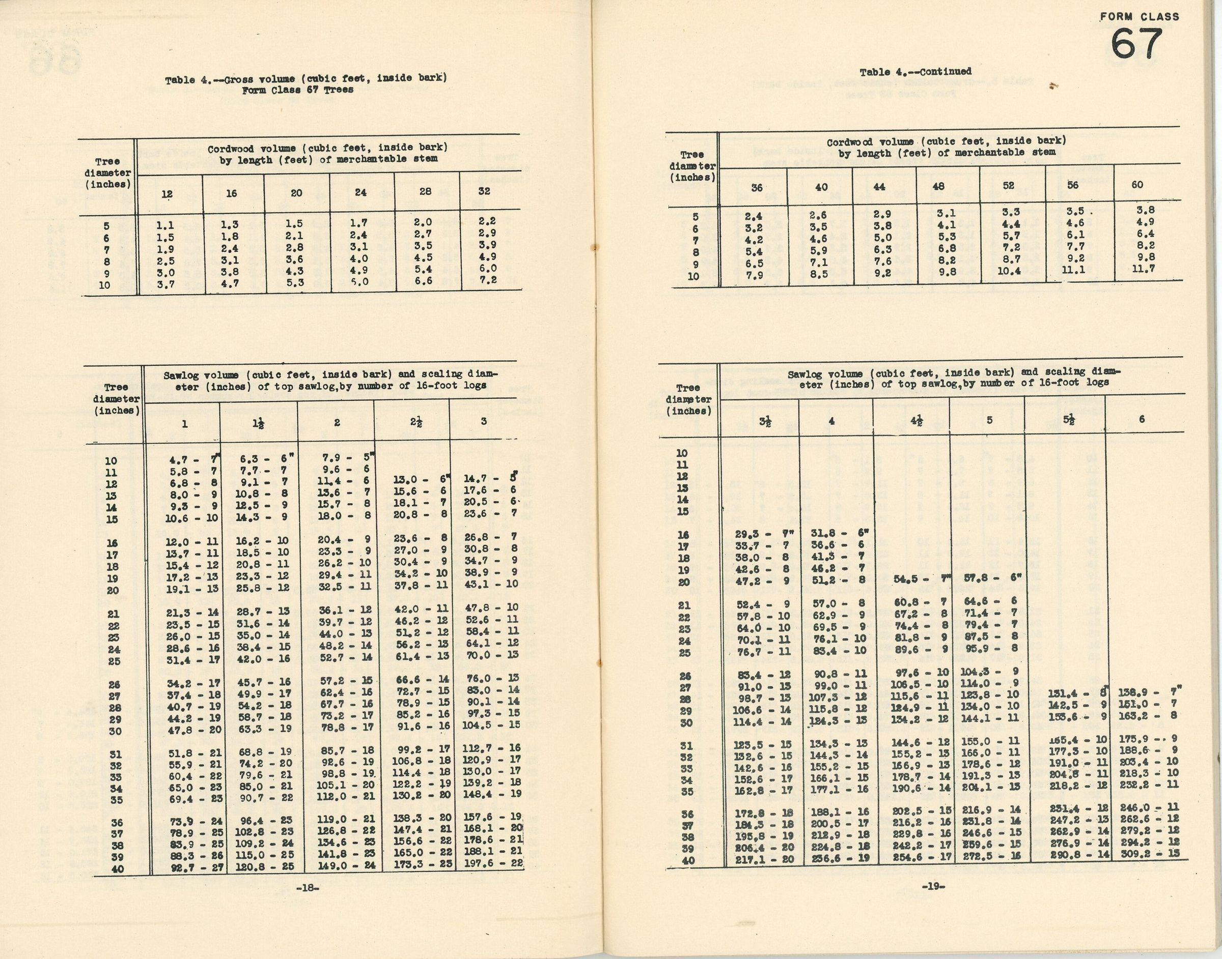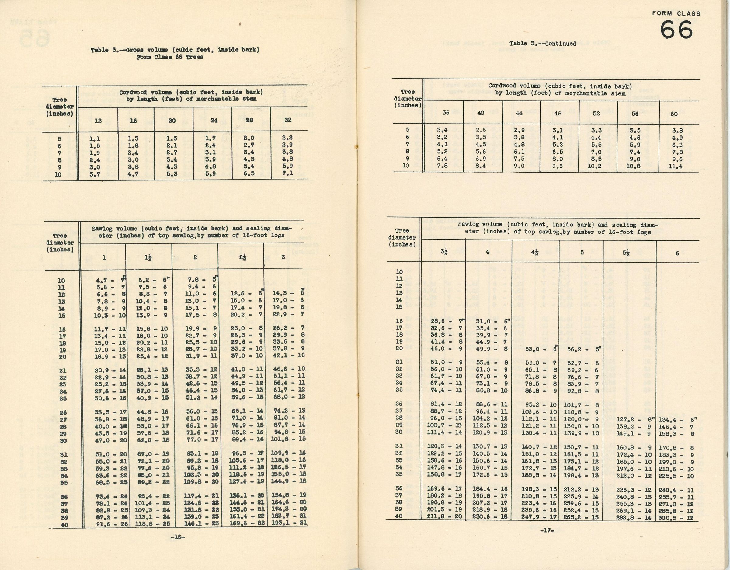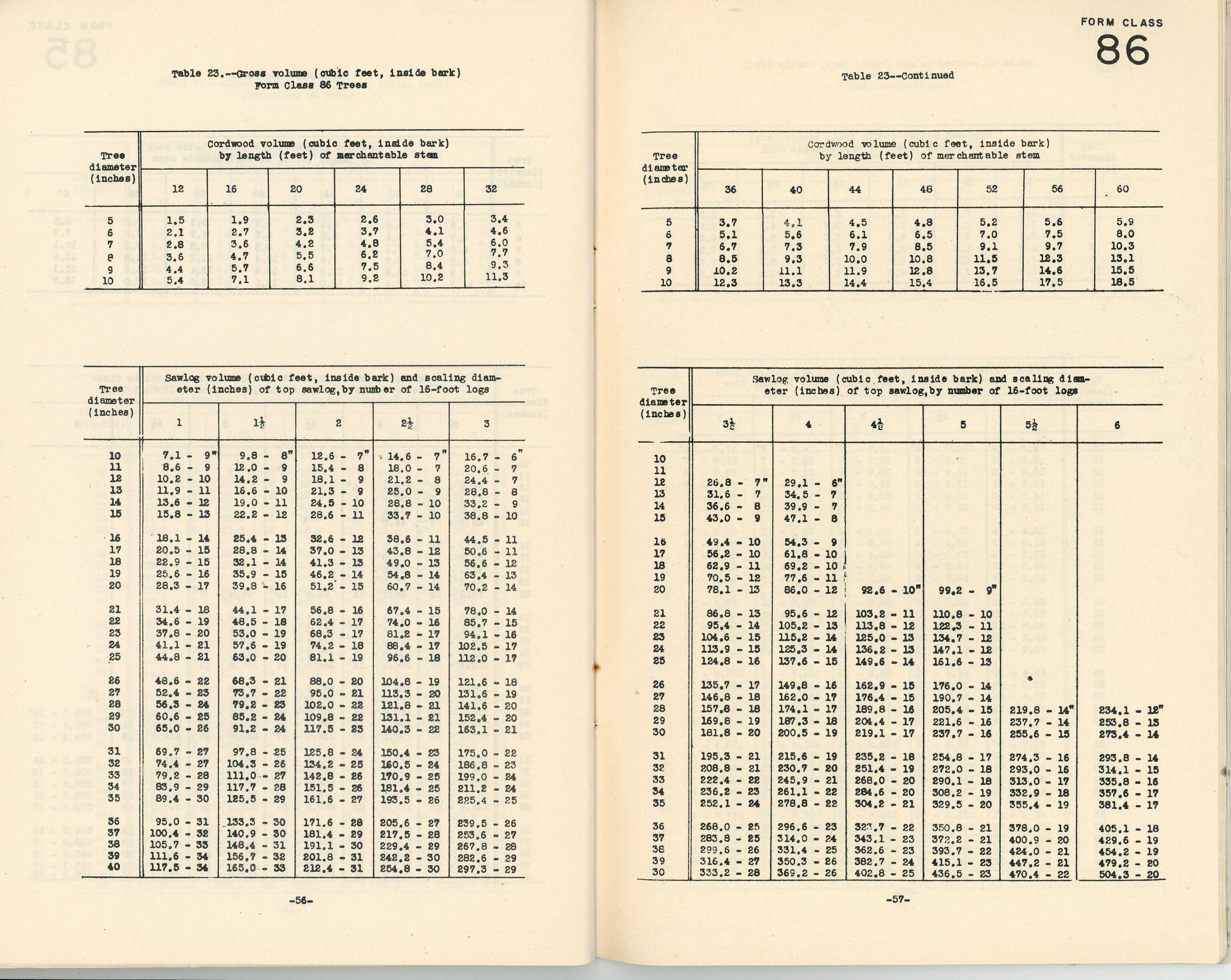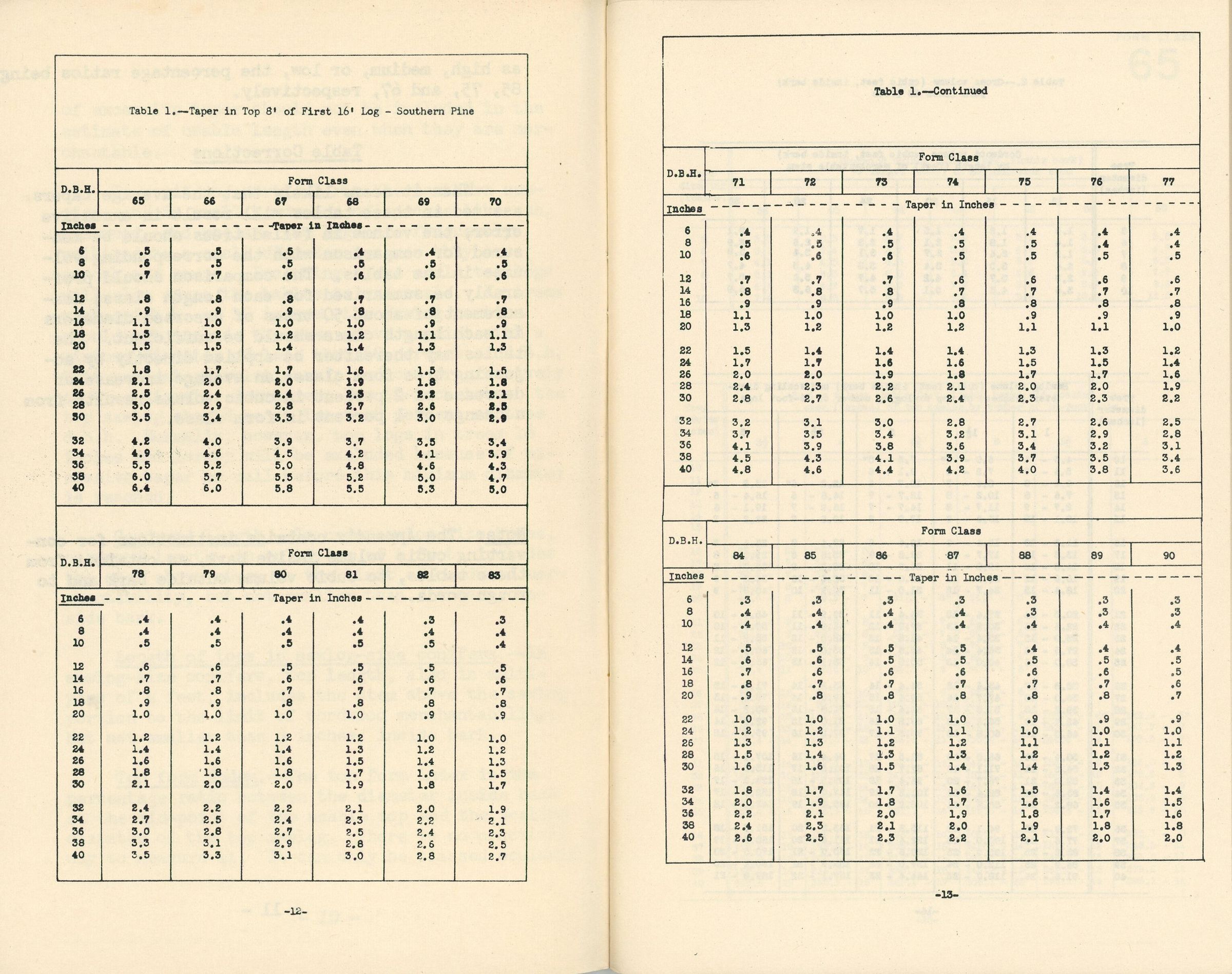 complied for the use of estimating the cubic-foot of standing timber; mainly for southern softwoods and eastern hardwoodsCollection