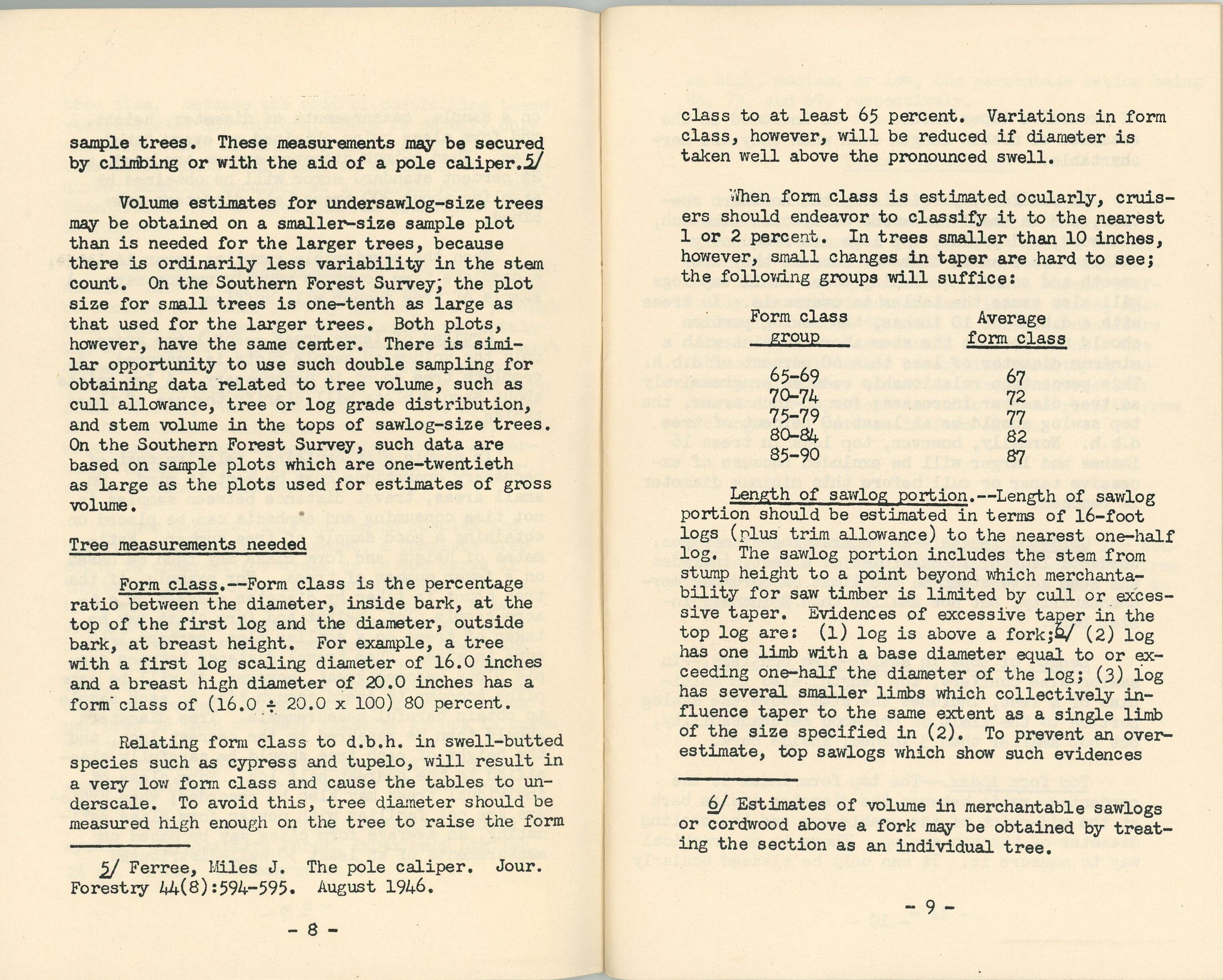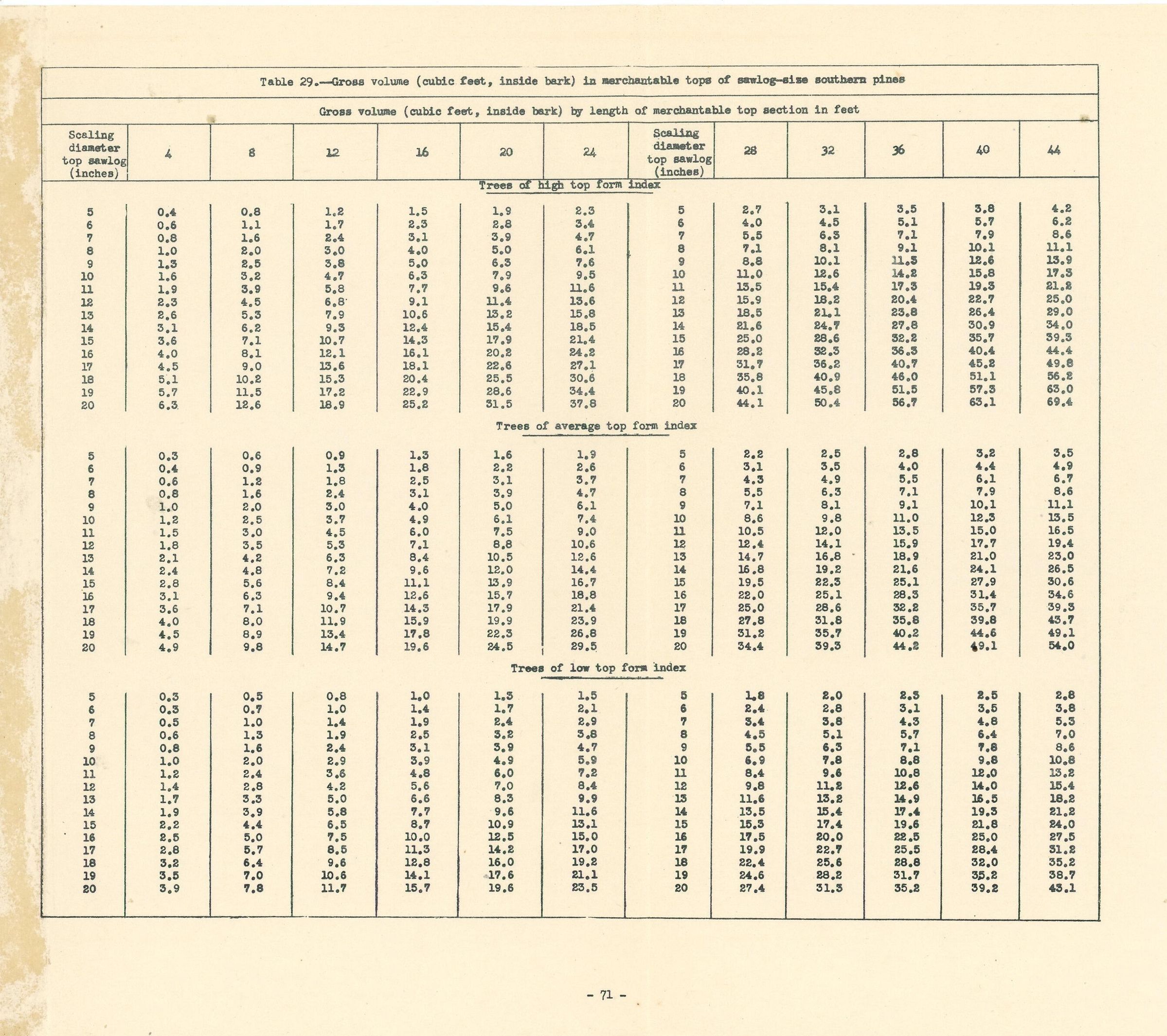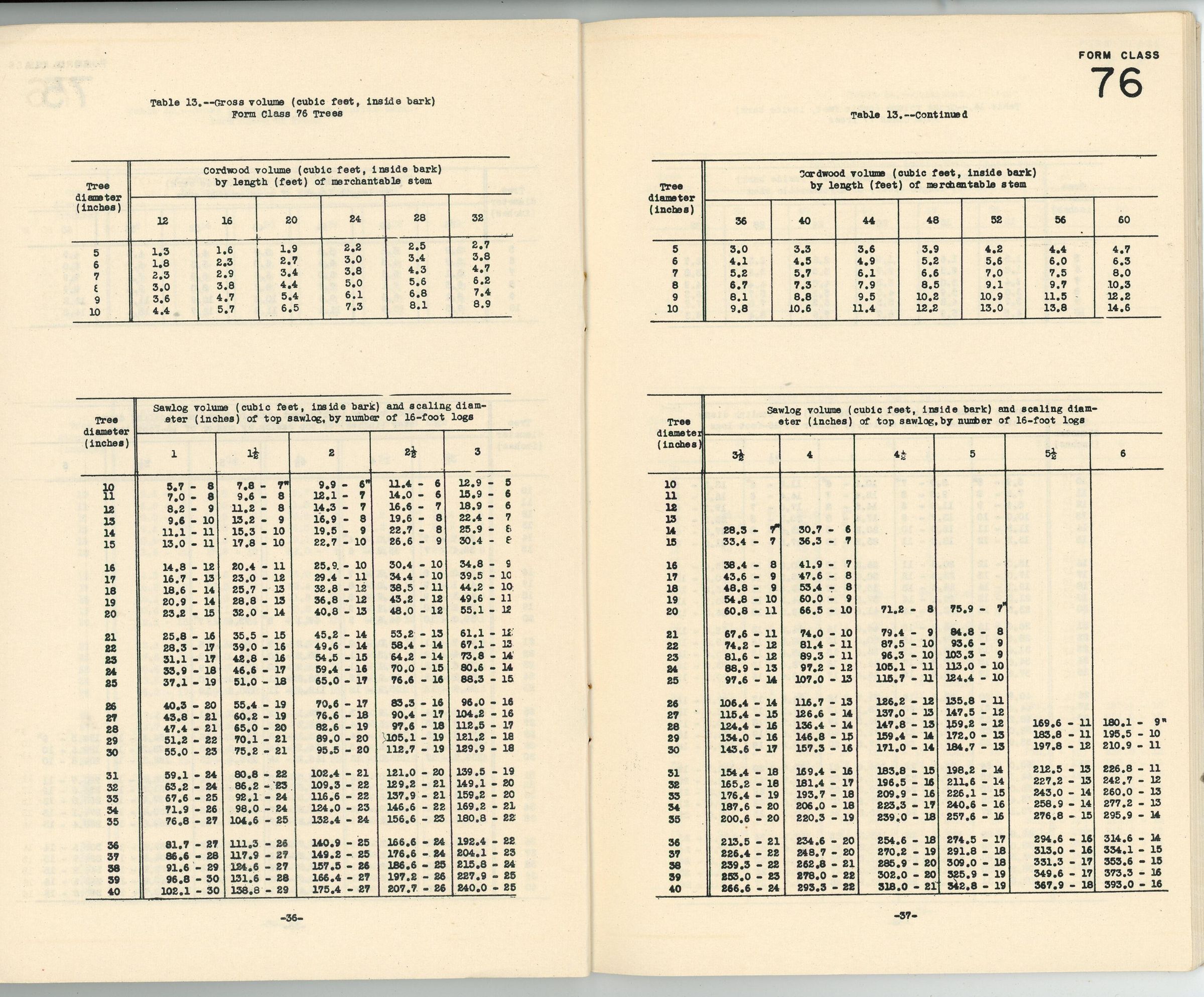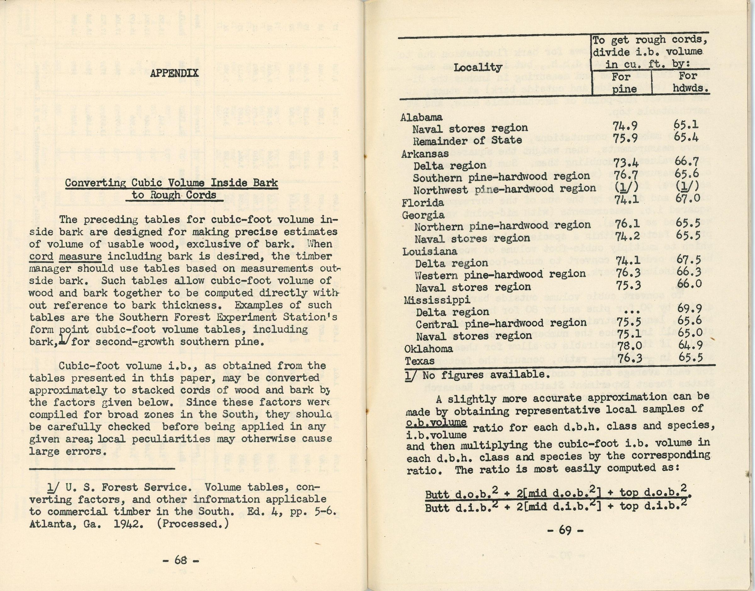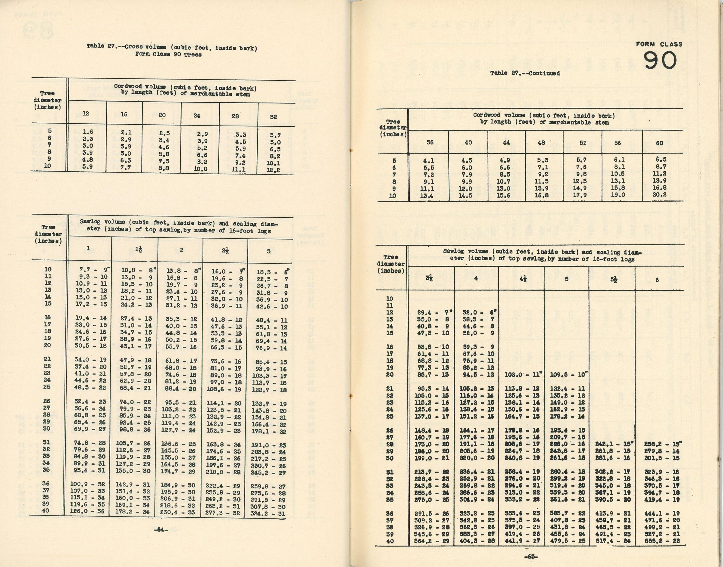 complied for the use of estimating the cubic-foot of standing timber; mainly for southern softwoods and eastern hardwoodsCollection