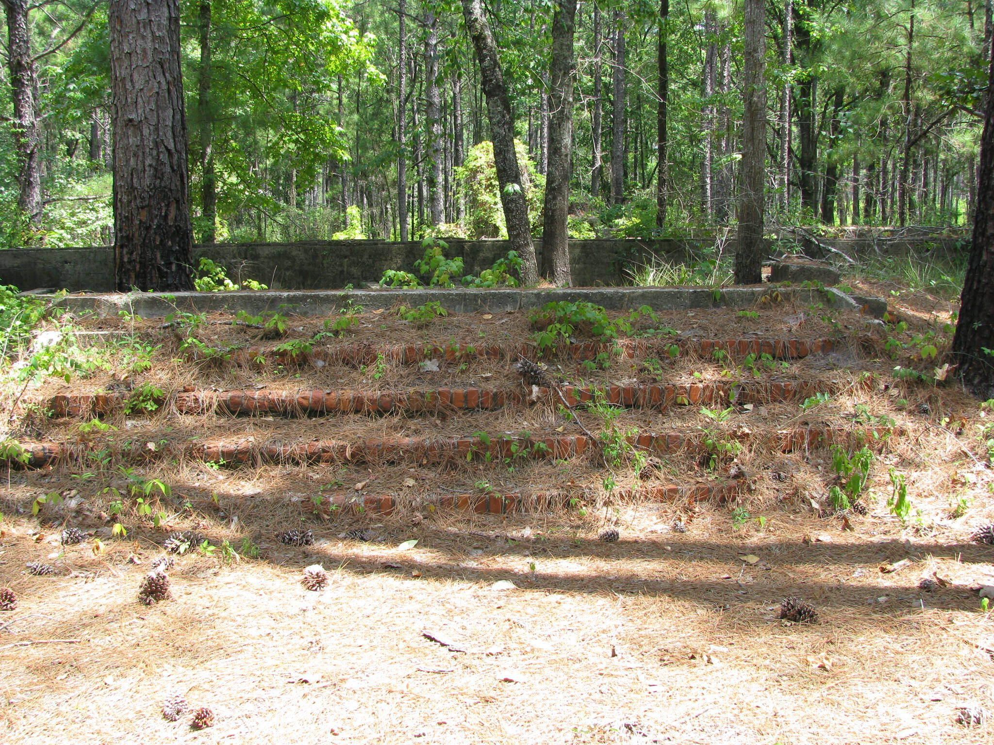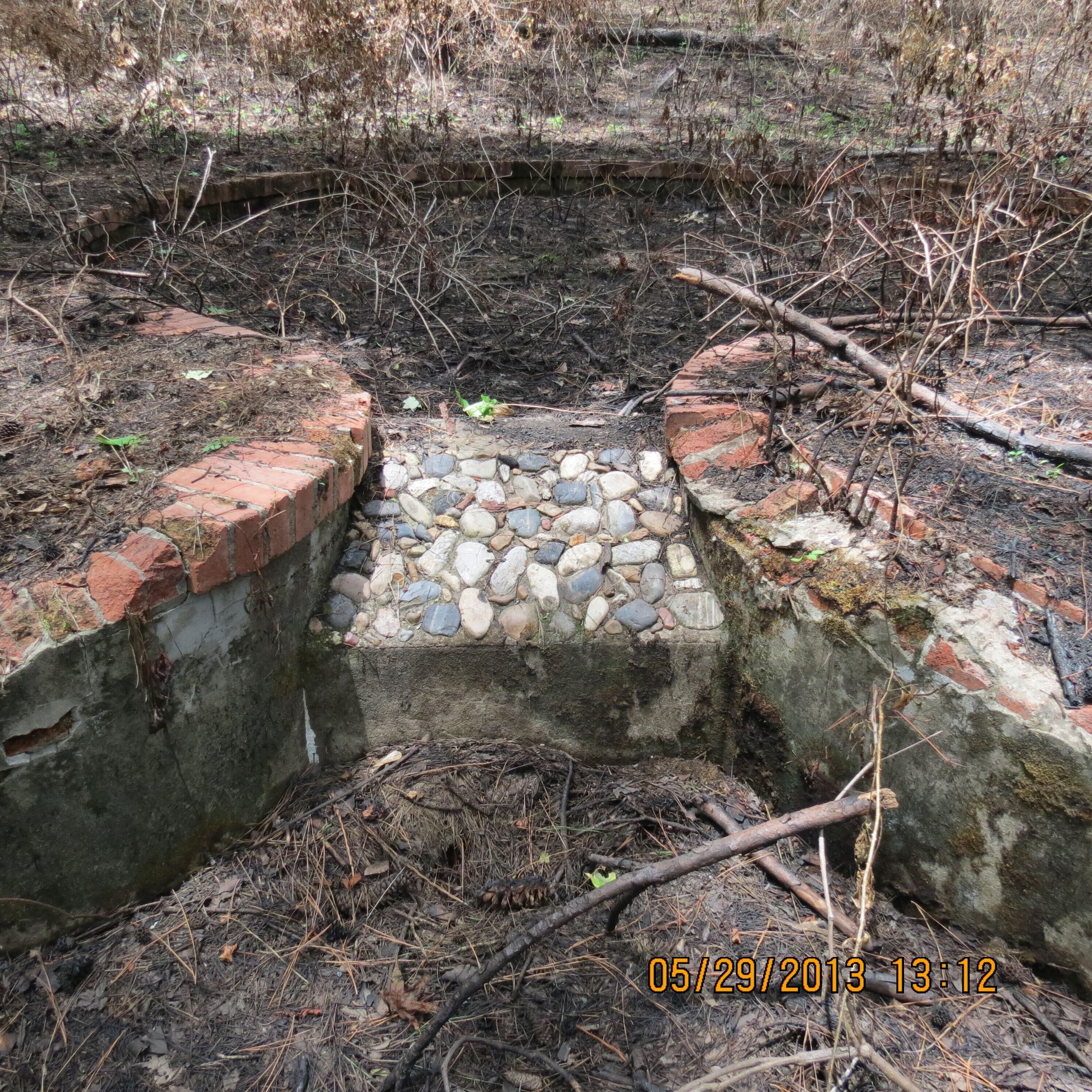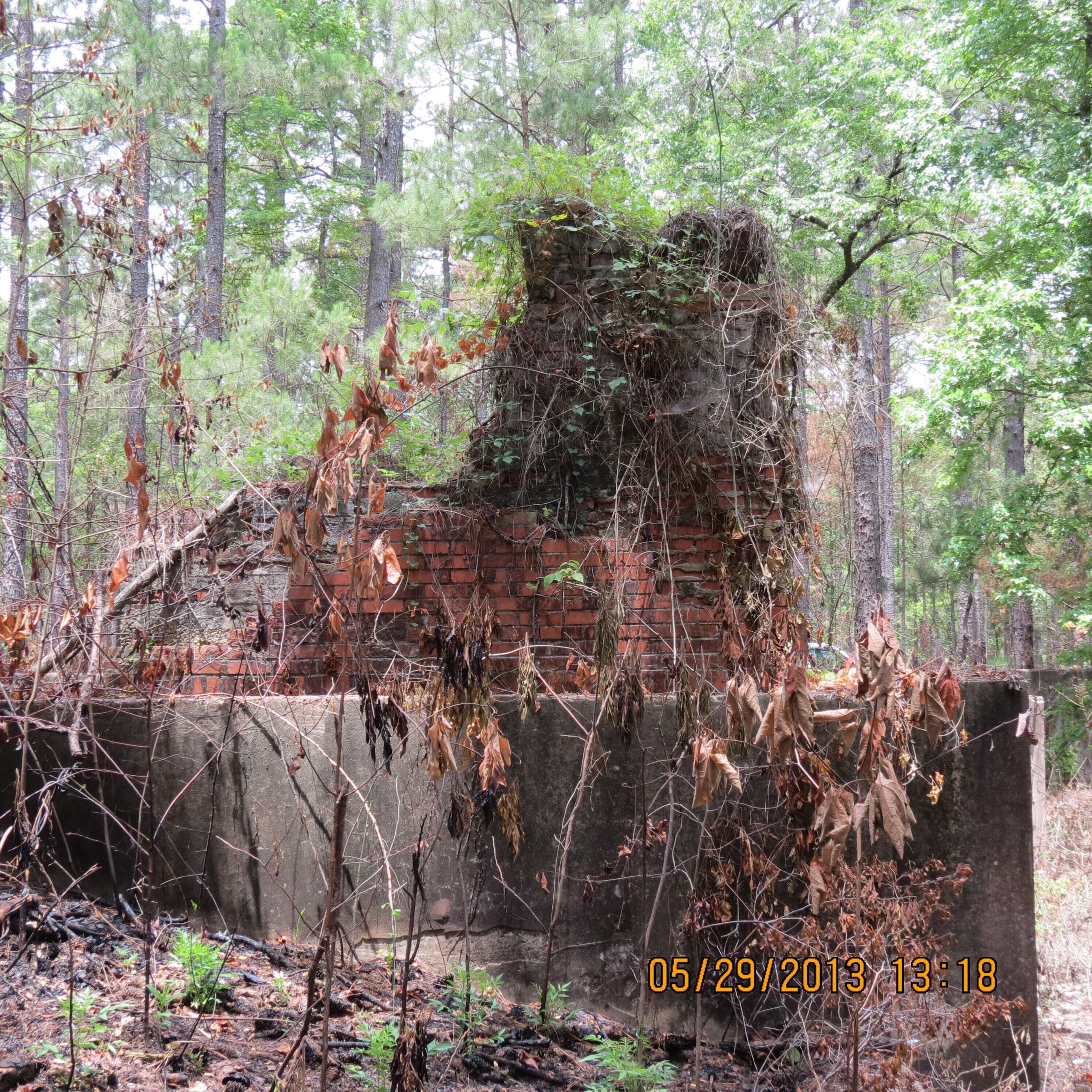photo from Camp Claiborne book of the officers club; the ruins of the officers' club at West Camp Claiborne; the chimneys and fore places; foundation; steps on entrance and side entrance; veranda and supports; reflecting pools; swimming pool; pipes and ventsPhotograph Details
