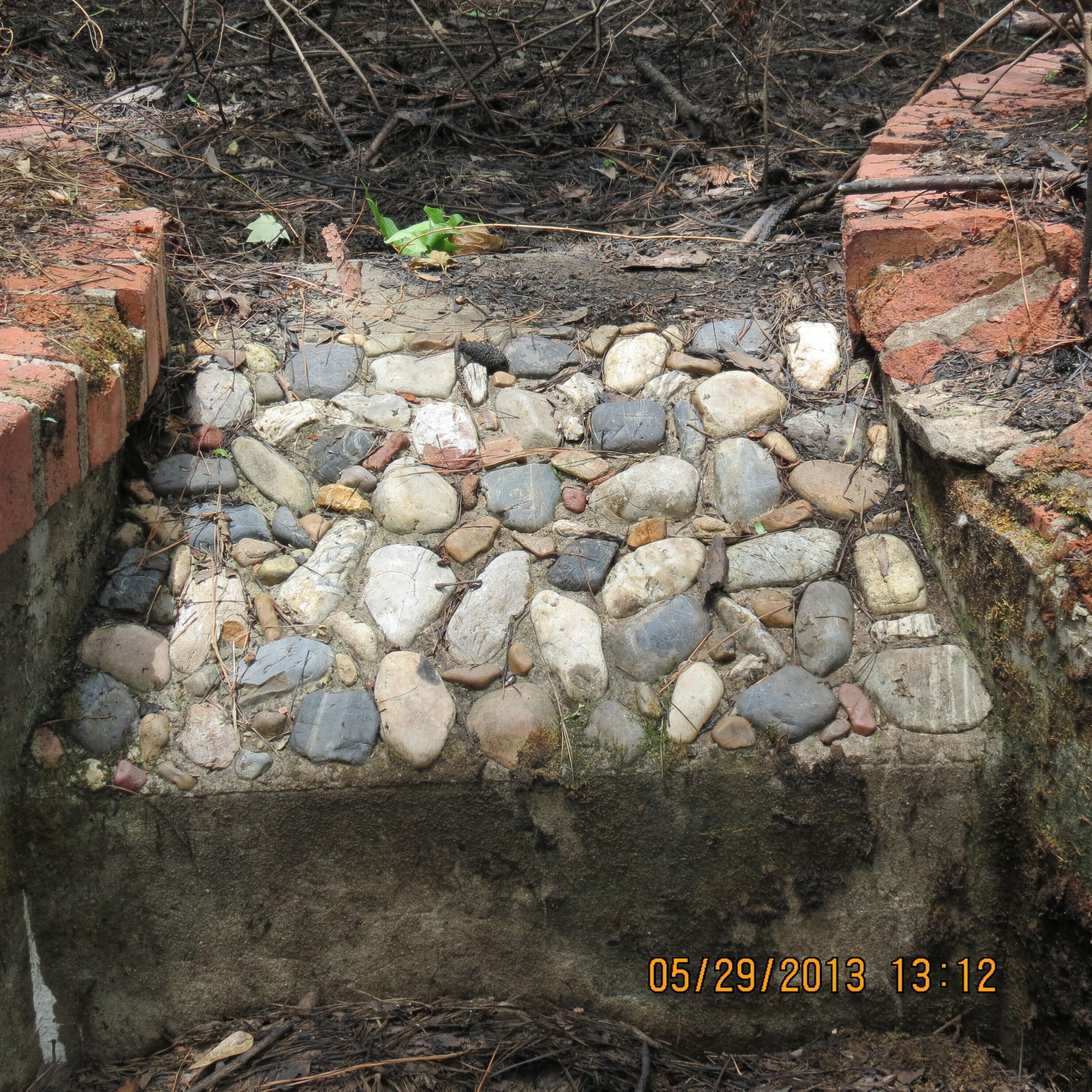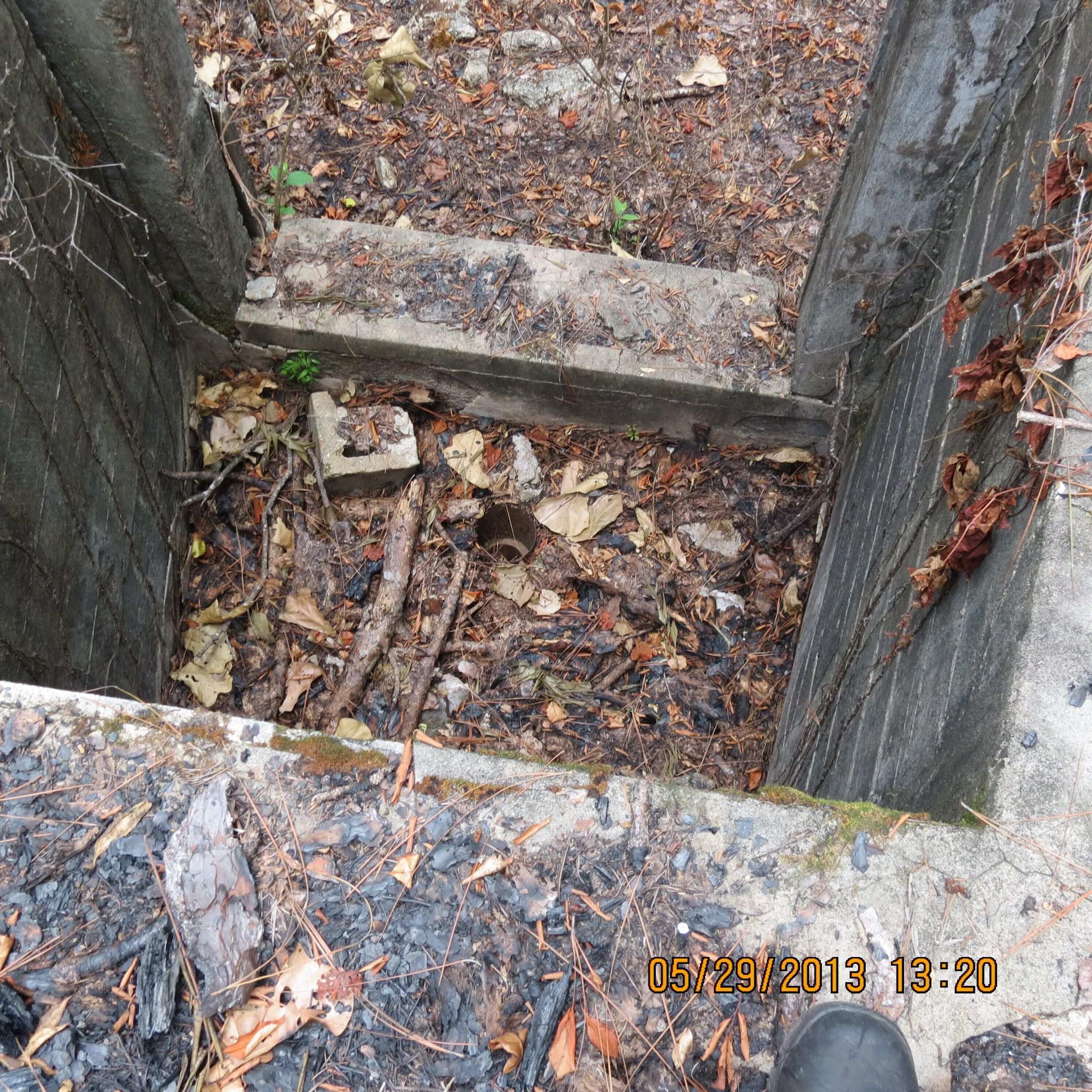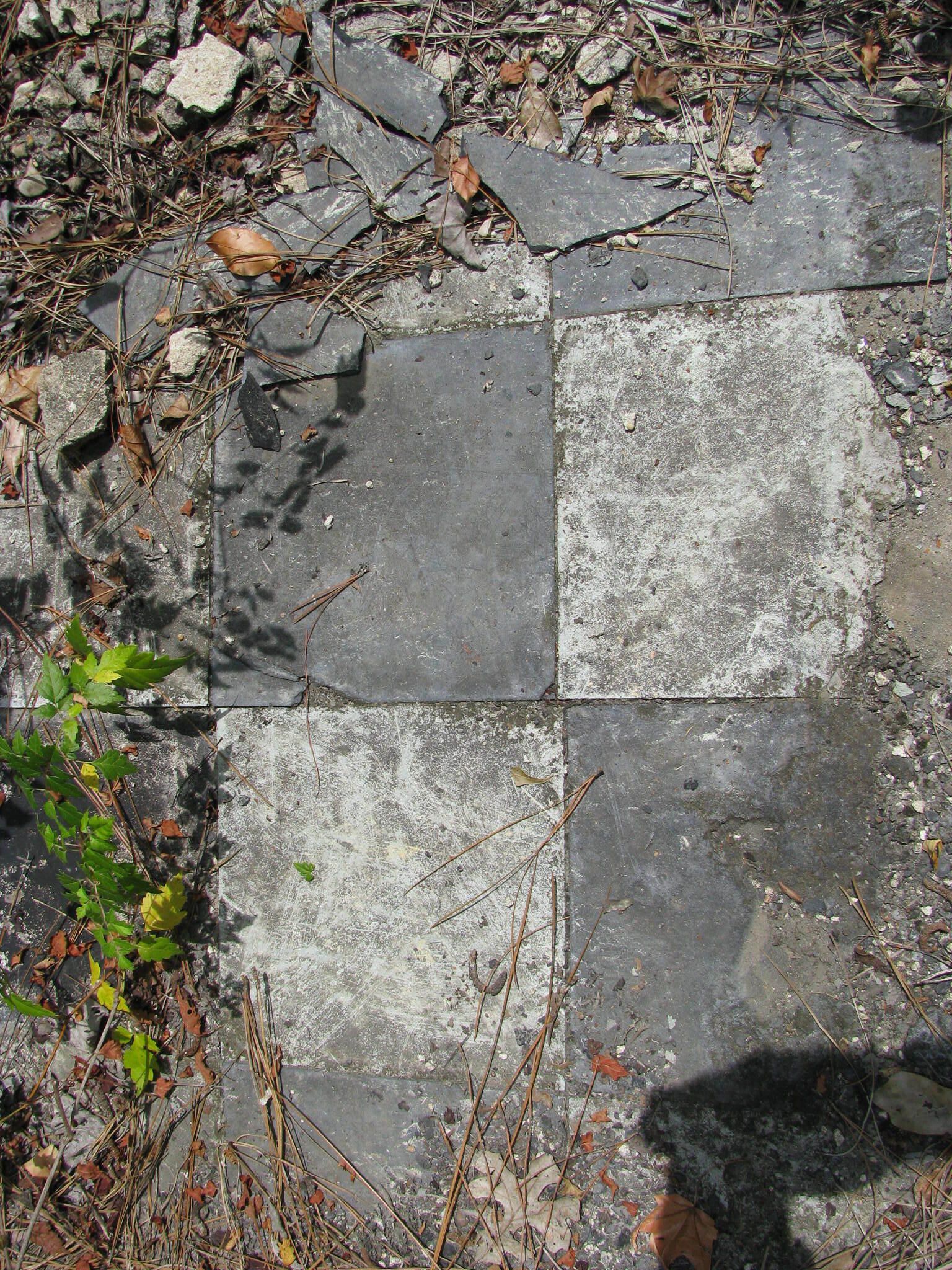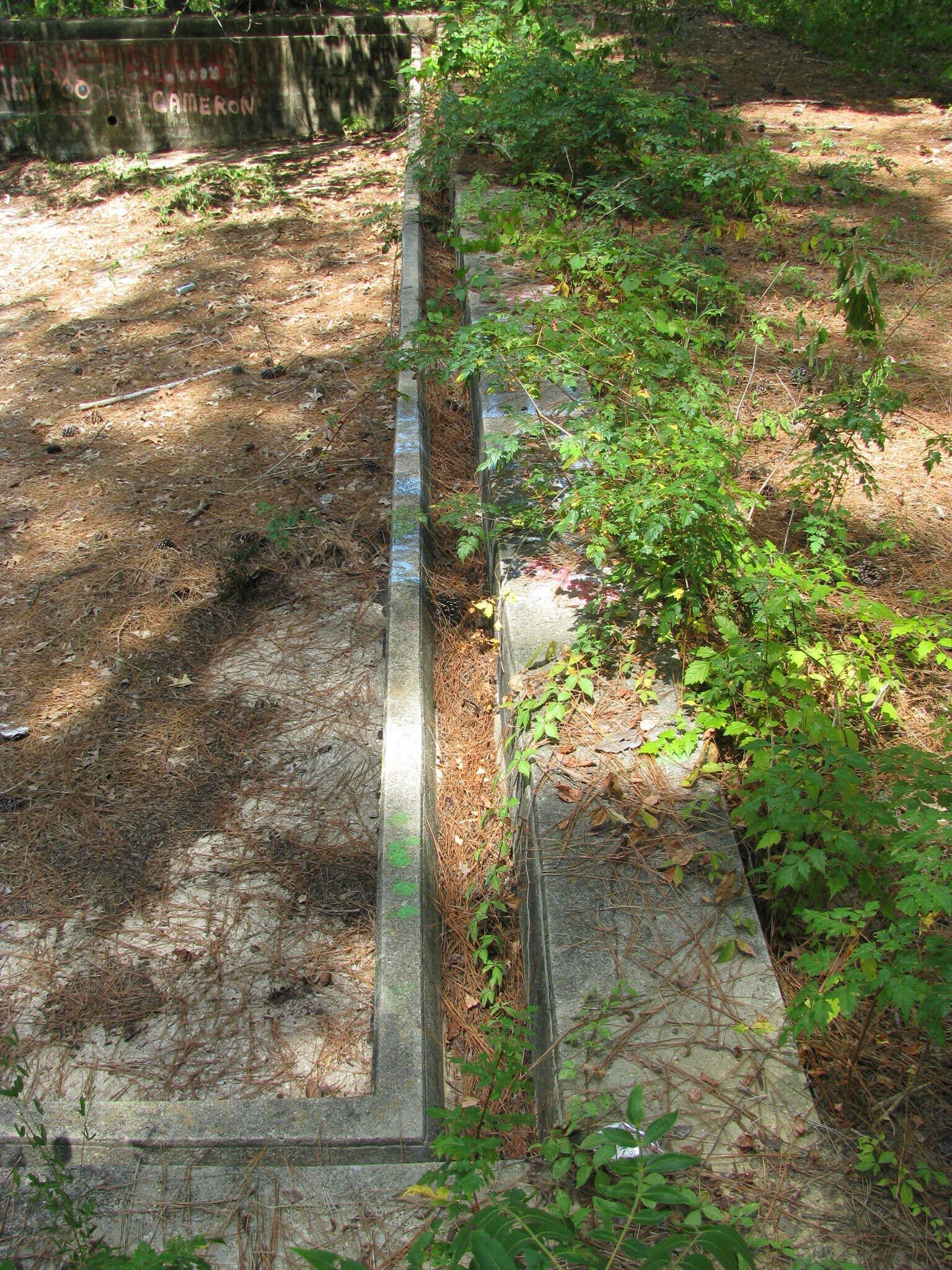 photo from Camp Claiborne book of the officers club; the ruins of the officers' club at West Camp Claiborne; the chimneys and fore places; foundation; steps on entrance and side entrance; veranda and supports; reflecting pools; swimming pool; pipes and ventsPhotograph Details