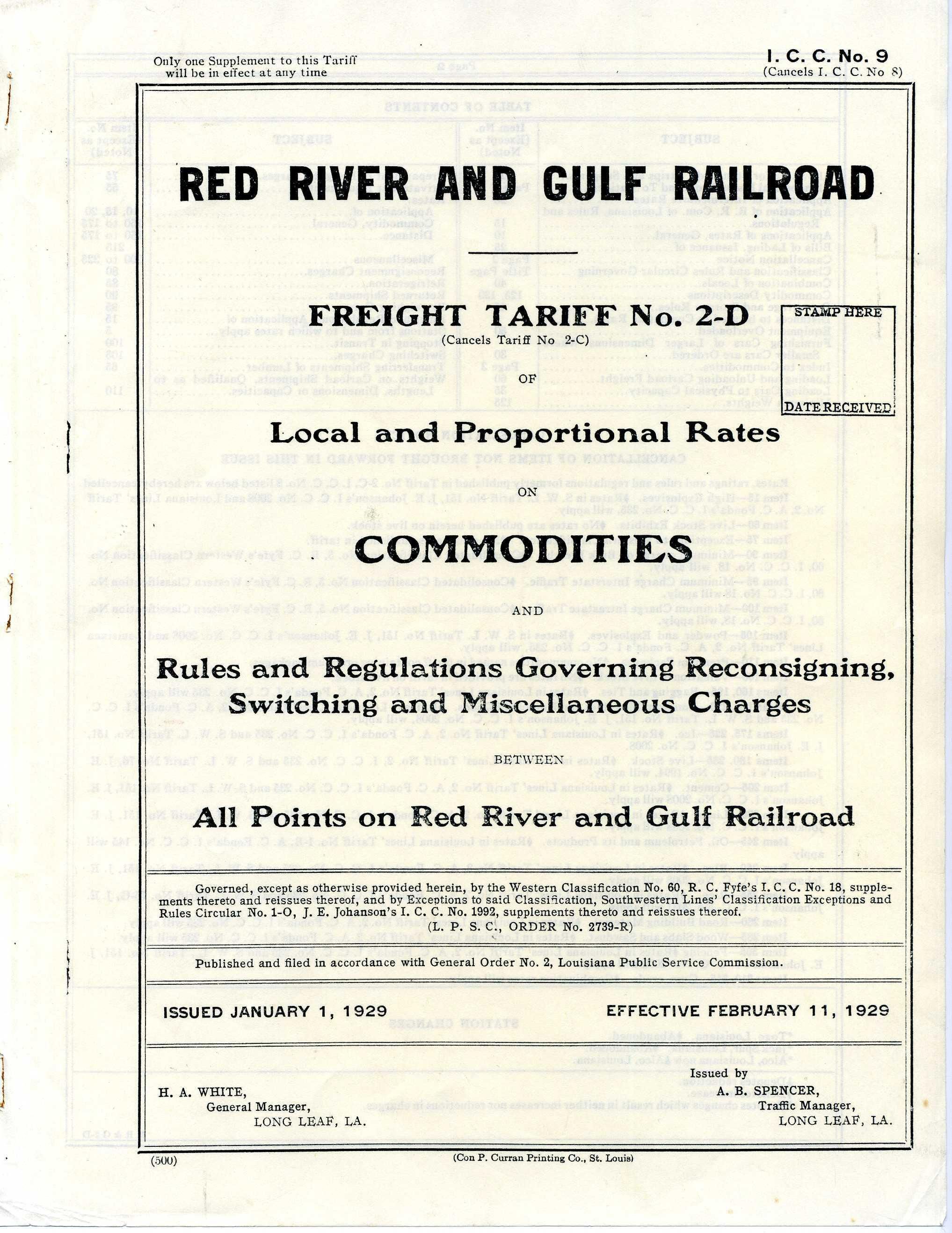 Red River & Gulf Railroad Freight Tariff No. 2-DEntry/Object ID