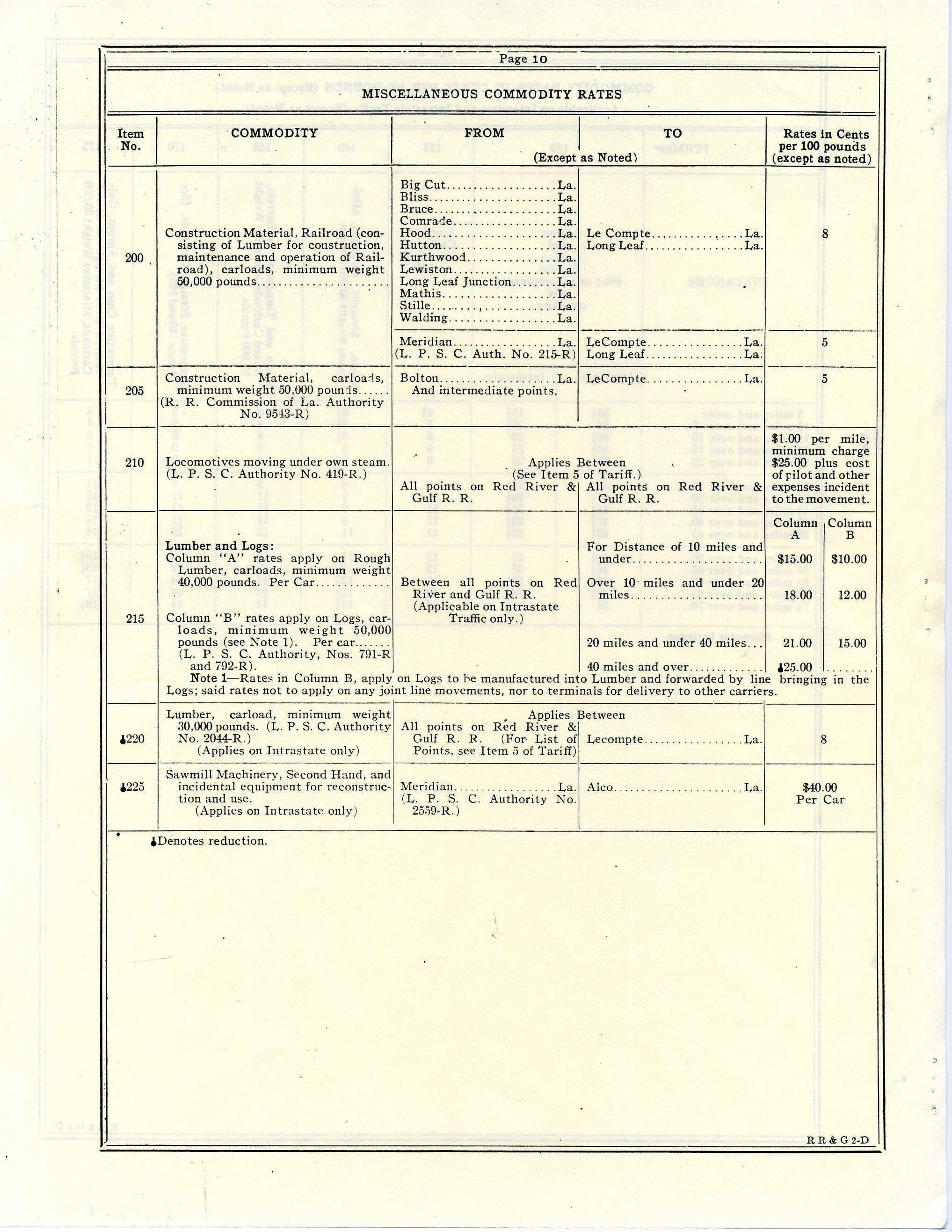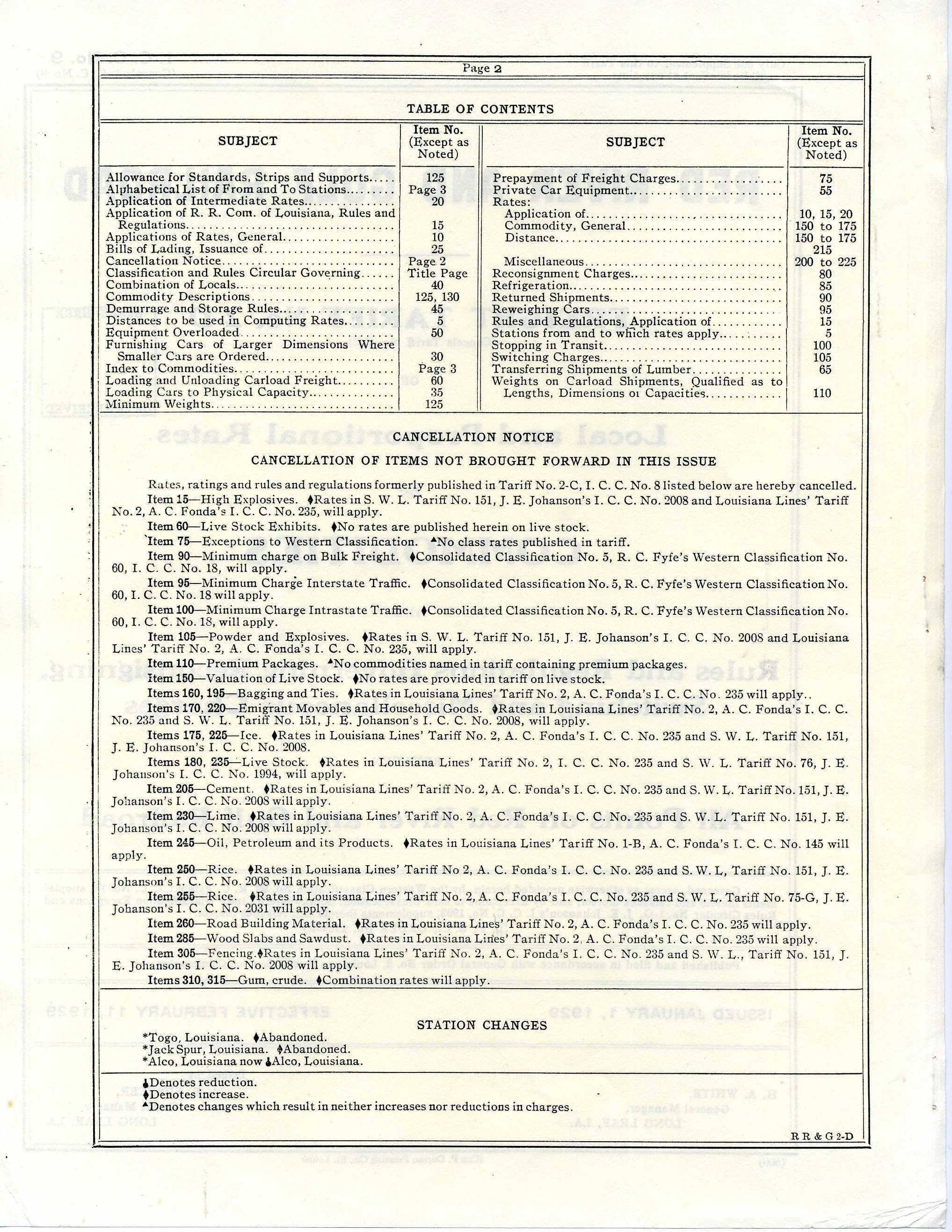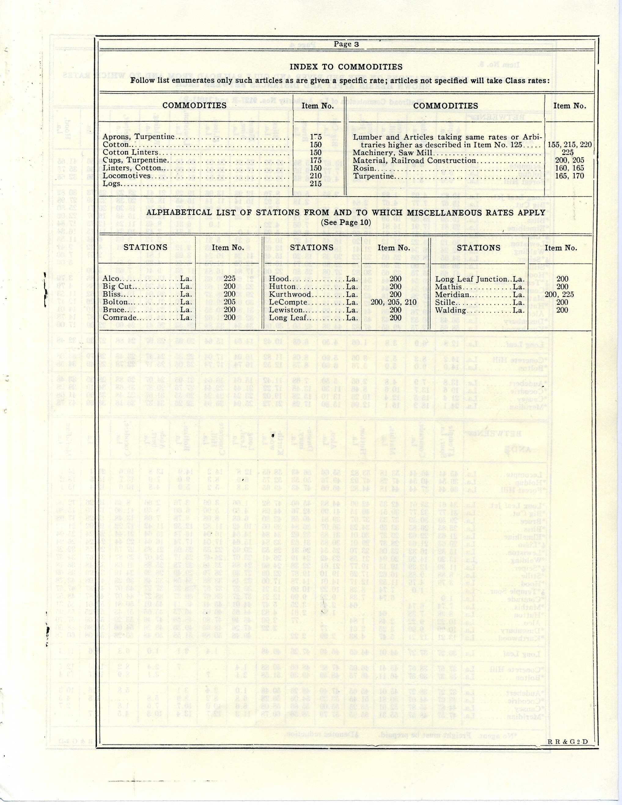RR&G Freight tariff 1929Other Numbers