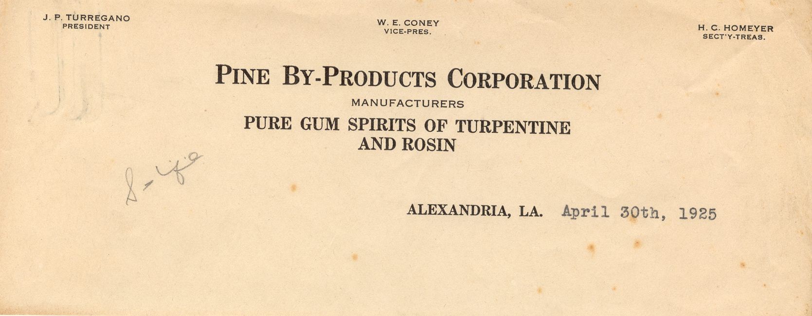 Letterhead from Pine By-Pine Products Corporation April 30, 1925Context