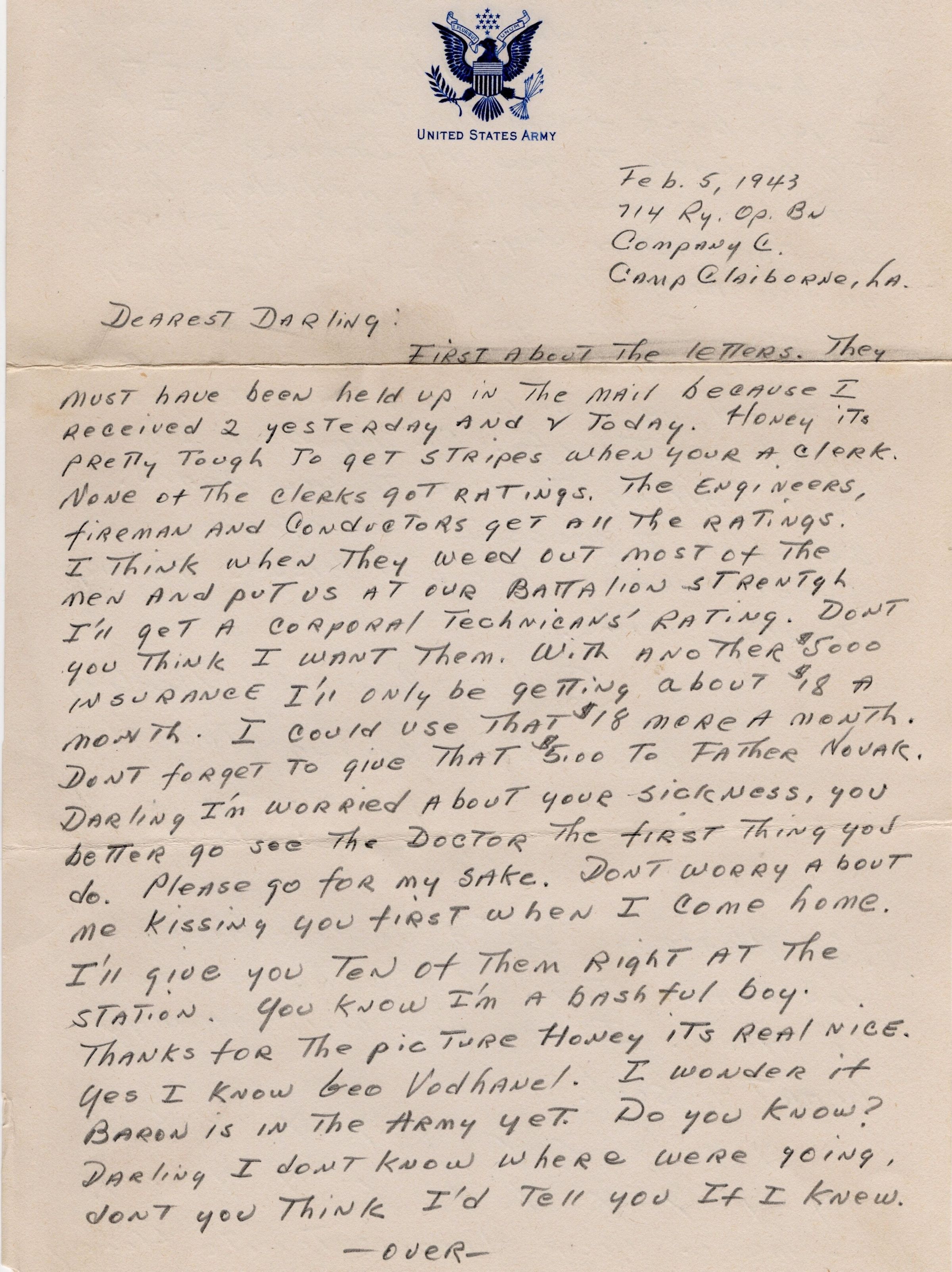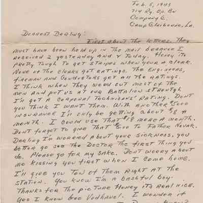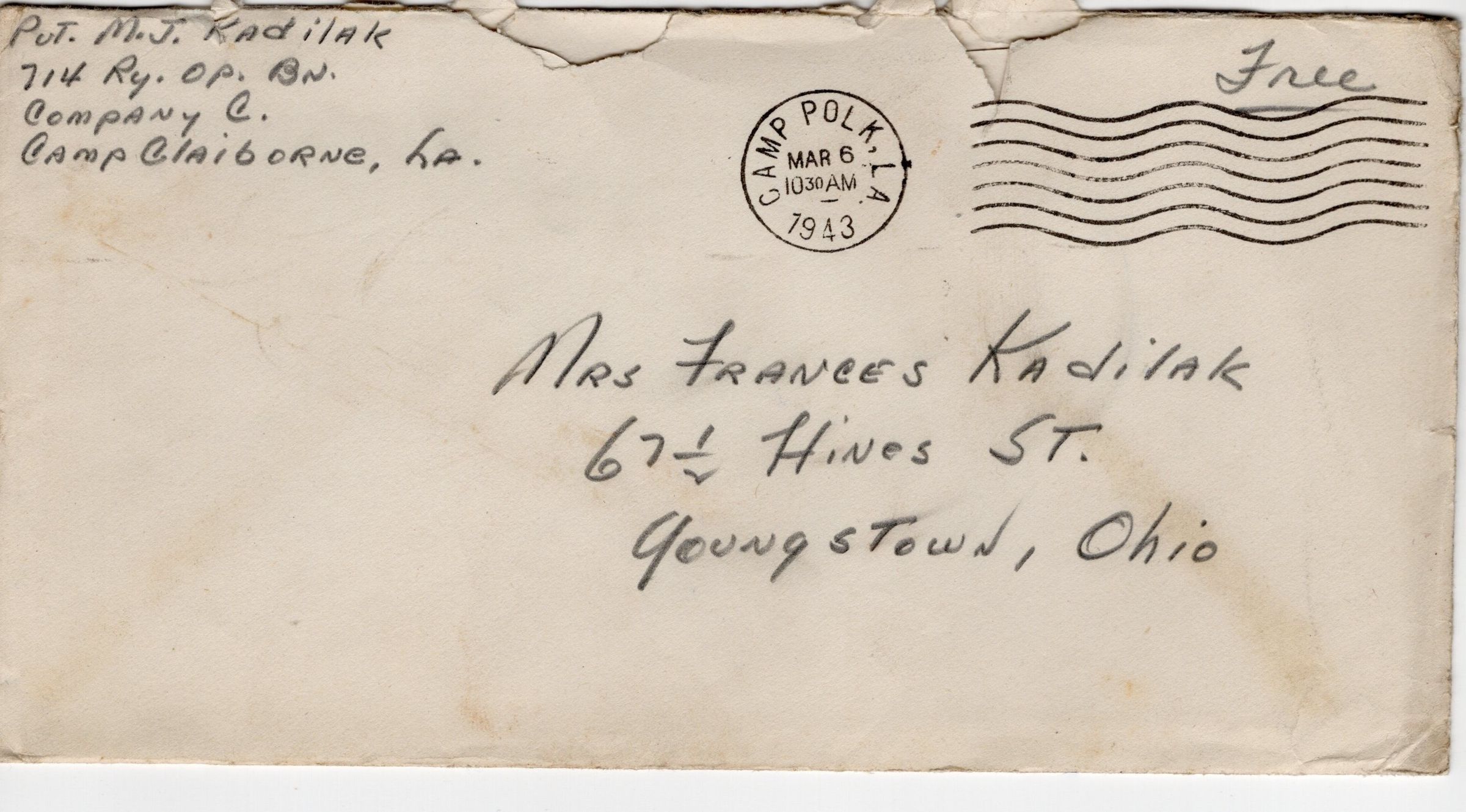 Pvt. M. J. Kadilak 1943-2-5 (possibly was supposed to be 3-5-1943)