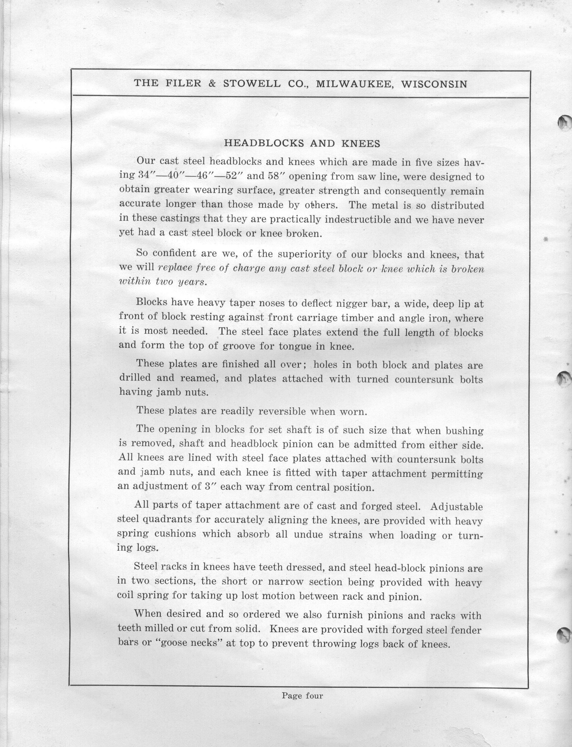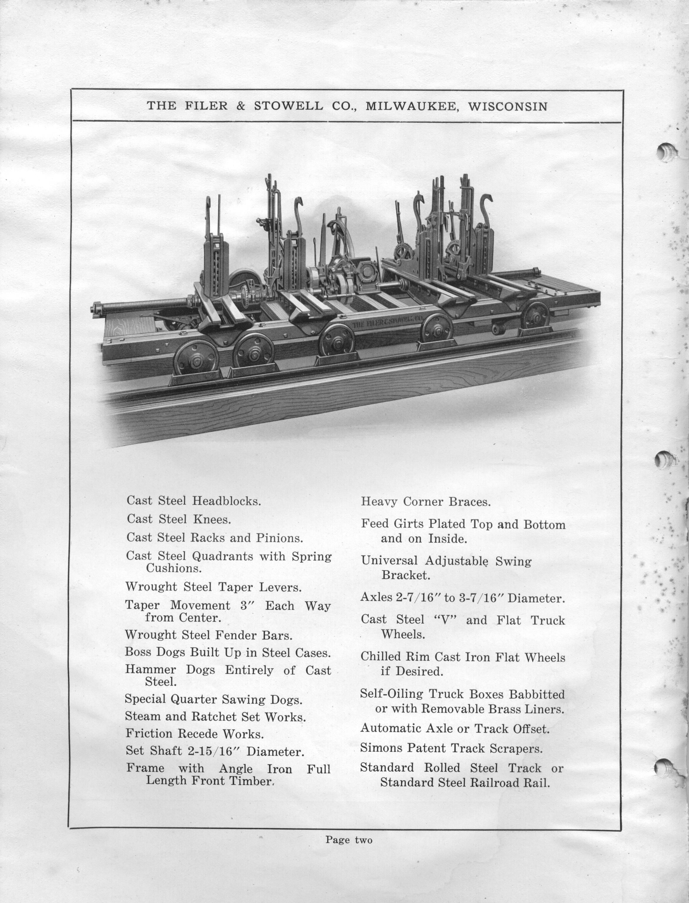 Filer & Stowell Saw Mill Carriages & Appurtenances Buletin 519pg1 (thru) pg24Other Numbers