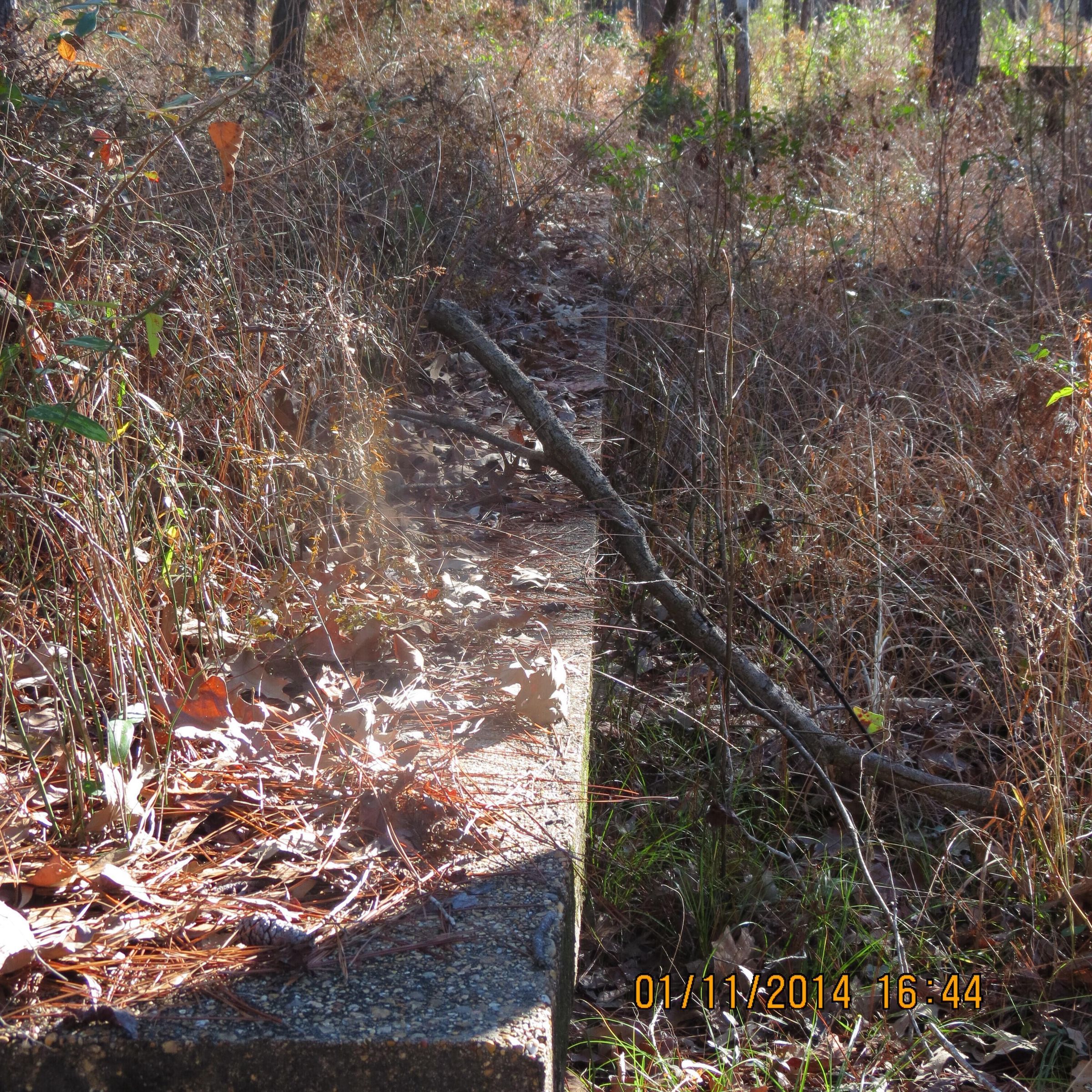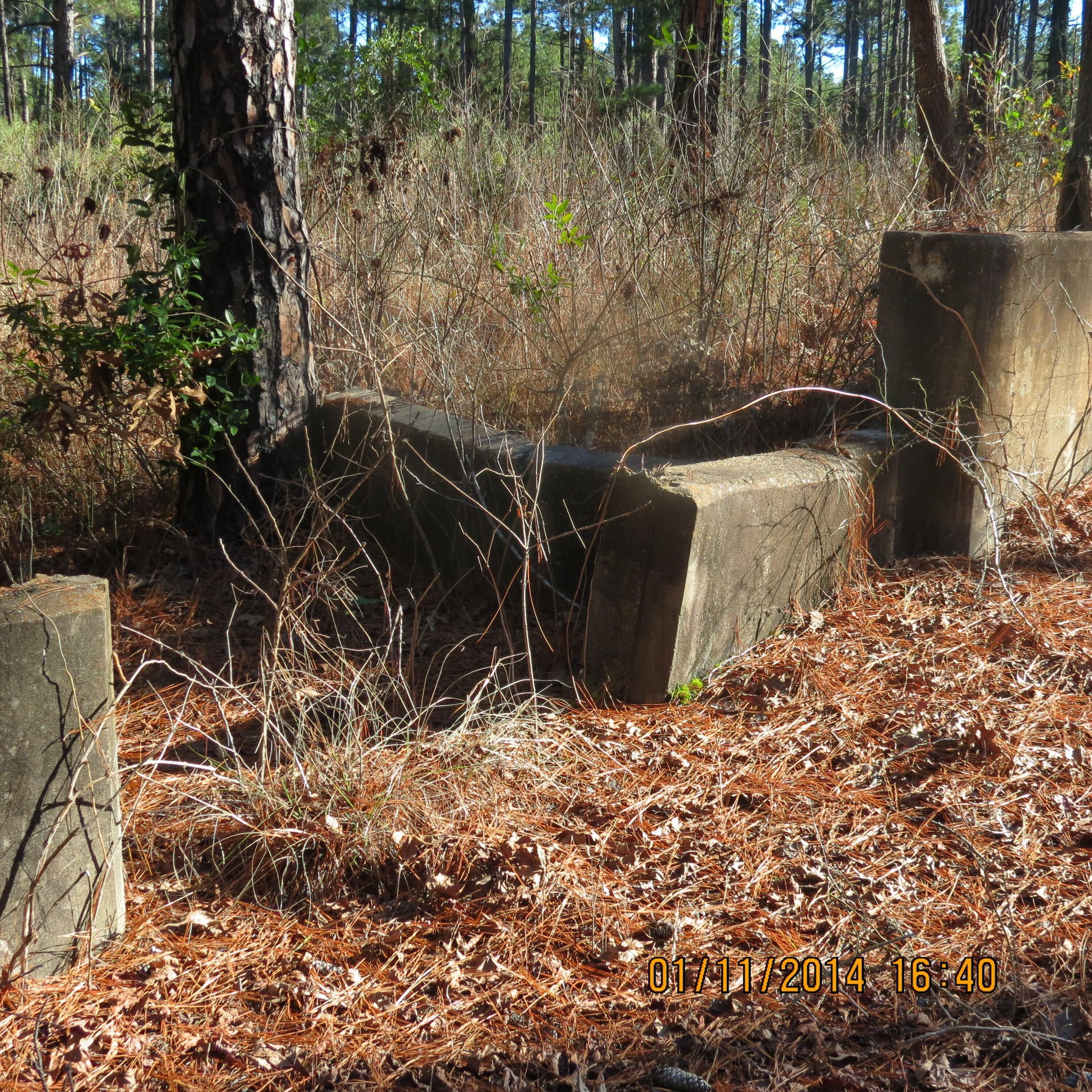 ruins of the theaters near the service club at Camp Claiborne; foundation; steps; one was a tent theater; places to tie down a tentPhotograph Details