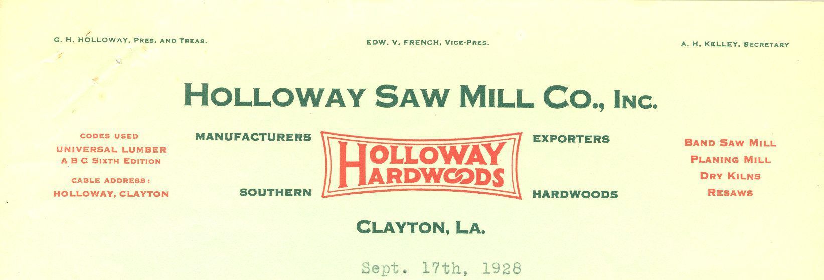 Holloway Saw Mill Co., Inc. began operations in Clayton, LA. The company wanted to specialize in running a sawmill in order to extract hardwood resources in the local area.Collection